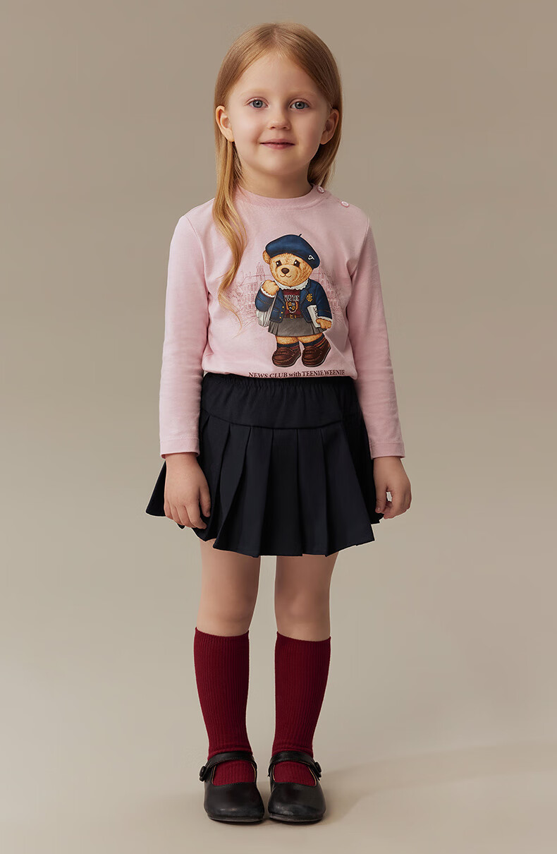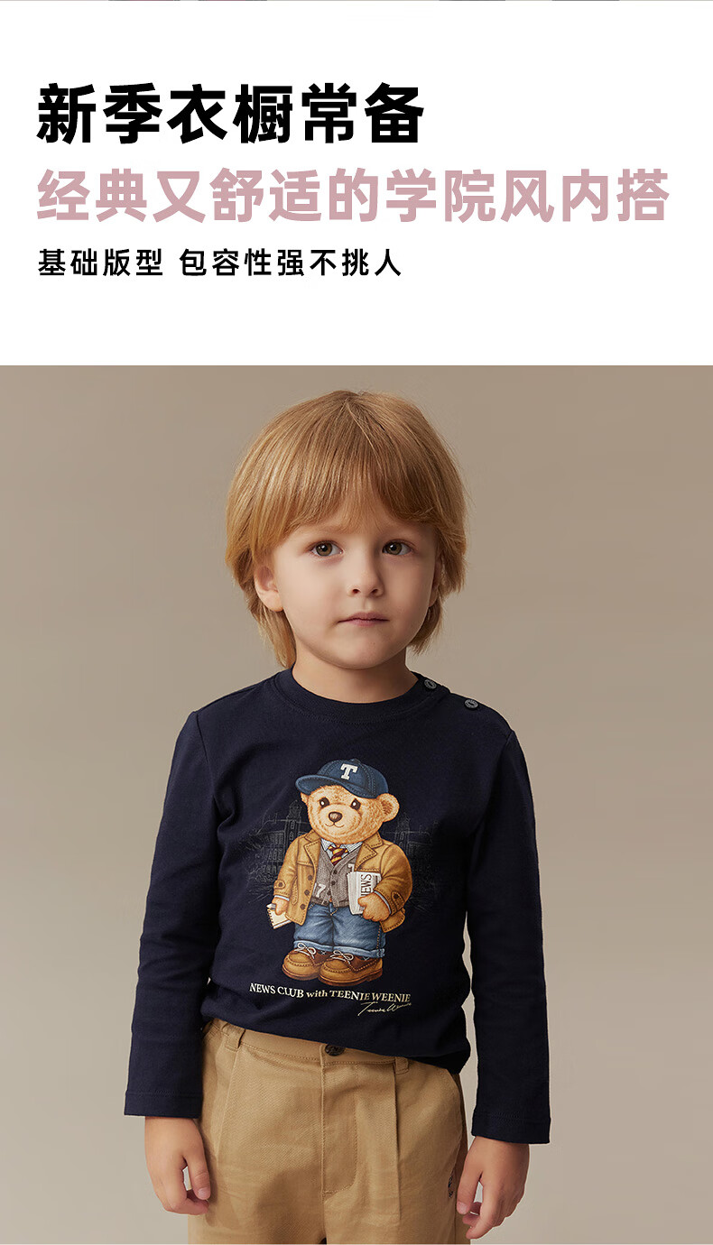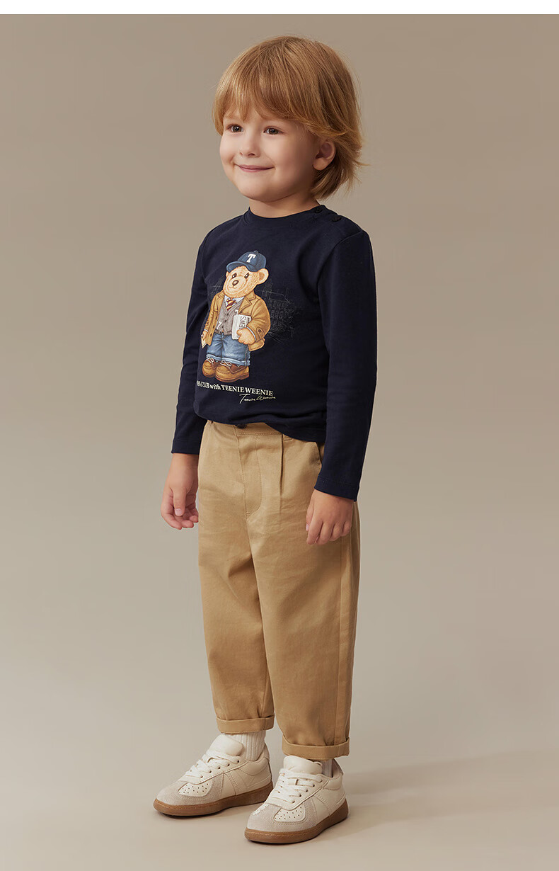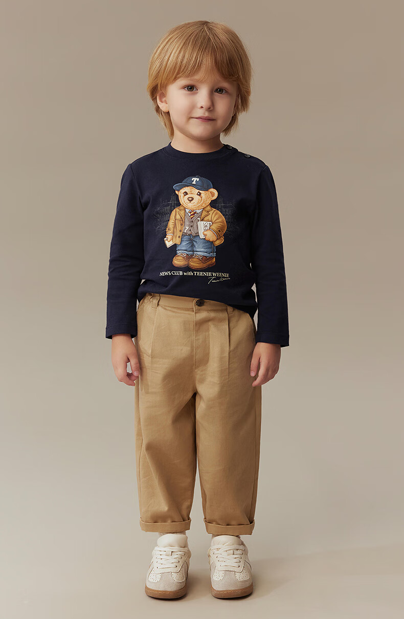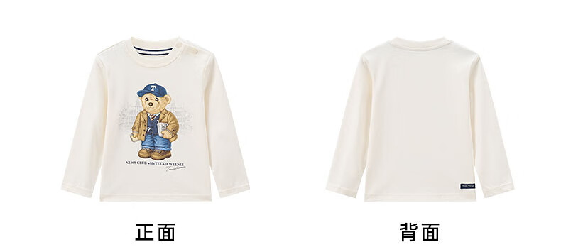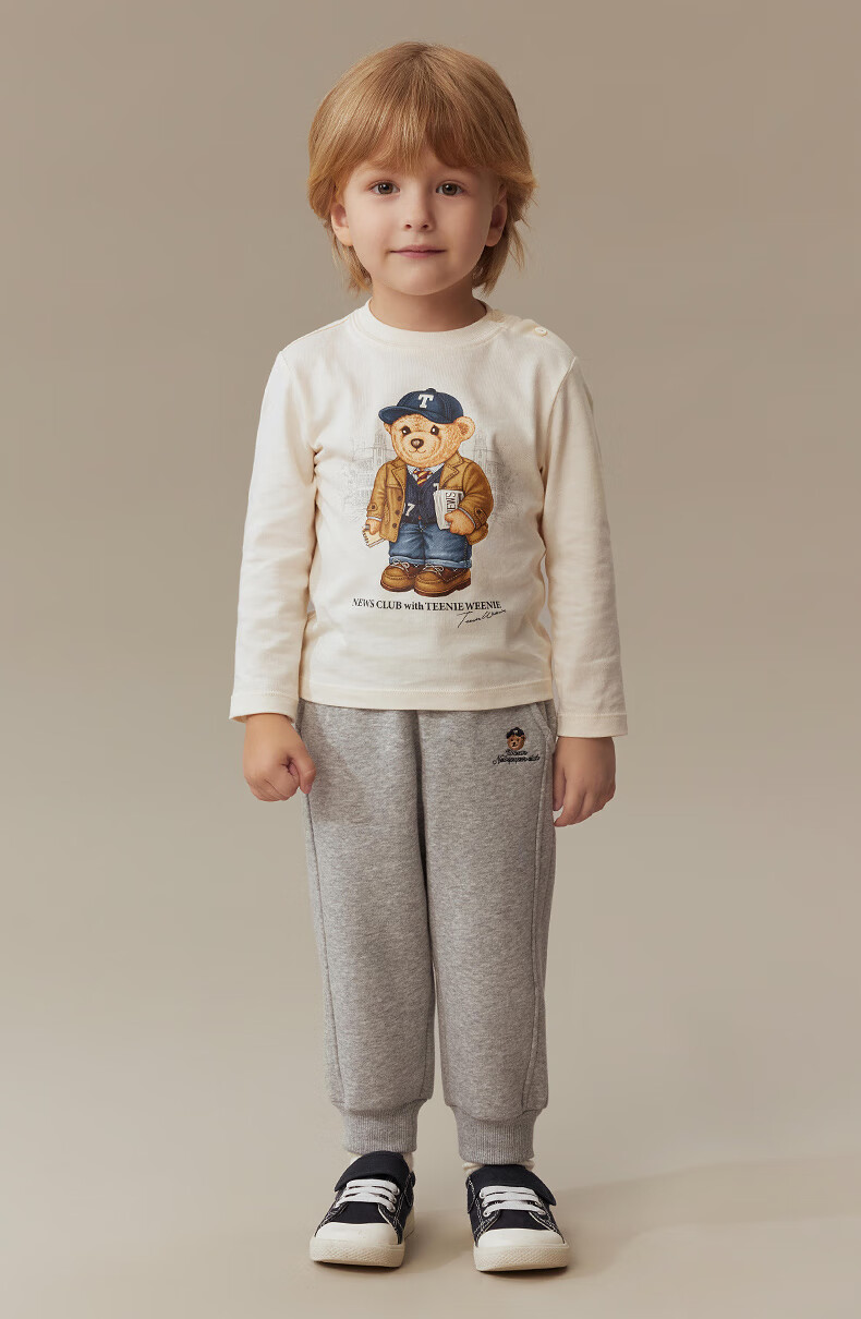 Teenie Weenie Kids 25 years new autumn men's and women's baby pure cotton printed long-sleeved T-shirt ivory white 120cm