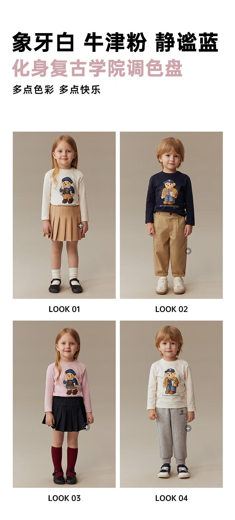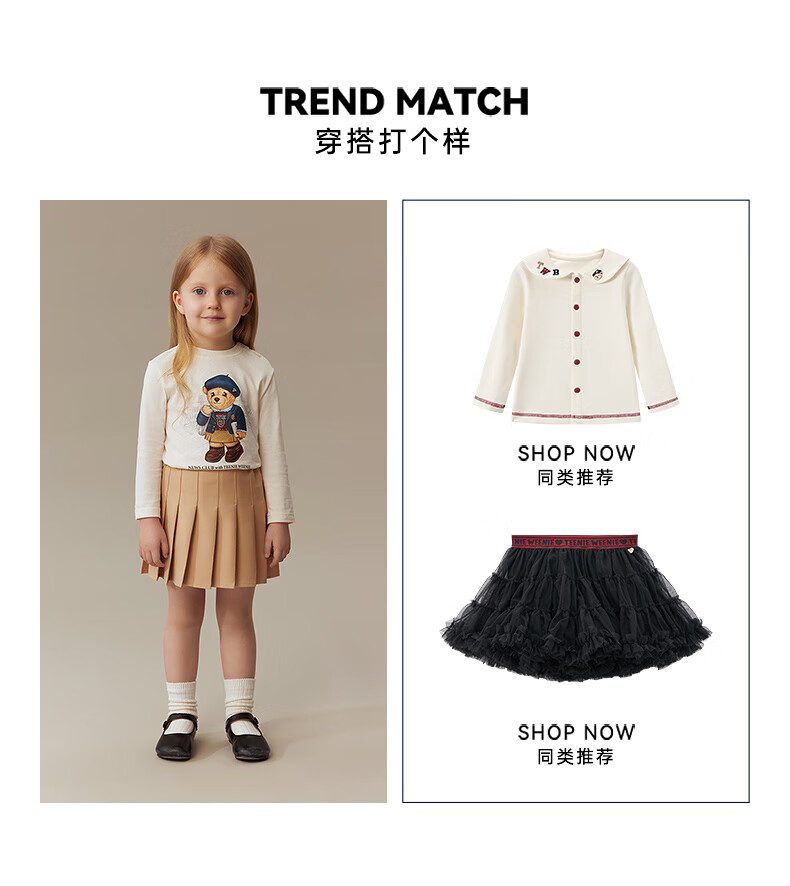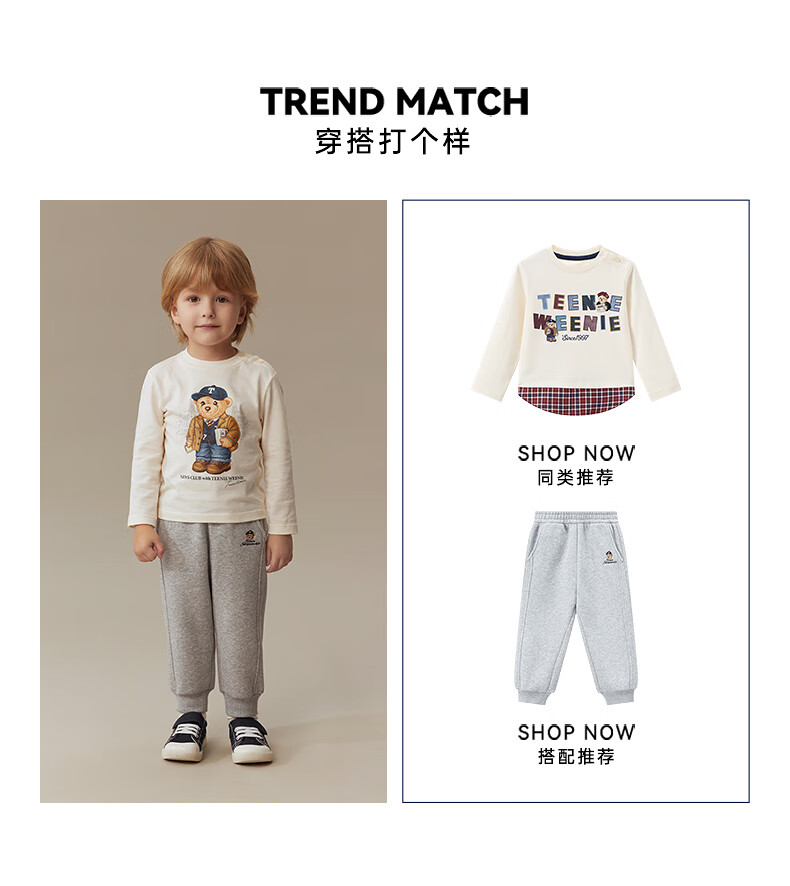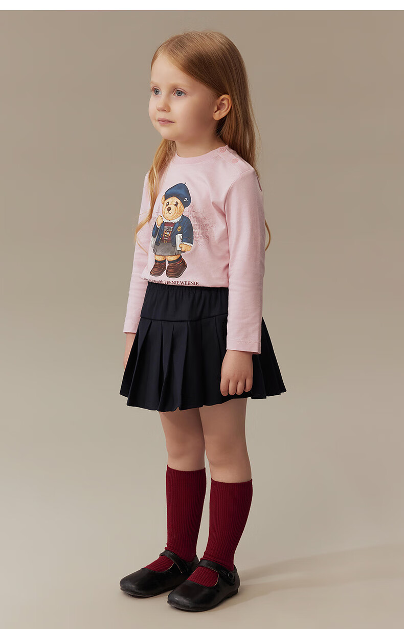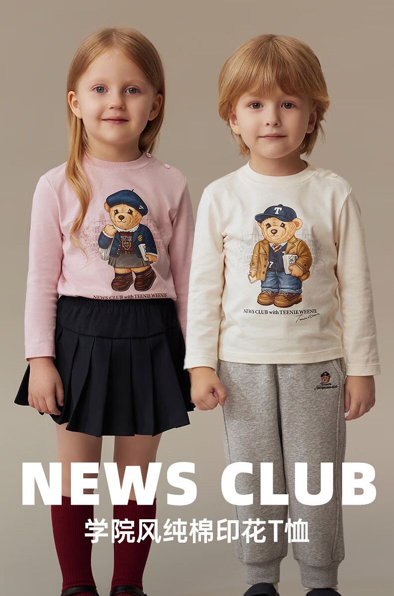 Teenie Weenie Kids 25 years new autumn men's and women's baby pure cotton printed long-sleeved T-shirt ivory white 120cm