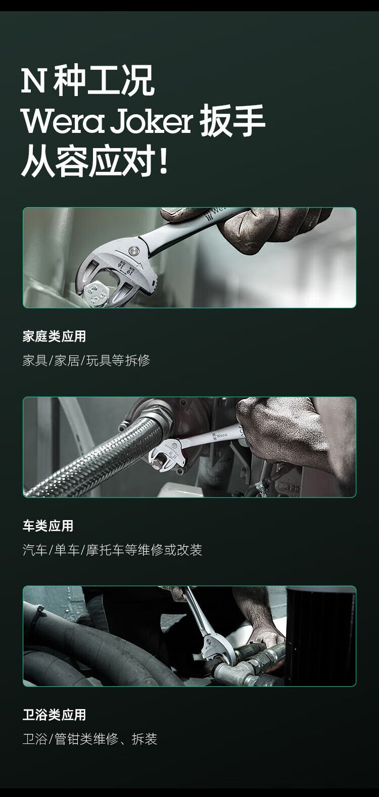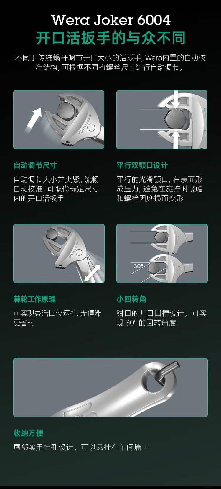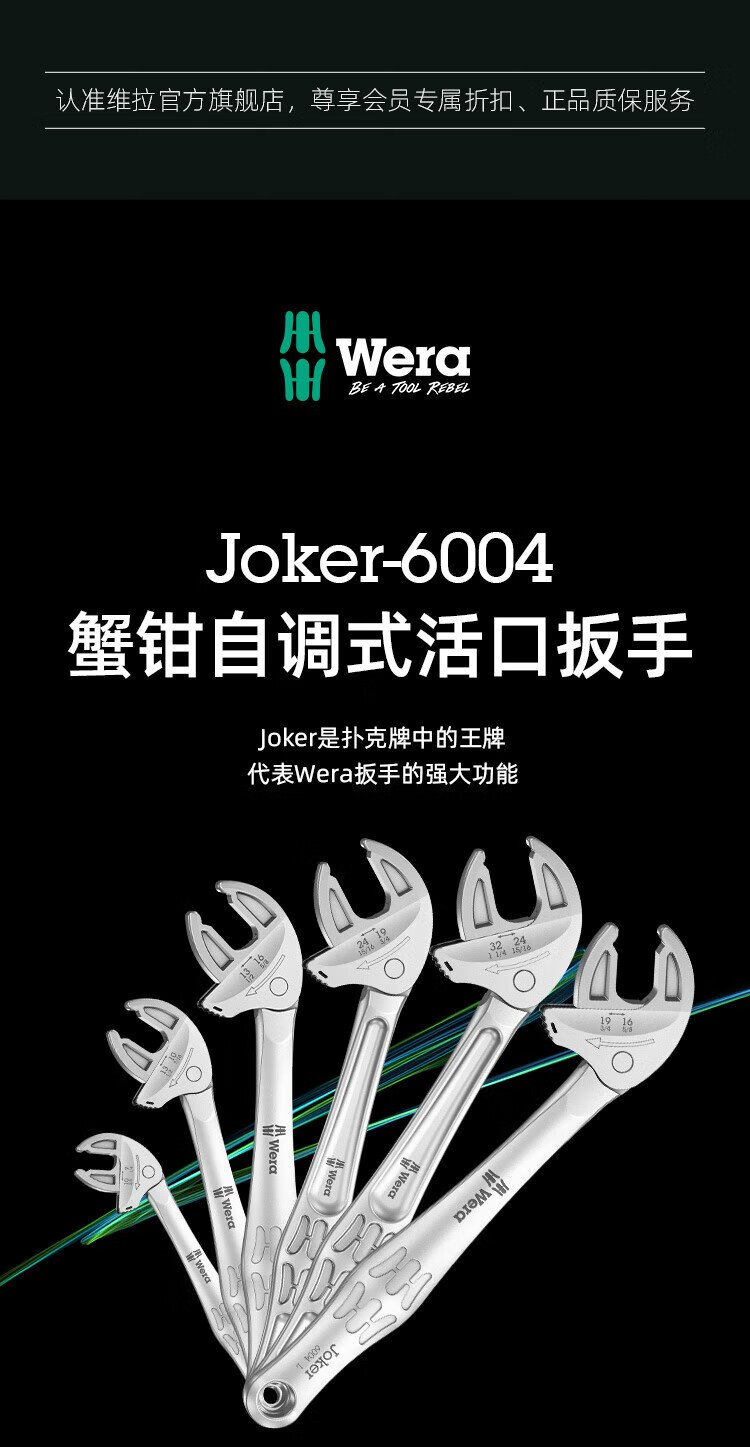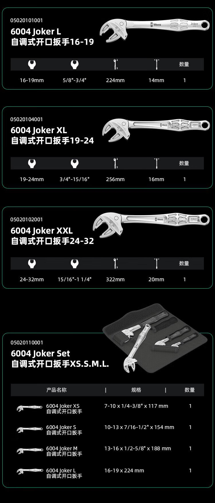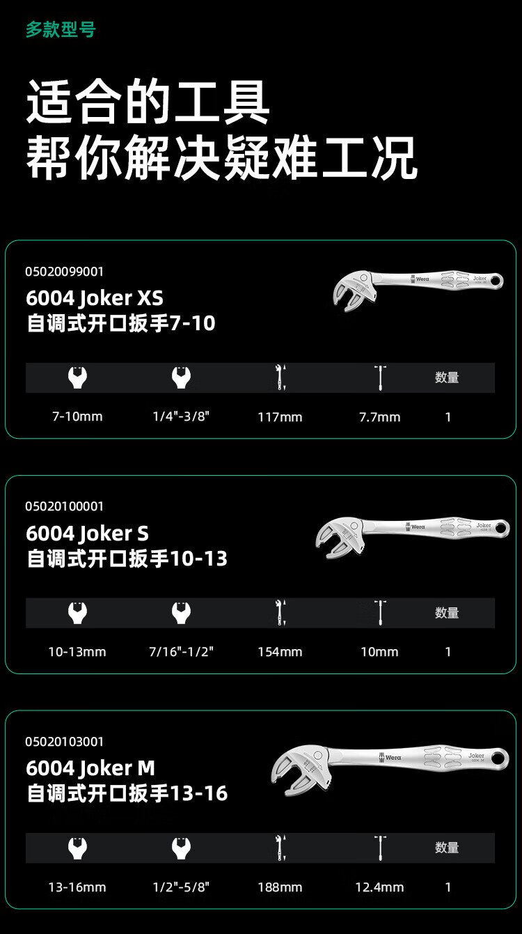 WERA imported adjustable wrench set German 6004 wrench metric and imperial large opening self-adjusting crab claw multi-function wrench XS/S/M/L 4-piece set 05020110001