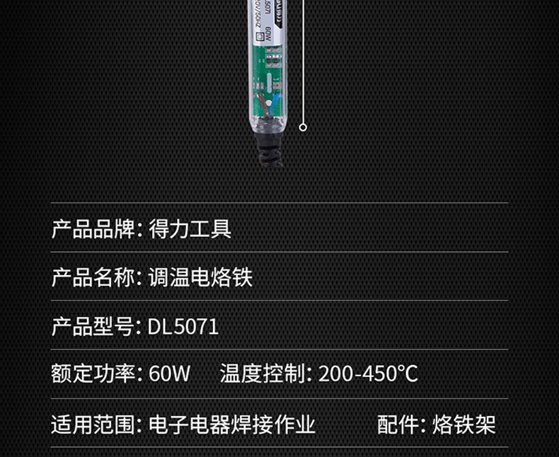 Deli constant temperature electric soldering iron 60W adjustable temperature electric soldering iron temperature control welding electronic repair tool electric welding pen 60W adjustable temperature electric soldering iron (external heating type) DL8820