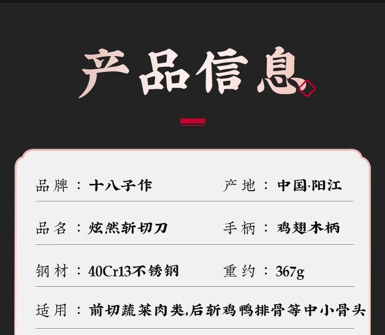Shibazi Writer's Kitchen Knife Kitchen Slicing Knife Meat Knife Chopping Knife Chef's Special Guangdong Yangjiang Chicken Wing Wooden Handle Knife