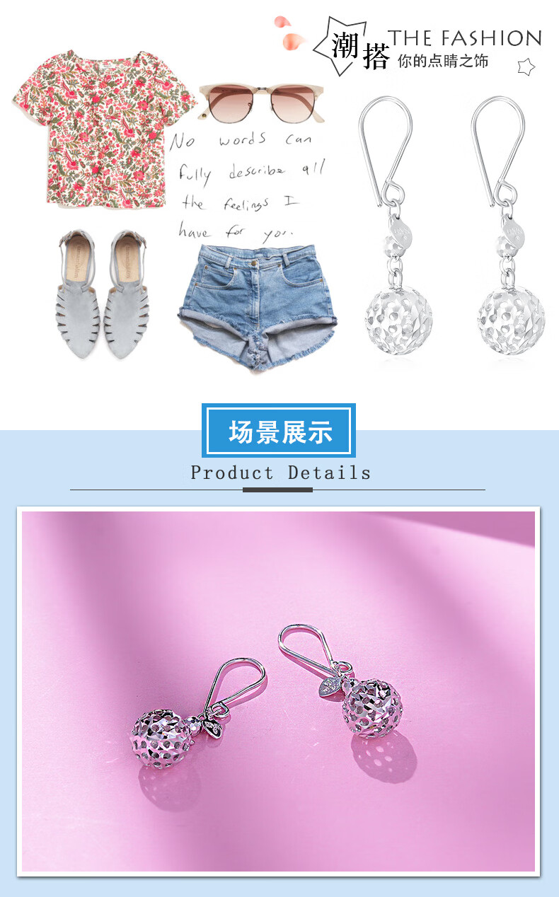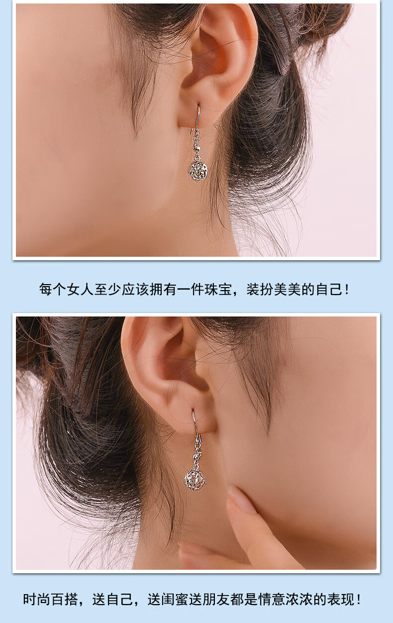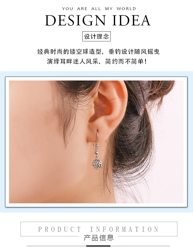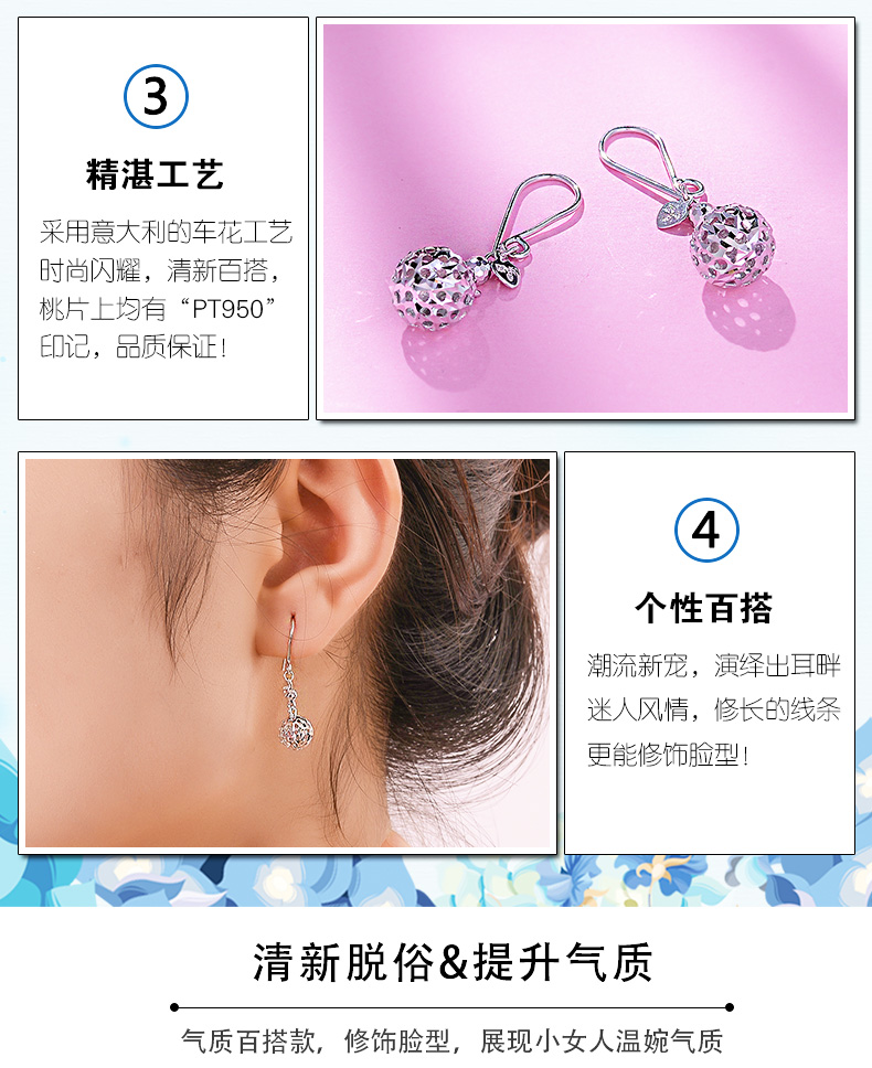 Yuanshengfu's new PT950 high-quality hollow ball platinum earrings, fashionable and versatile platinum earrings, ear hooks 2.42g