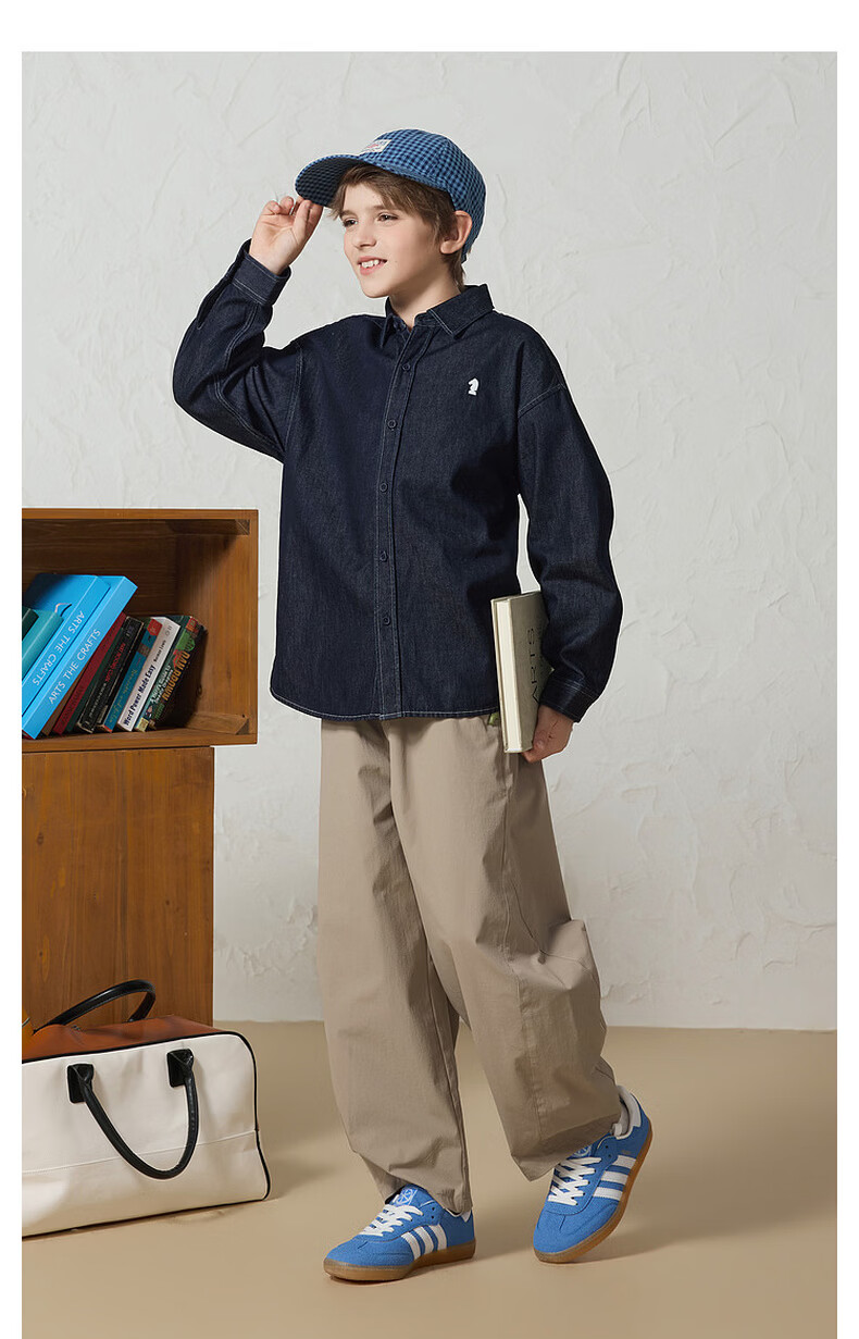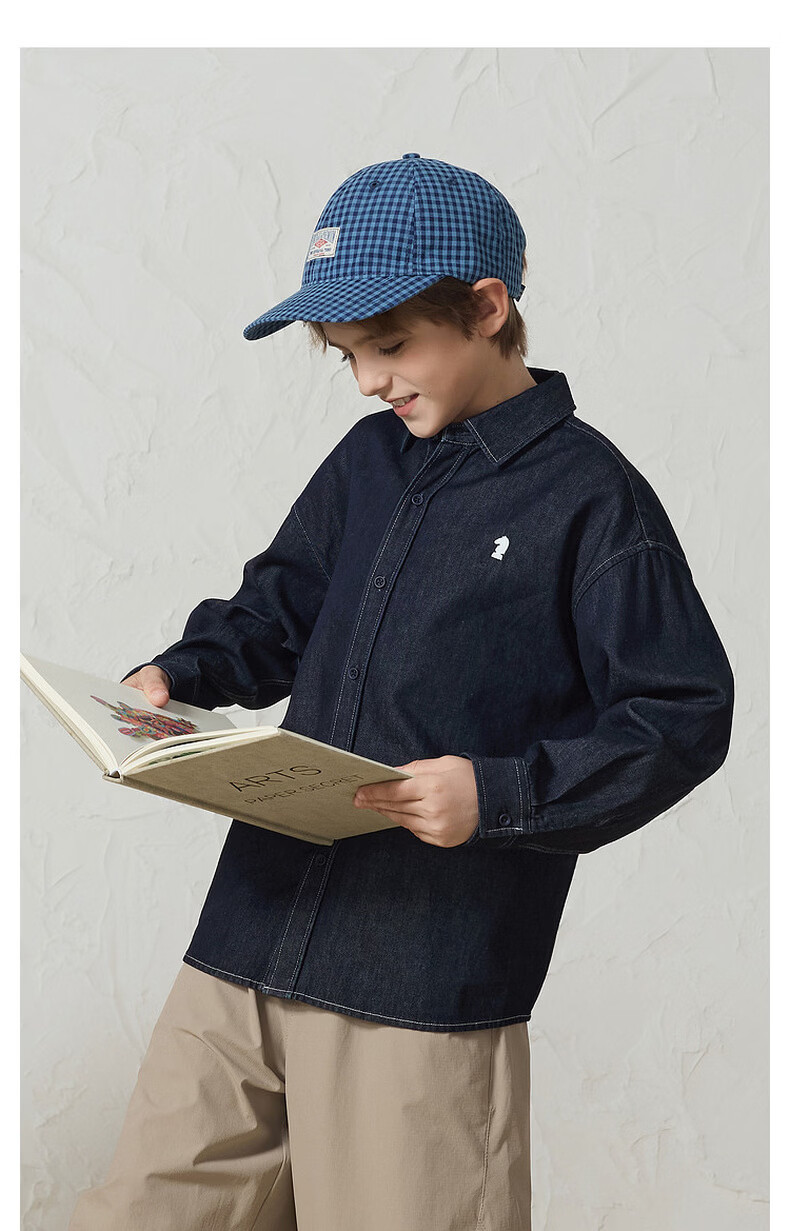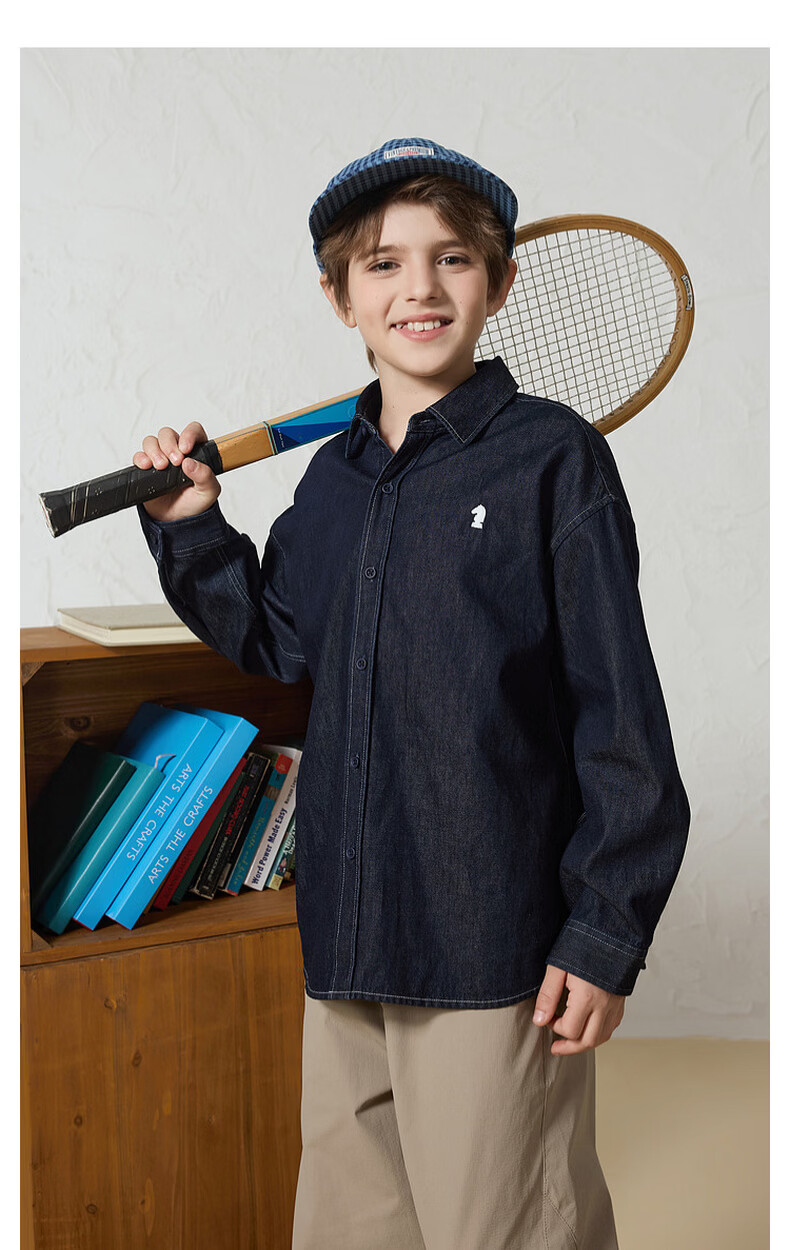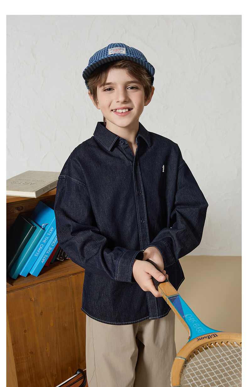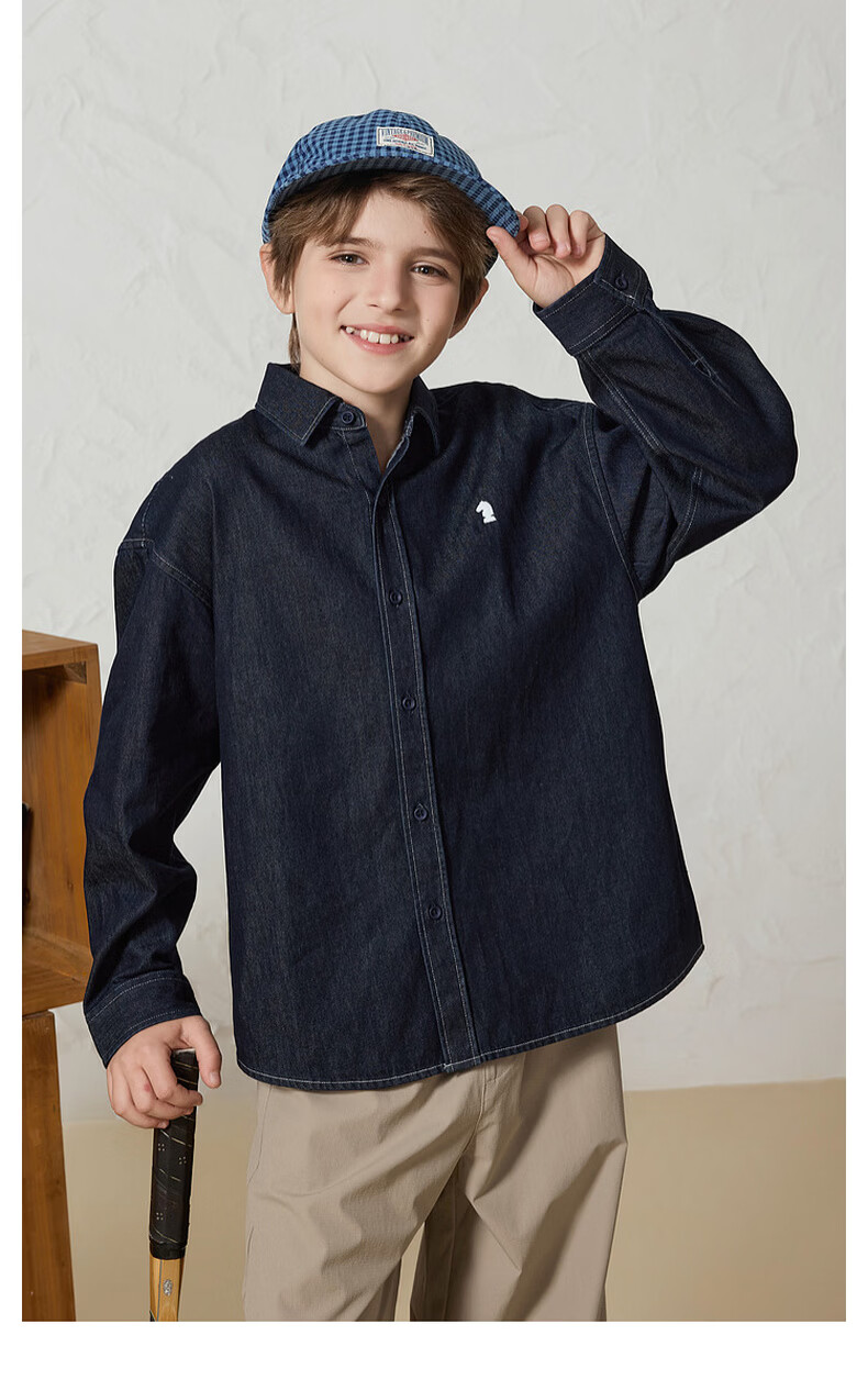 MQD Boys College Style Workwear Lapel Washed Denim Shirt