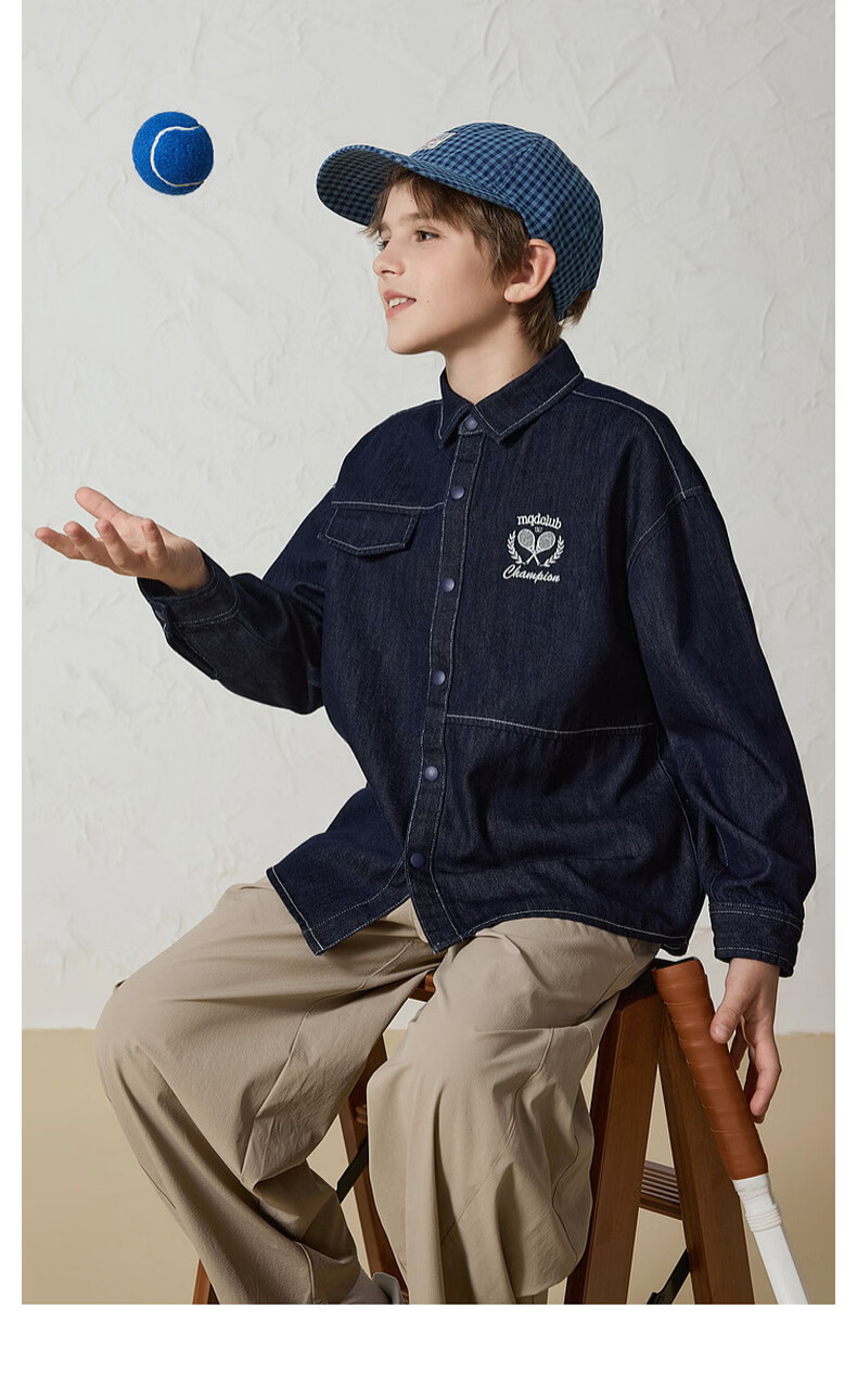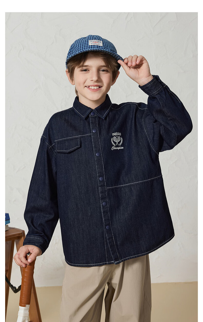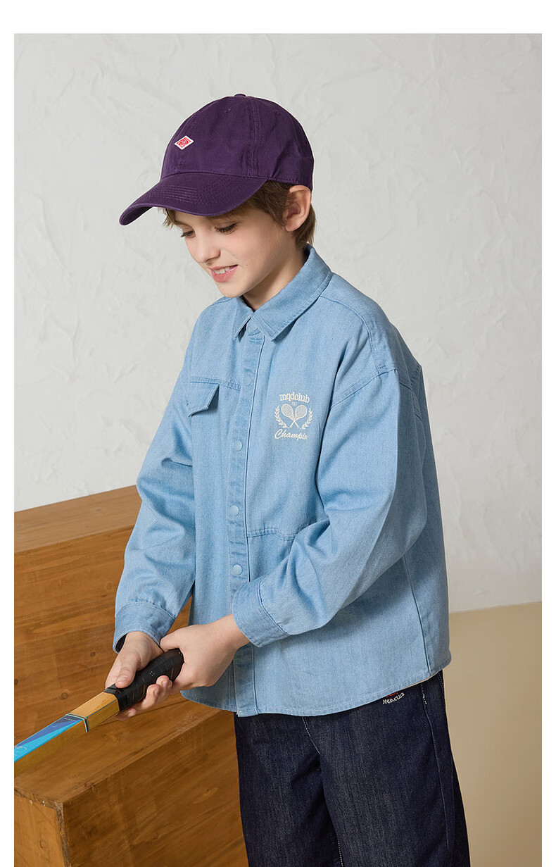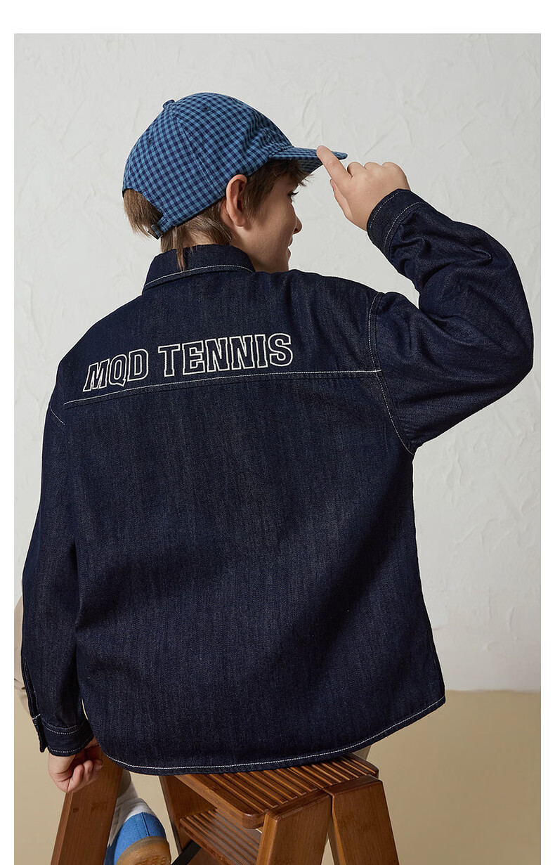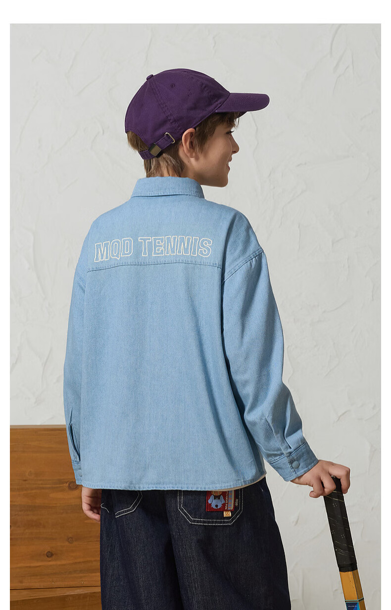 MQD Boys' College Style Travel Wear Lapel Denim Shirt Washed