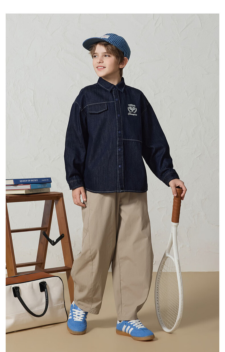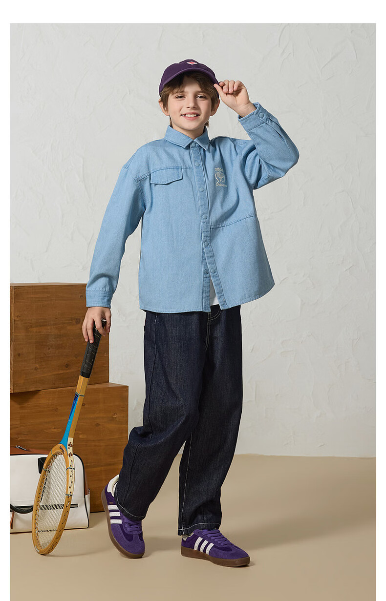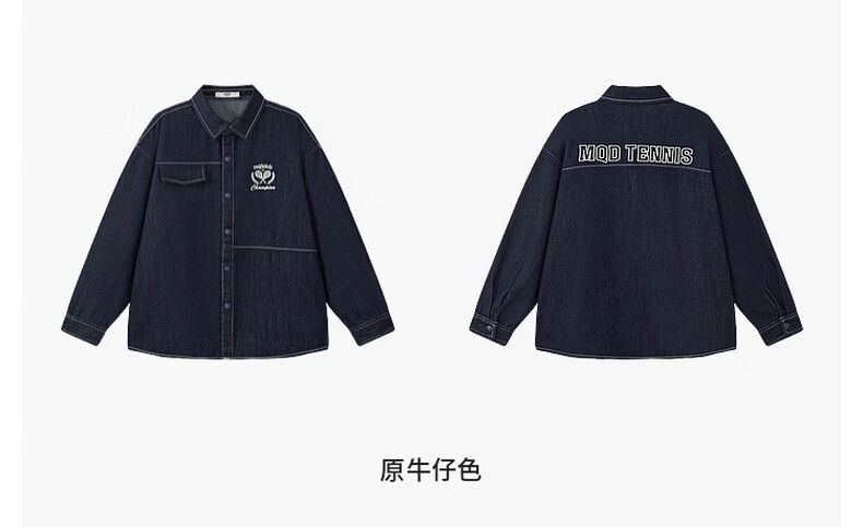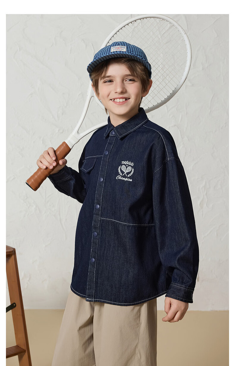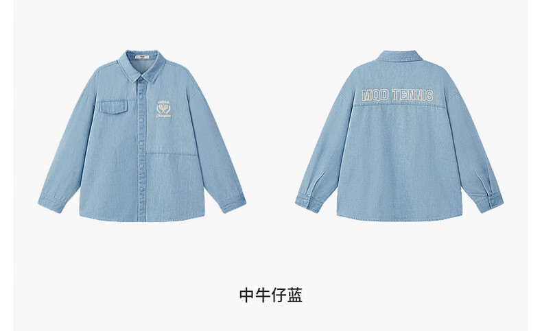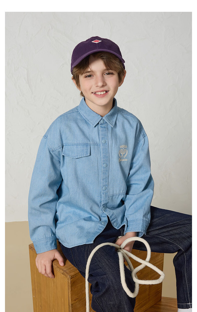 MQD Boys' College Style Travel Wear Lapel Denim Shirt Washed