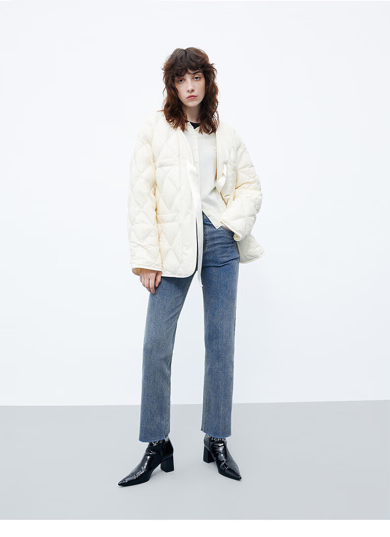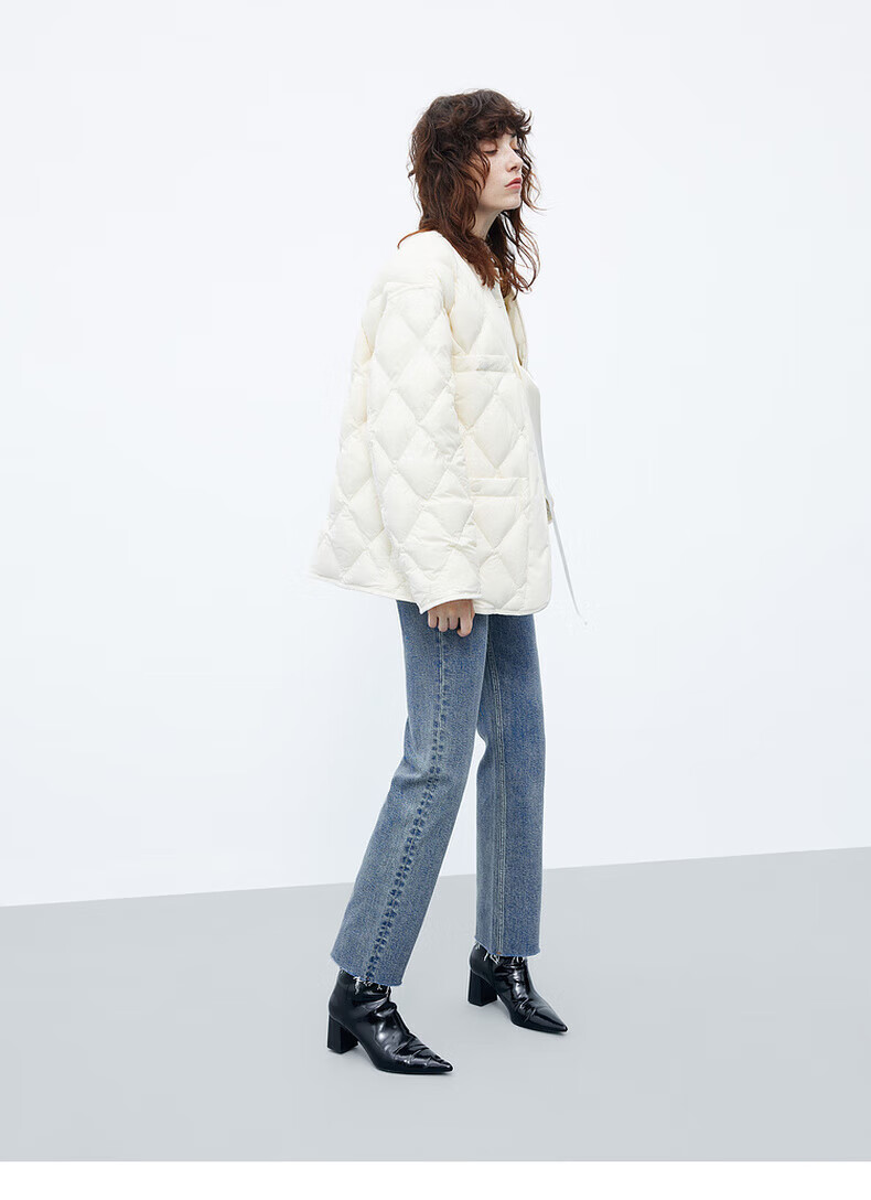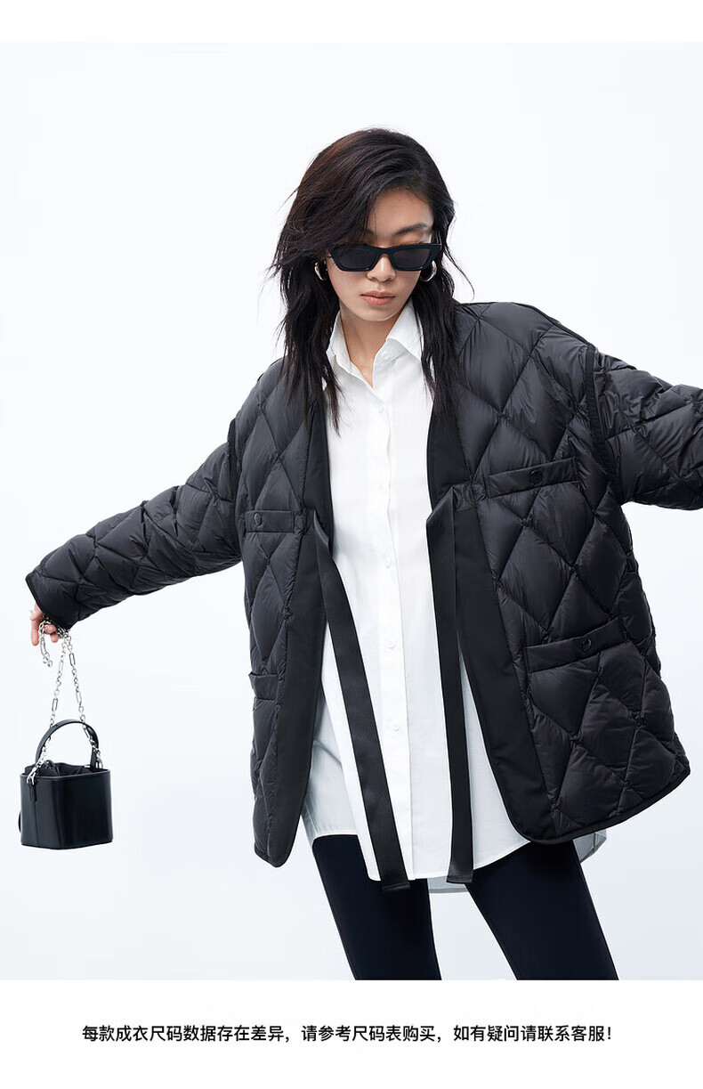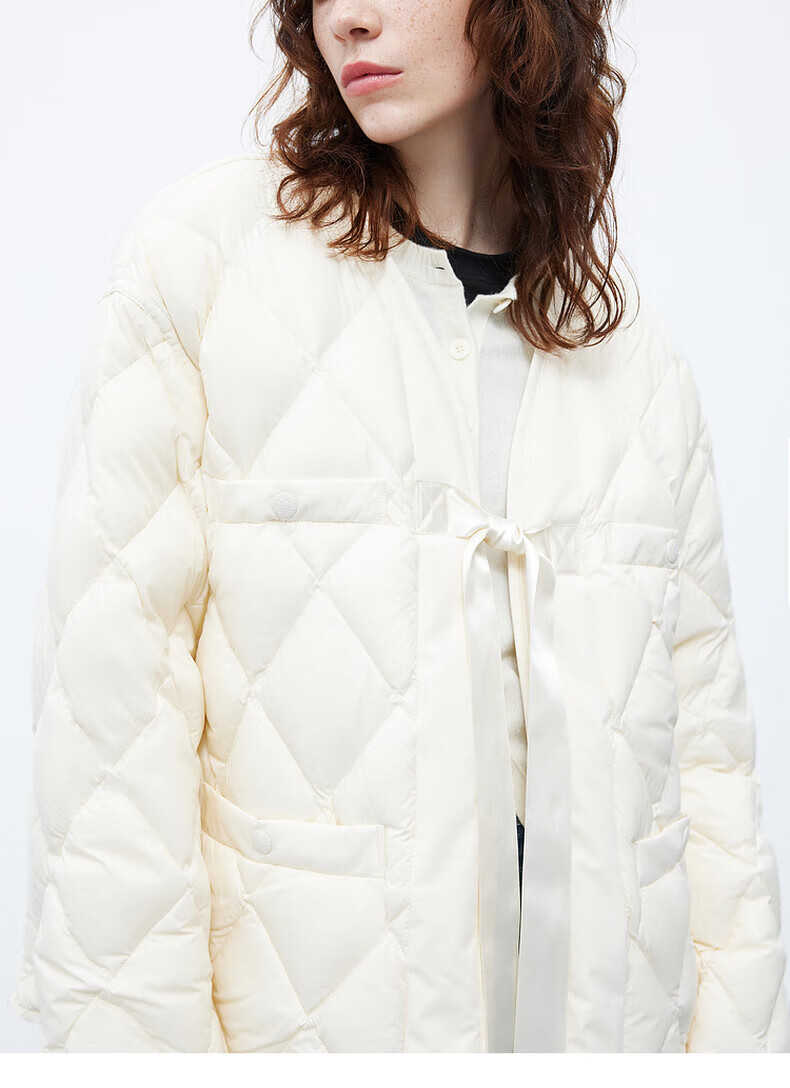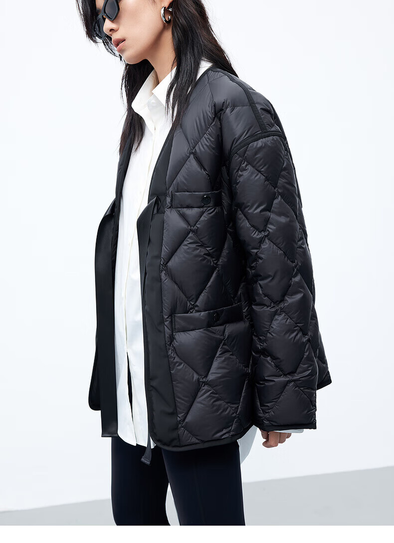 MO&Co. 90% duck down kimono style strappy diamond silhouette down jacket top for women