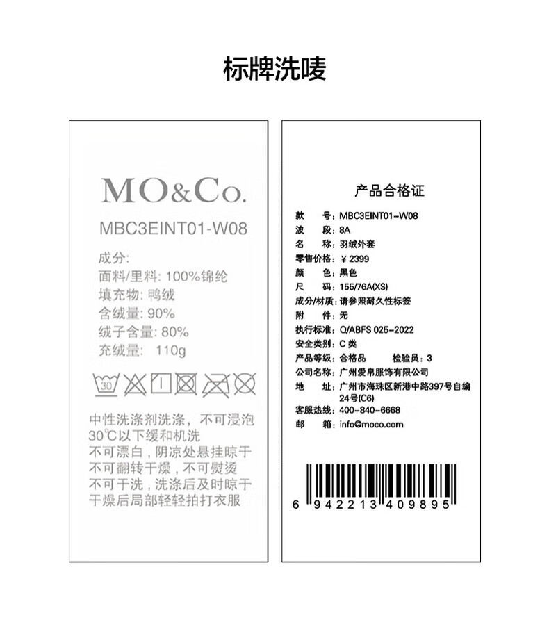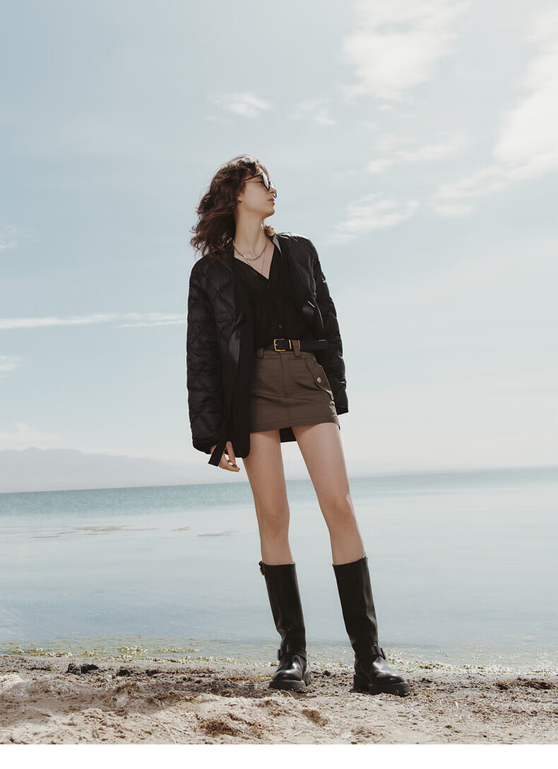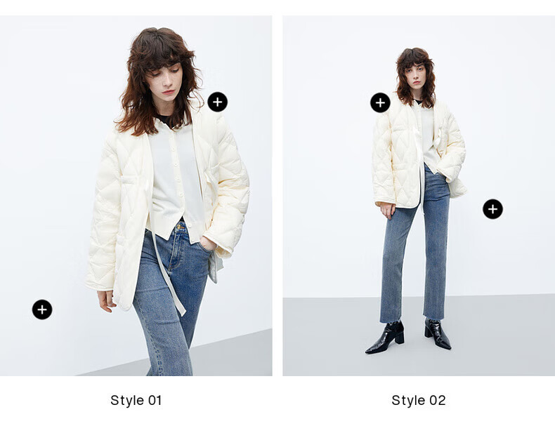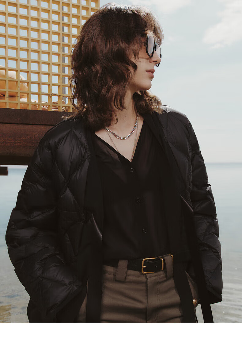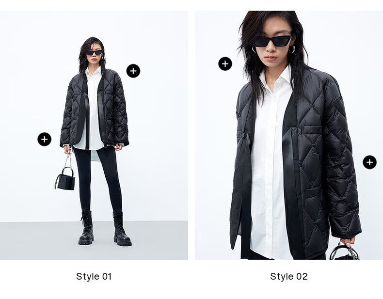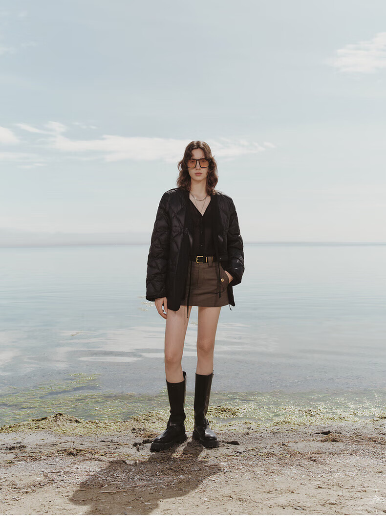 MO&Co. 90% duck down kimono style strappy diamond silhouette down jacket top for women