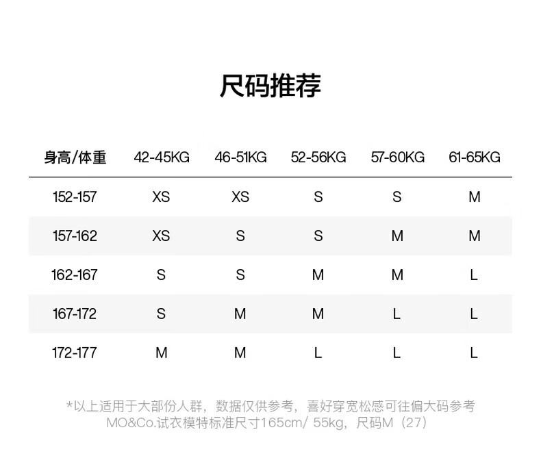 China (cm) 160-165/84-86 165-170 / 88-90 167-172 / 92-96 168-173 / 98-102 170-176 / 106-110