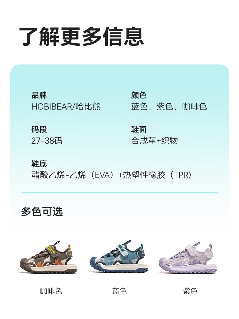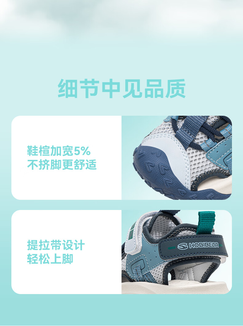HOBIBEAR children's shoes summer children's toe-cap sandals outdoor sports boys' shoes lightweight girls' shoes 621308 blue 32