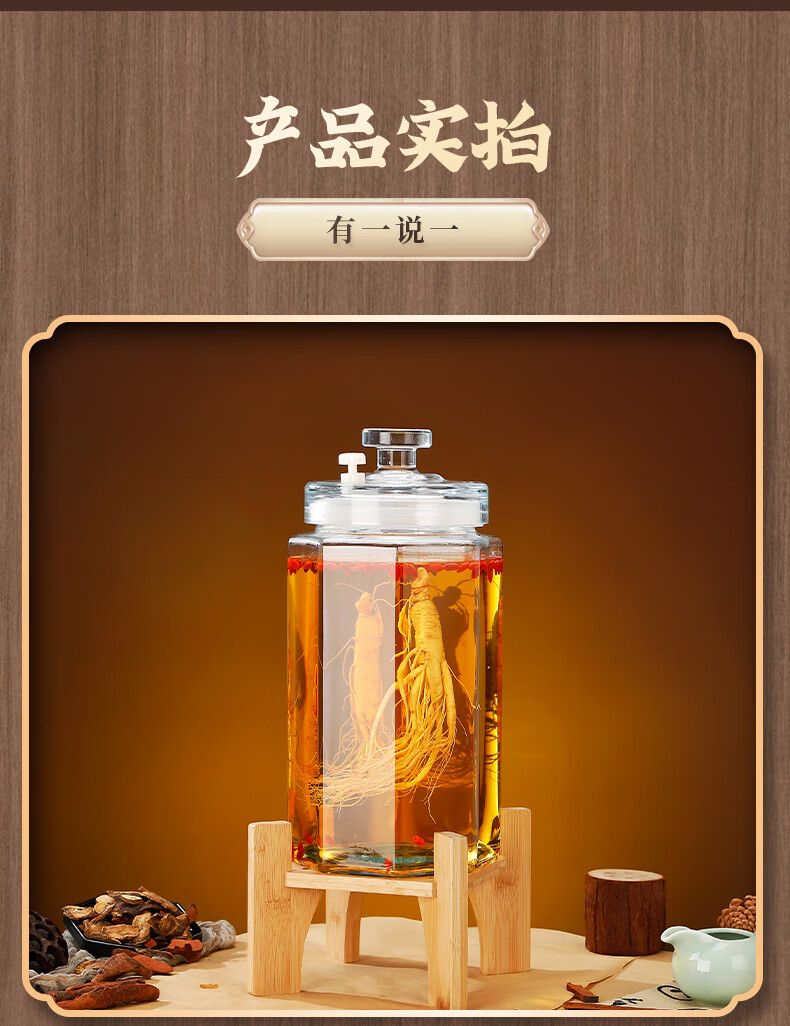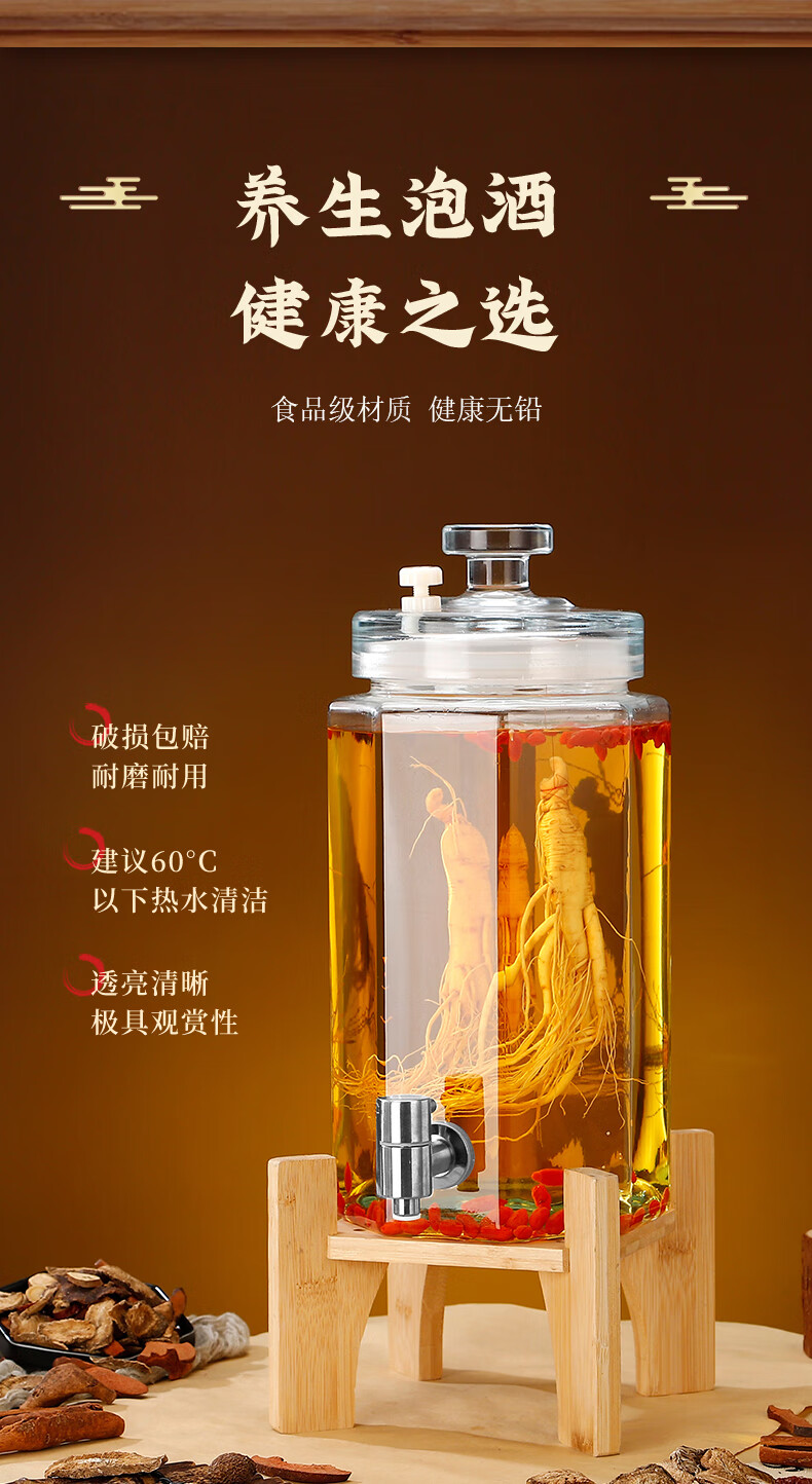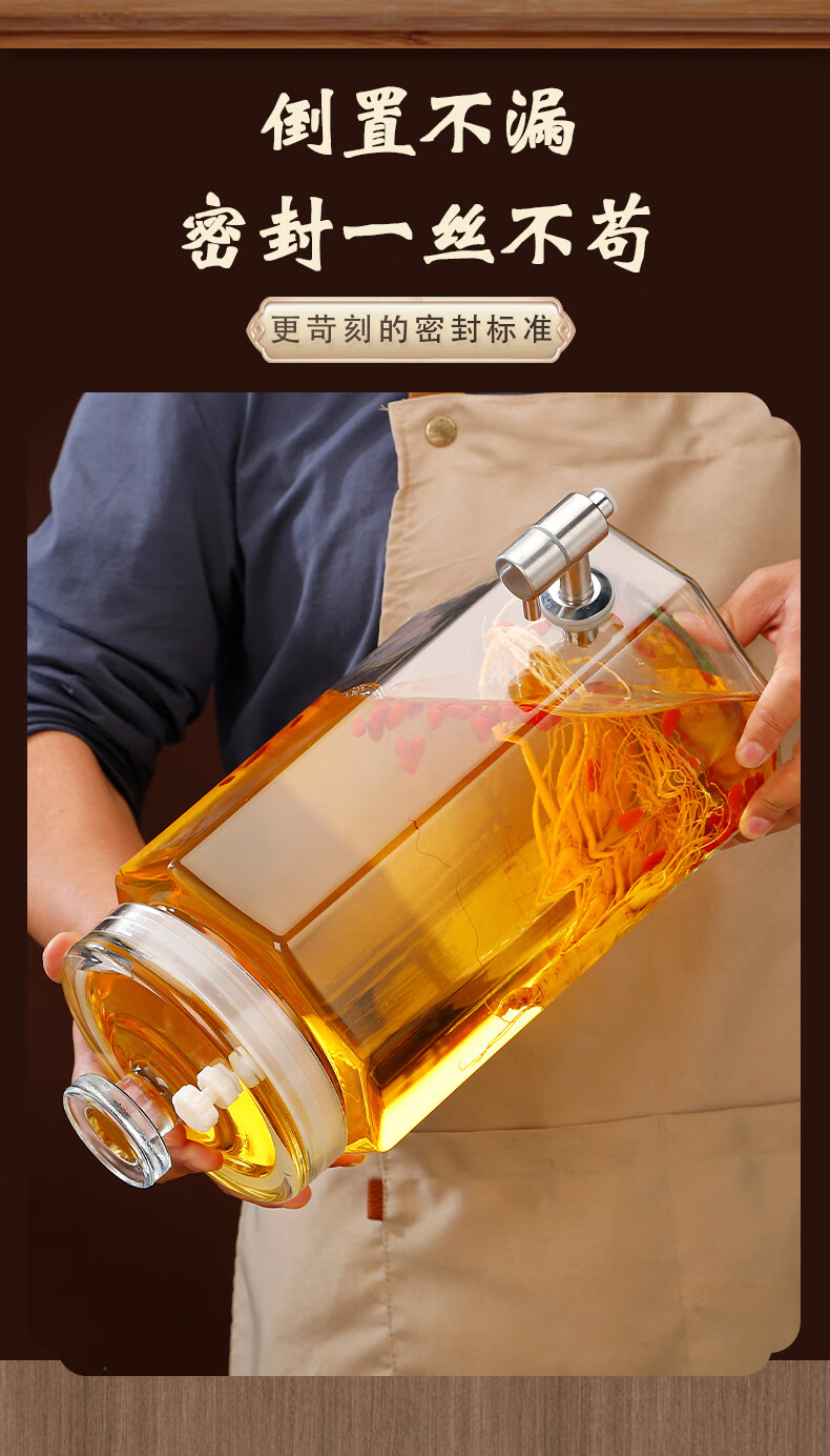 Zhuoliang bubble wine glass bottle bubble wine container glass bottle wine container high-end sealed glass wine jar with faucet 10 Jin Jin equals 0.5 kg