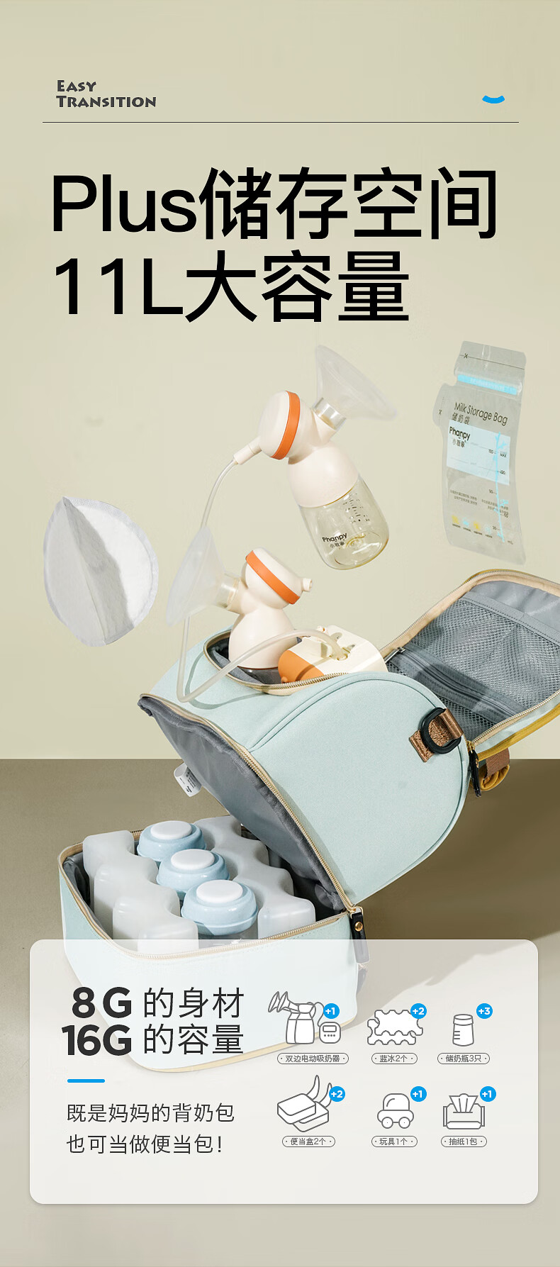 Xiaoyaxiang's milk bag to work portable breast milk refrigeration box Blue ice storage breast pump storage equipment insulation bag