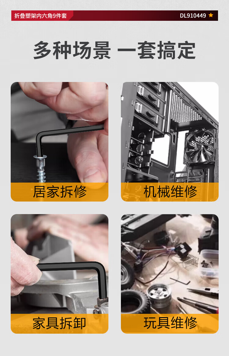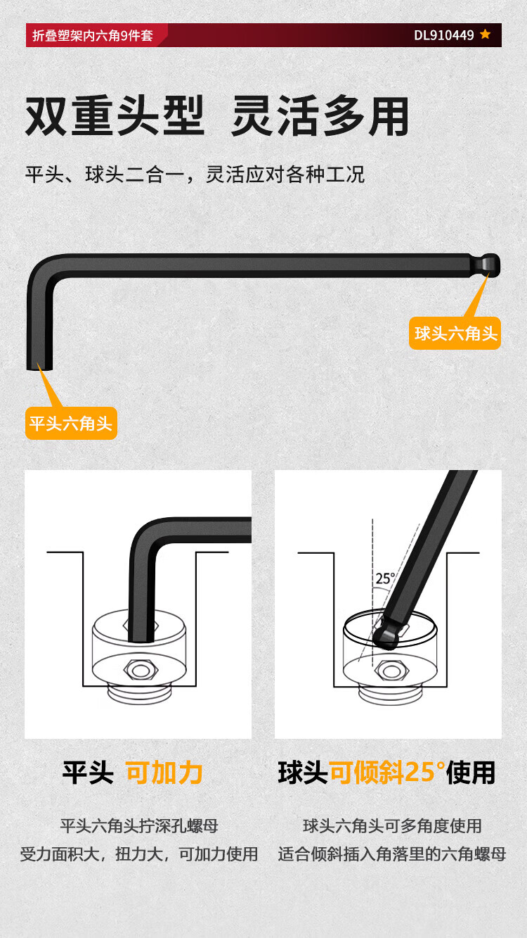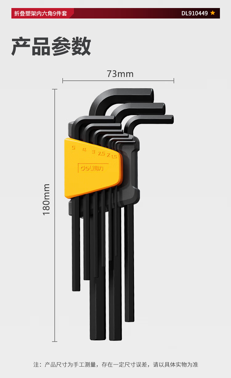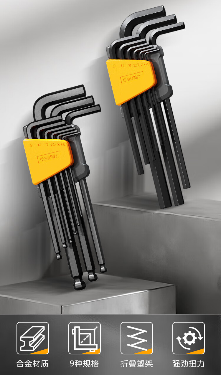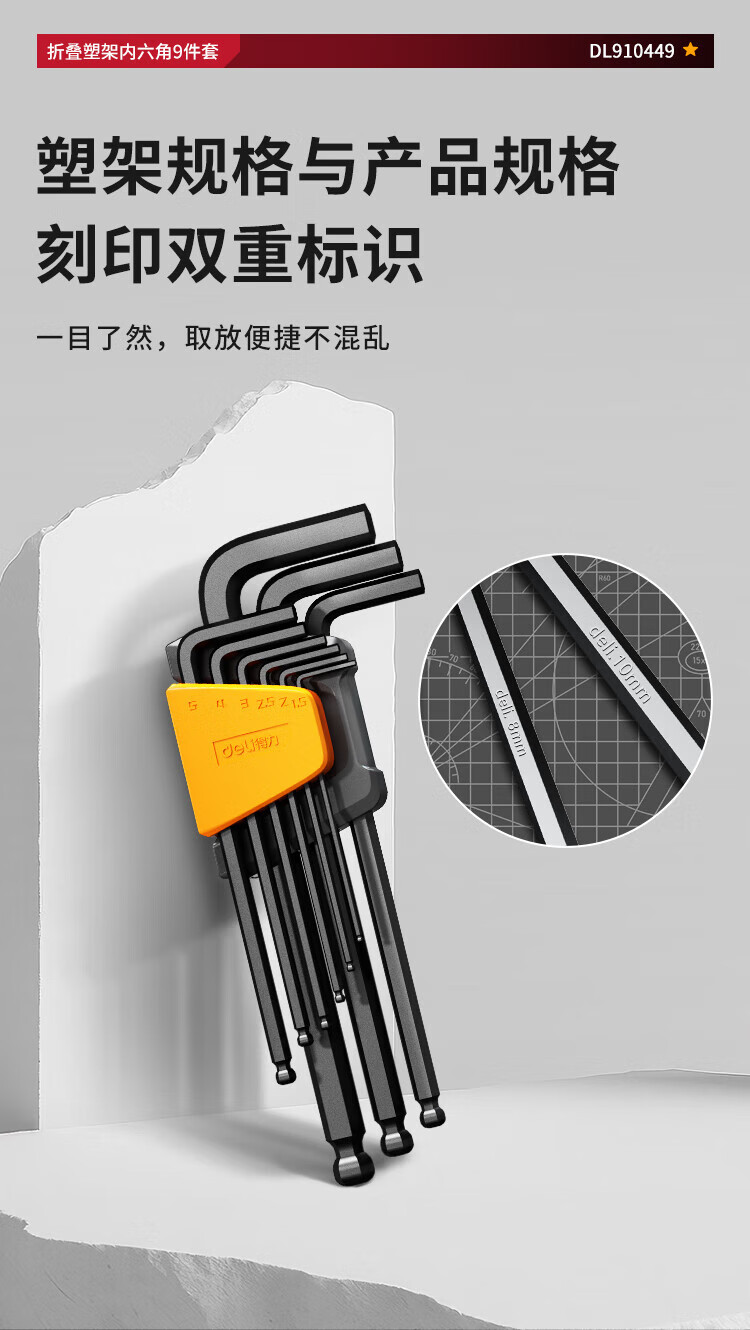 Deli (deli) black, rust-proof, high hardness, long ball head, hexagonal wrench combination set, screwdriver set, 9-piece set