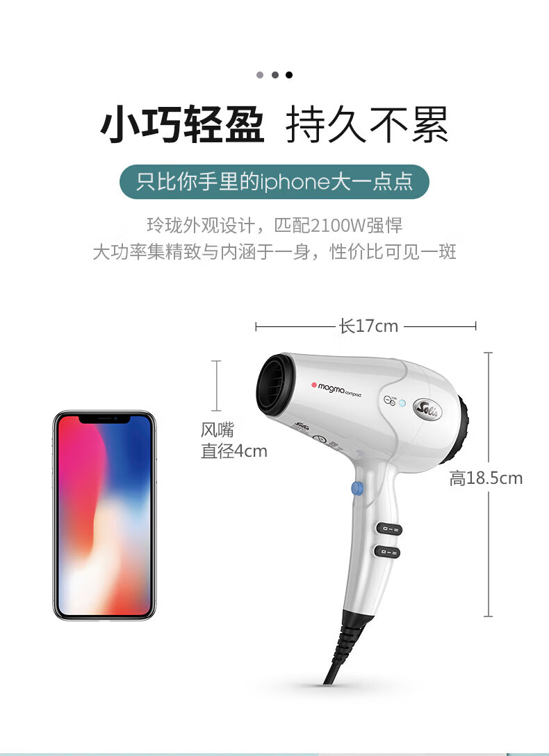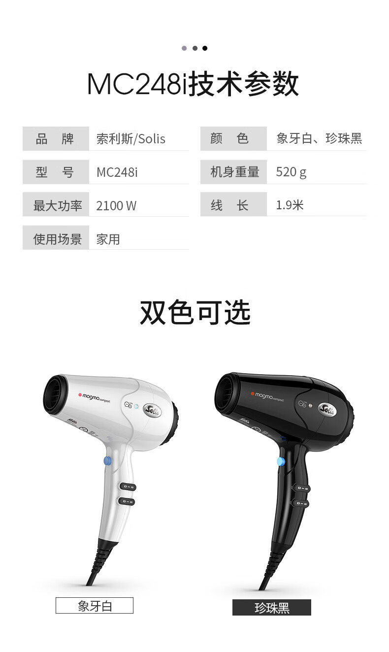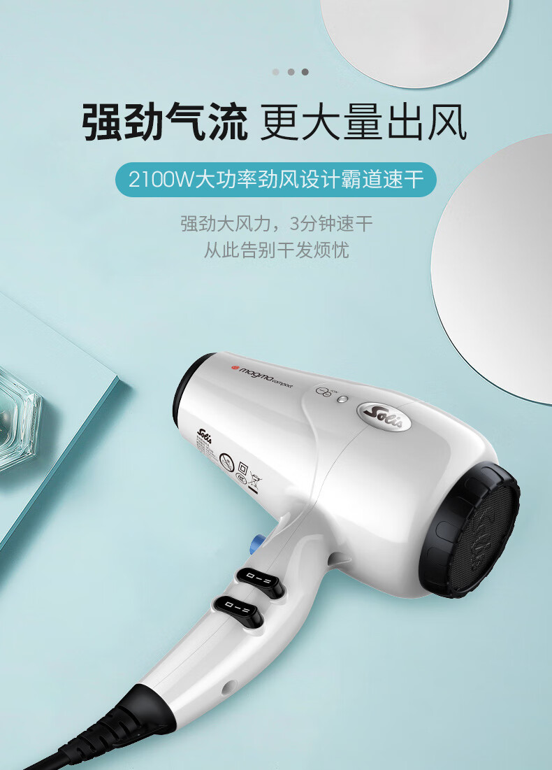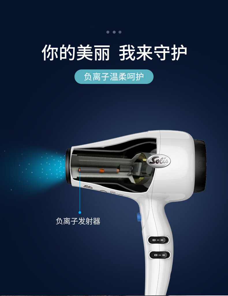 Solis Hair Dryer High Power Barber Shop Home Negative Ion Hair Salon Professional Hair Dryer MC248i Ivory White