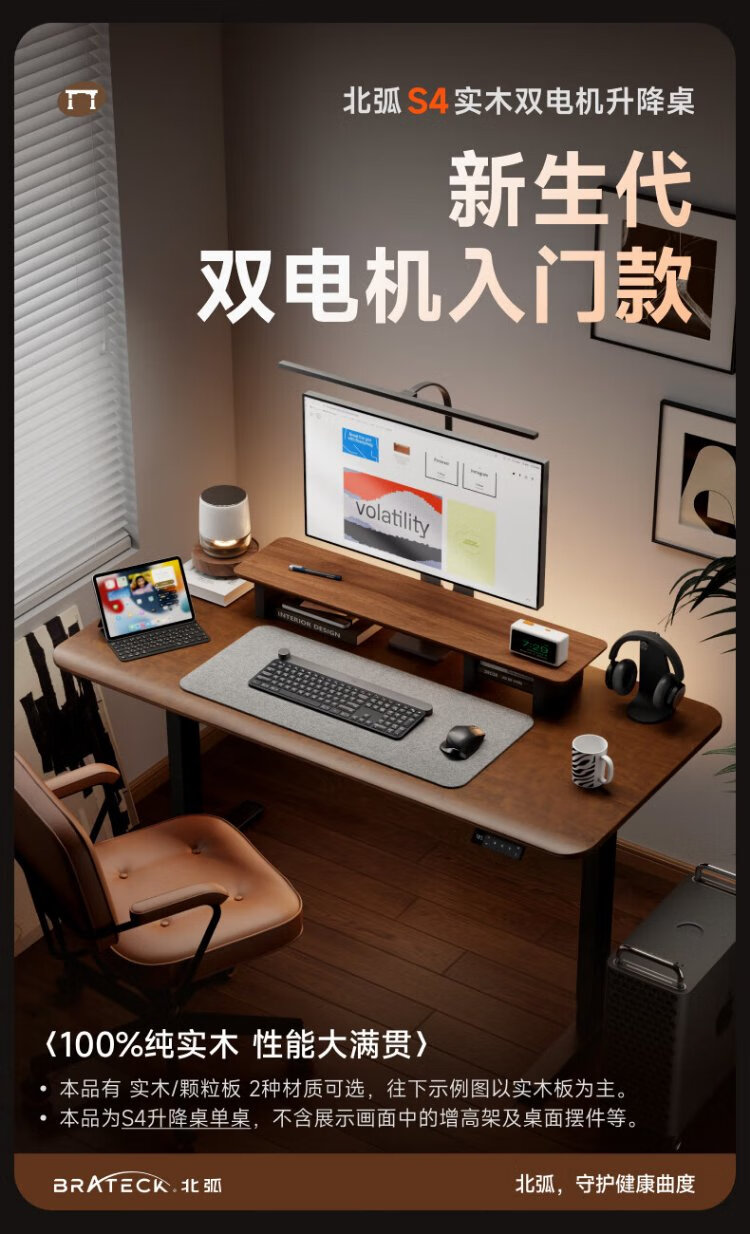 Brateck North Arc dual motor electric lifting table solid wood table desktop computer table desk study table home desk S4