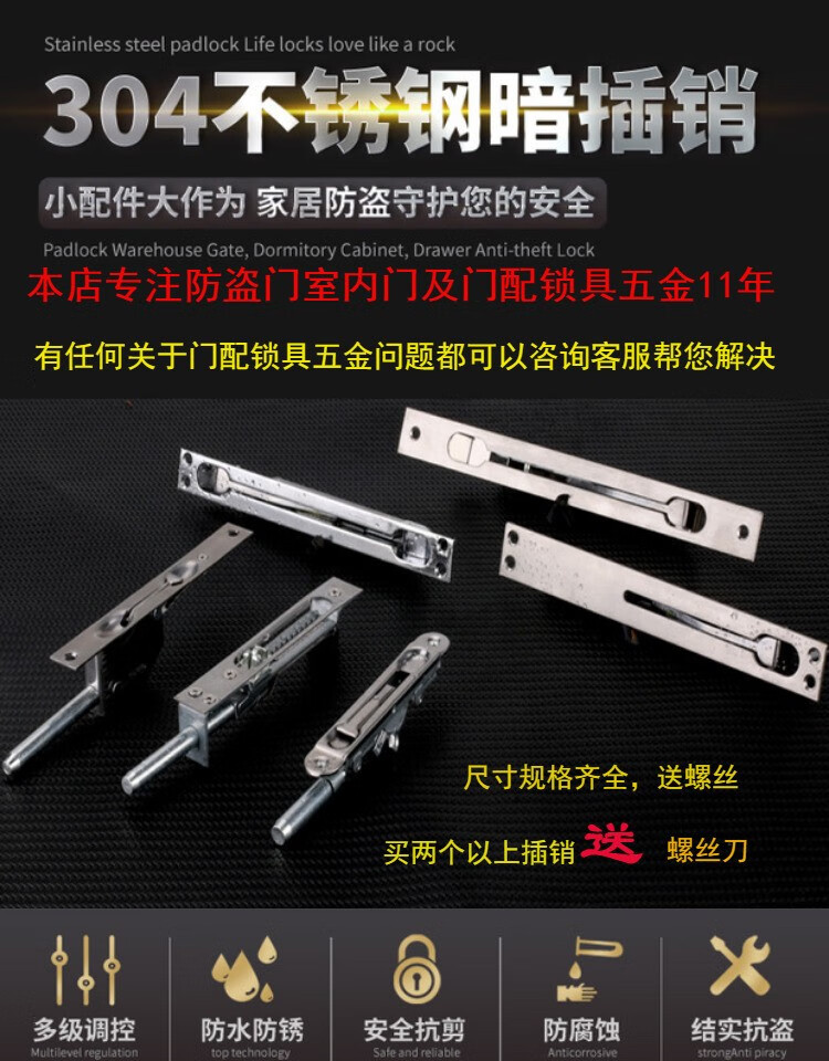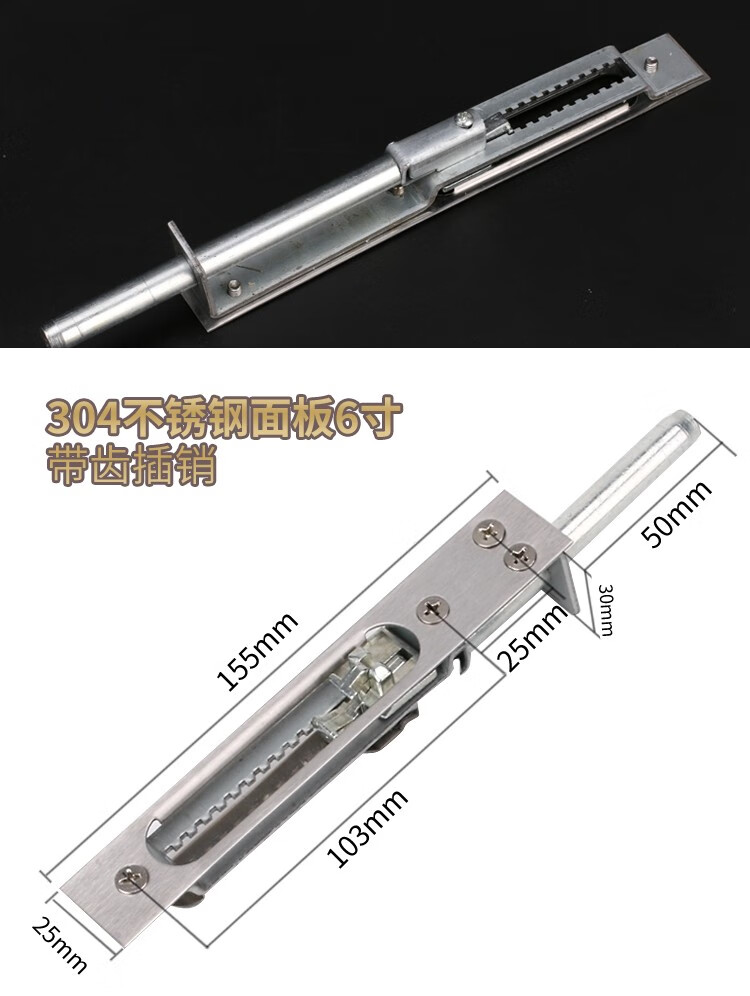 Berry single anti-theft and fire-proof double-open door stainless steel long latch thickened long sky and earth dark latch door buckle door latch 6-inch toothed latch 155*25