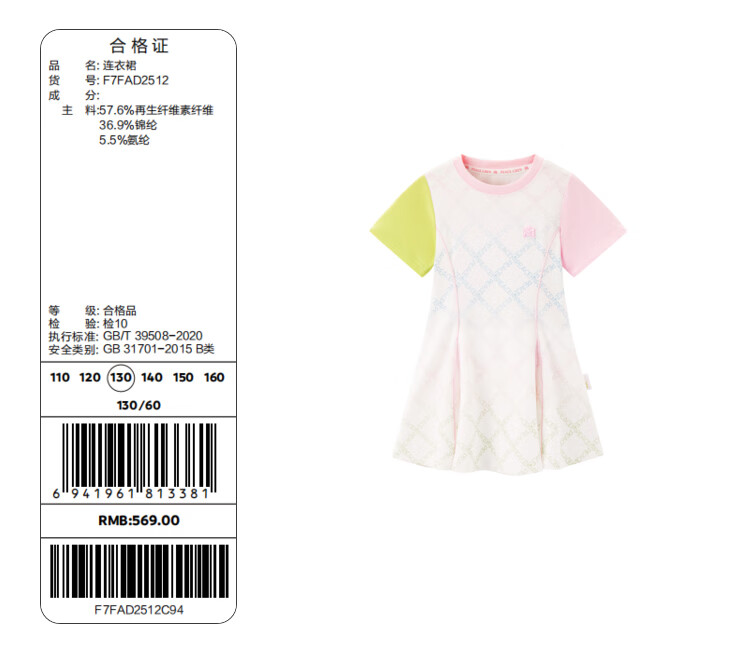 MiniPeace children's clothing sports style children's skirt summer girl's dress white 150cm