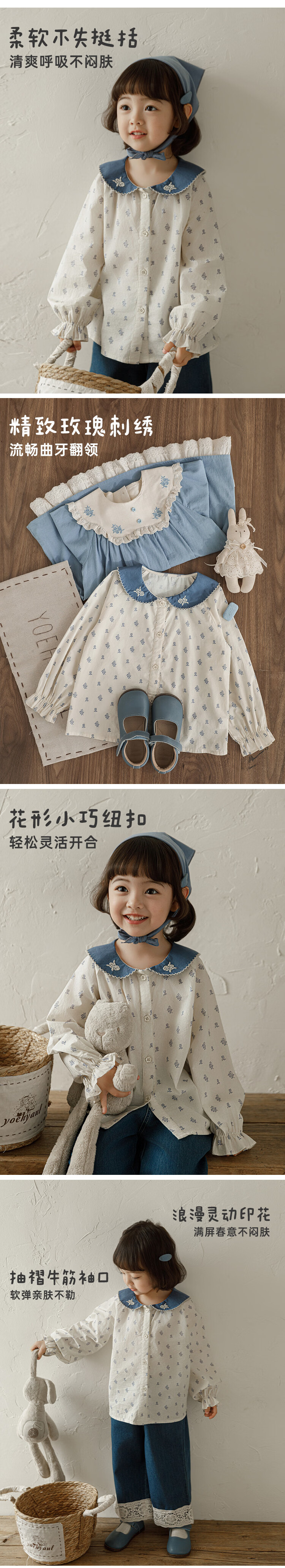 Youyou Girls 2026 Spring New Twill Cotton Contrast Color Lapel Shirt Cute, Endurable and Versatile for Children