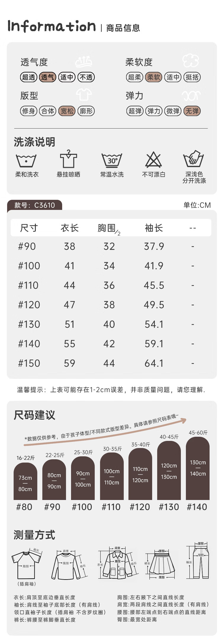 Size (cm) 42 44 46 48 50