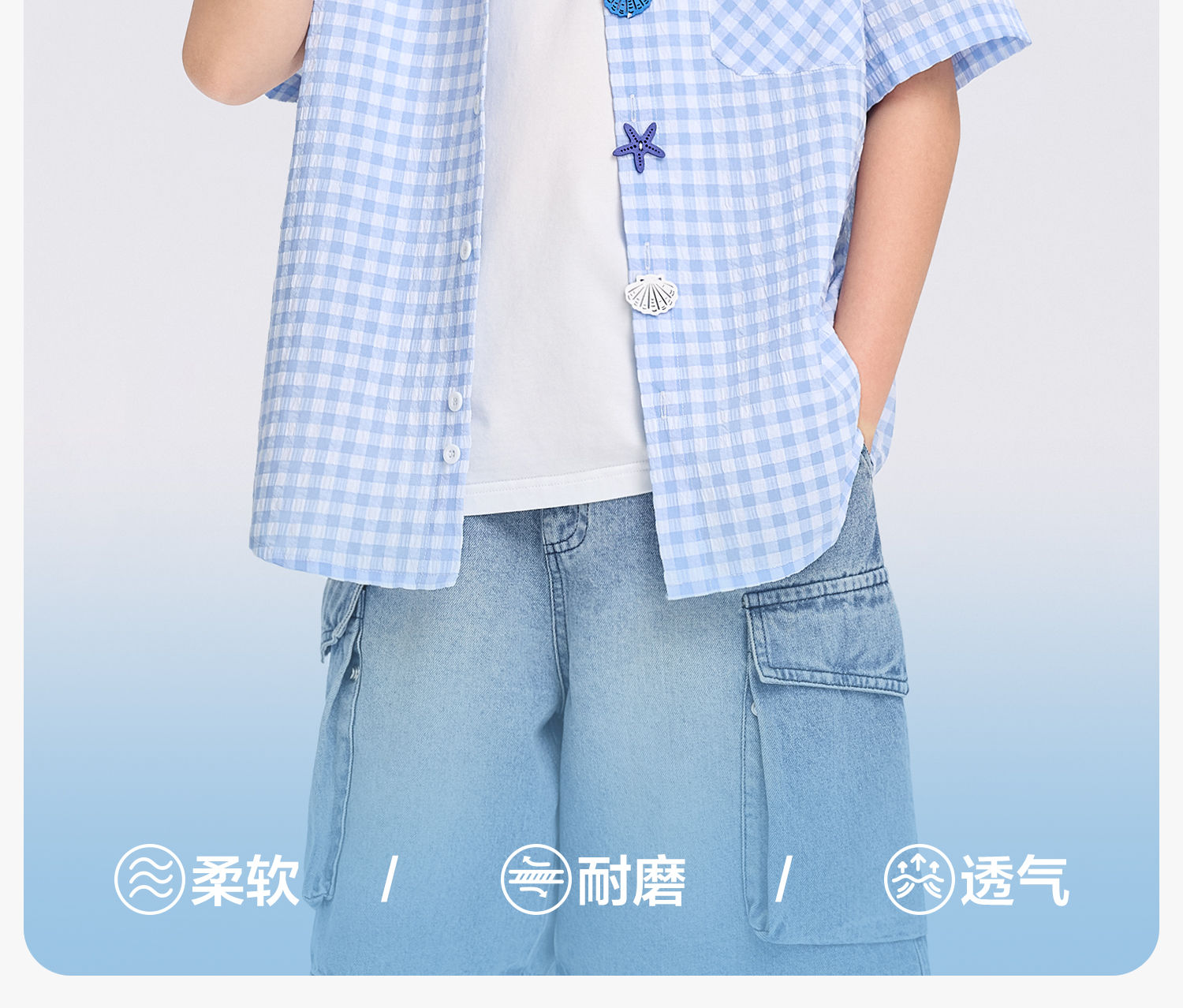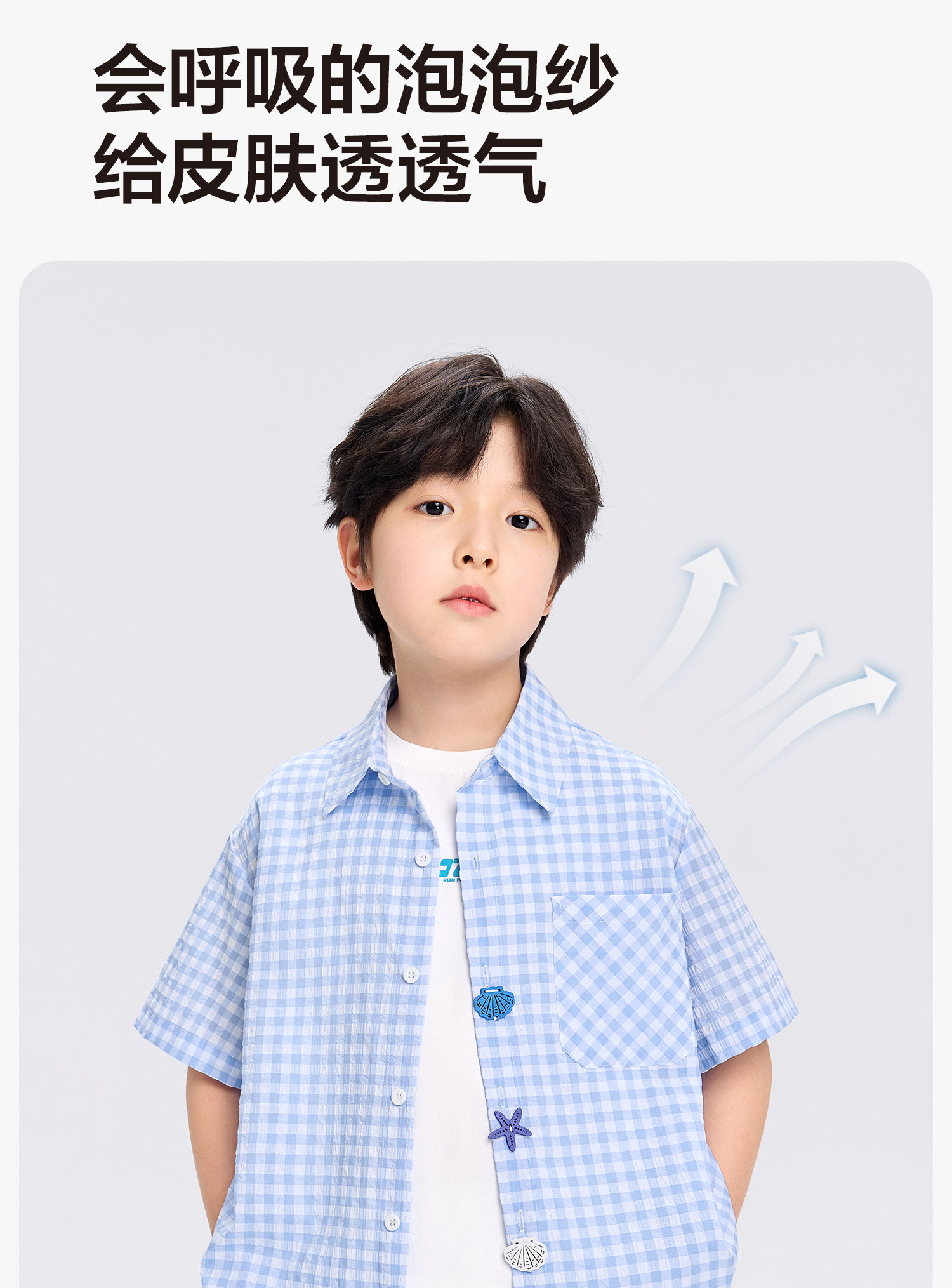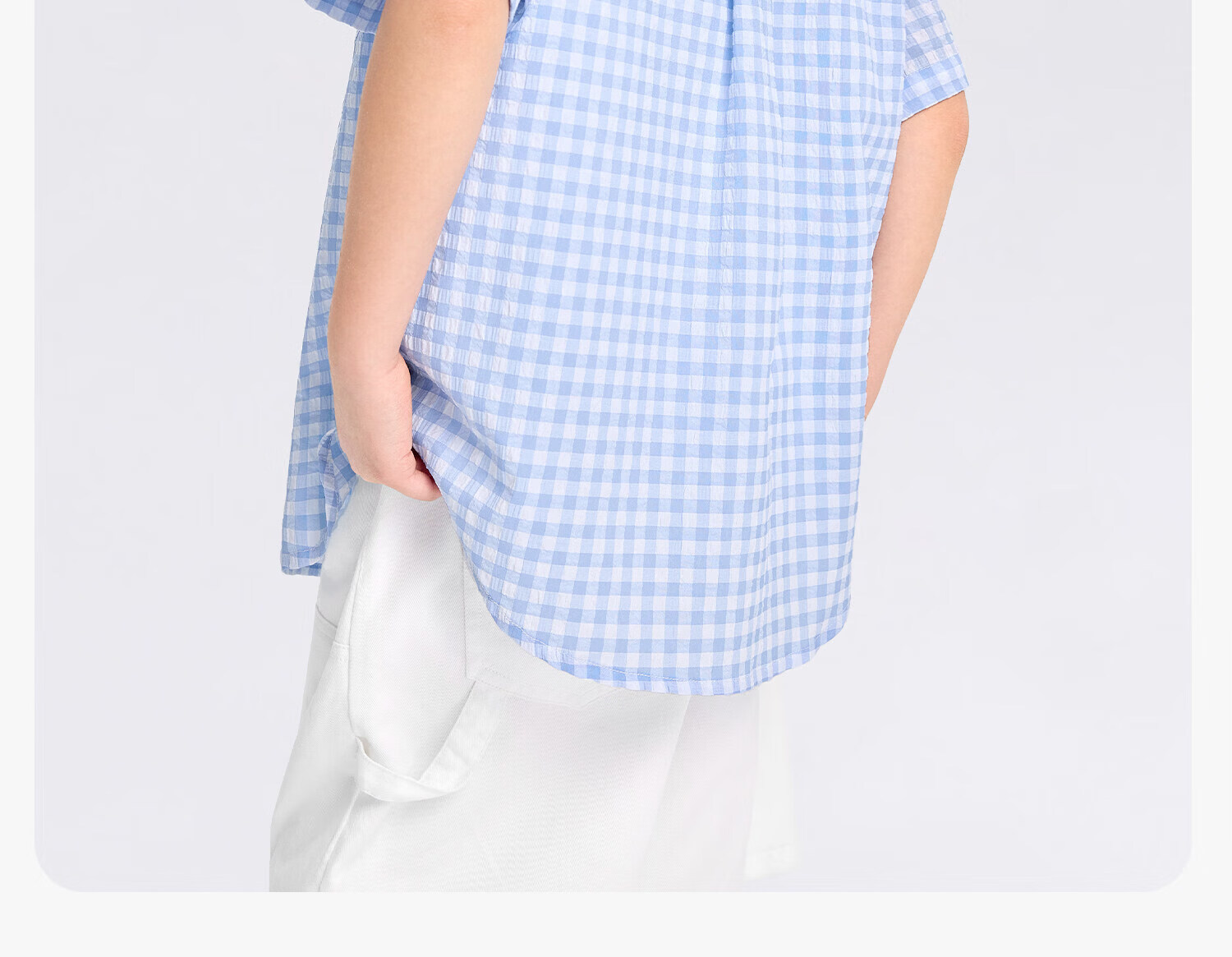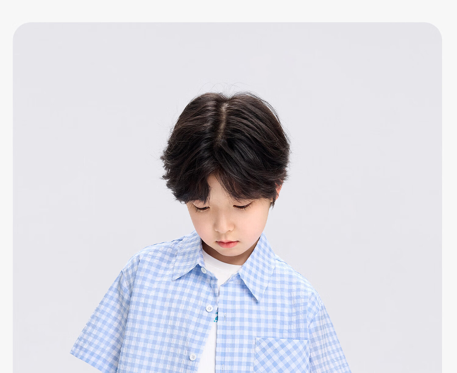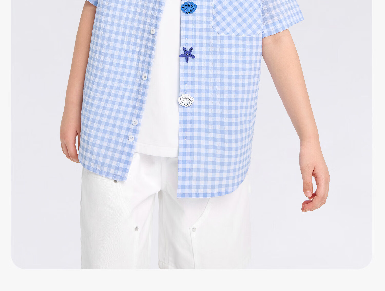 Zuoxi 2026 summer new style boys' interesting button seersucker shirt plaid small shirt blue plaid 165