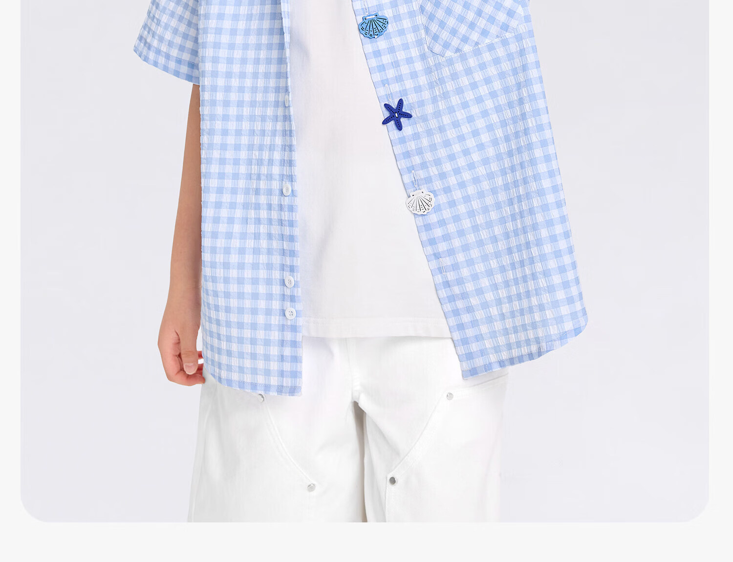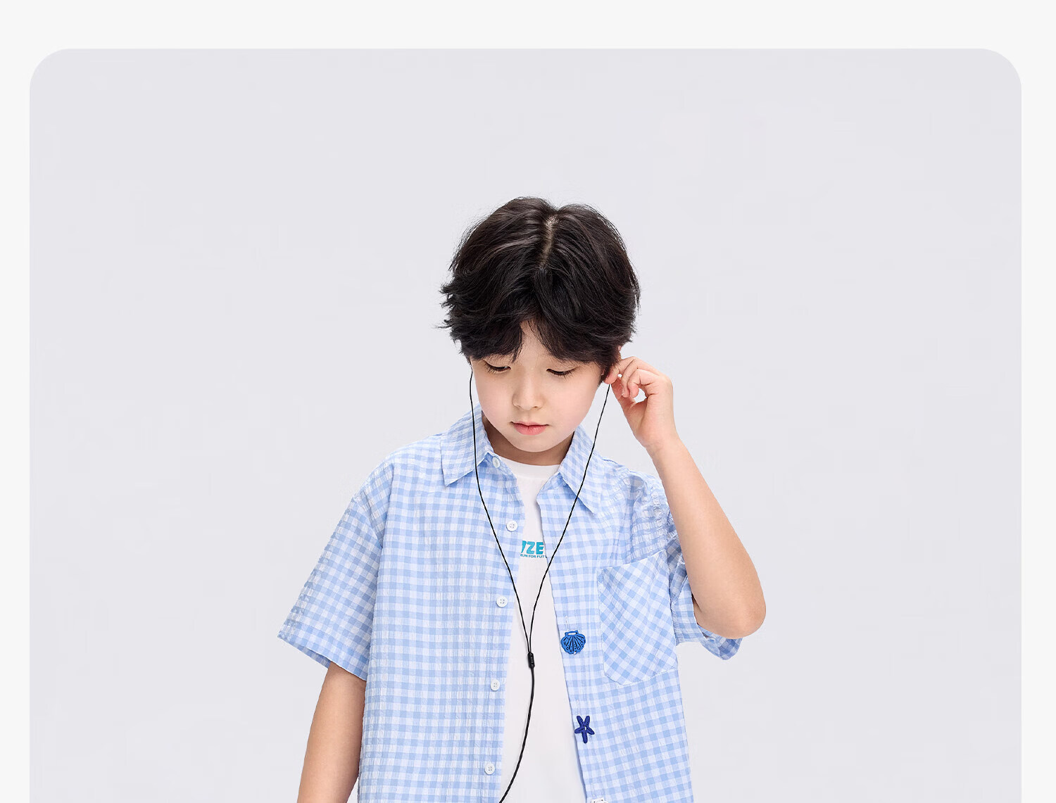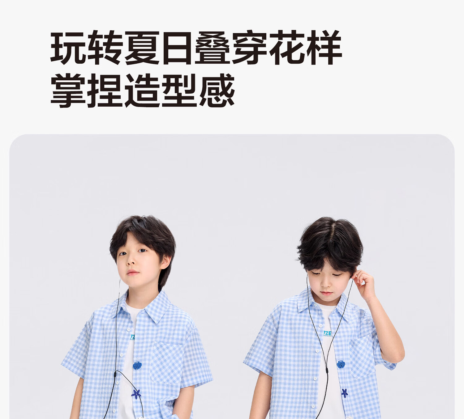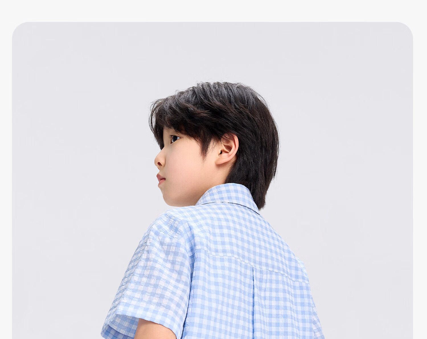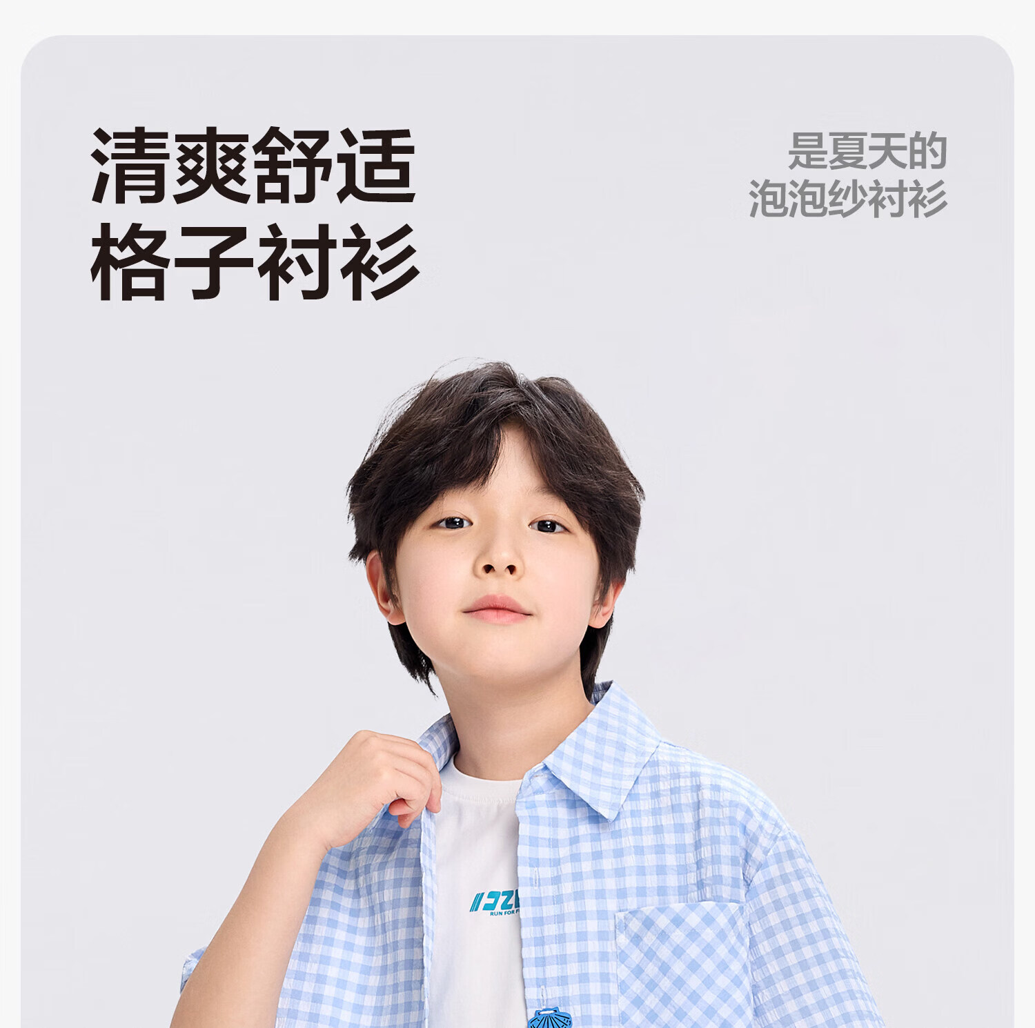 Zuoxi 2026 summer new style boys' interesting button seersucker shirt plaid small shirt blue plaid 165