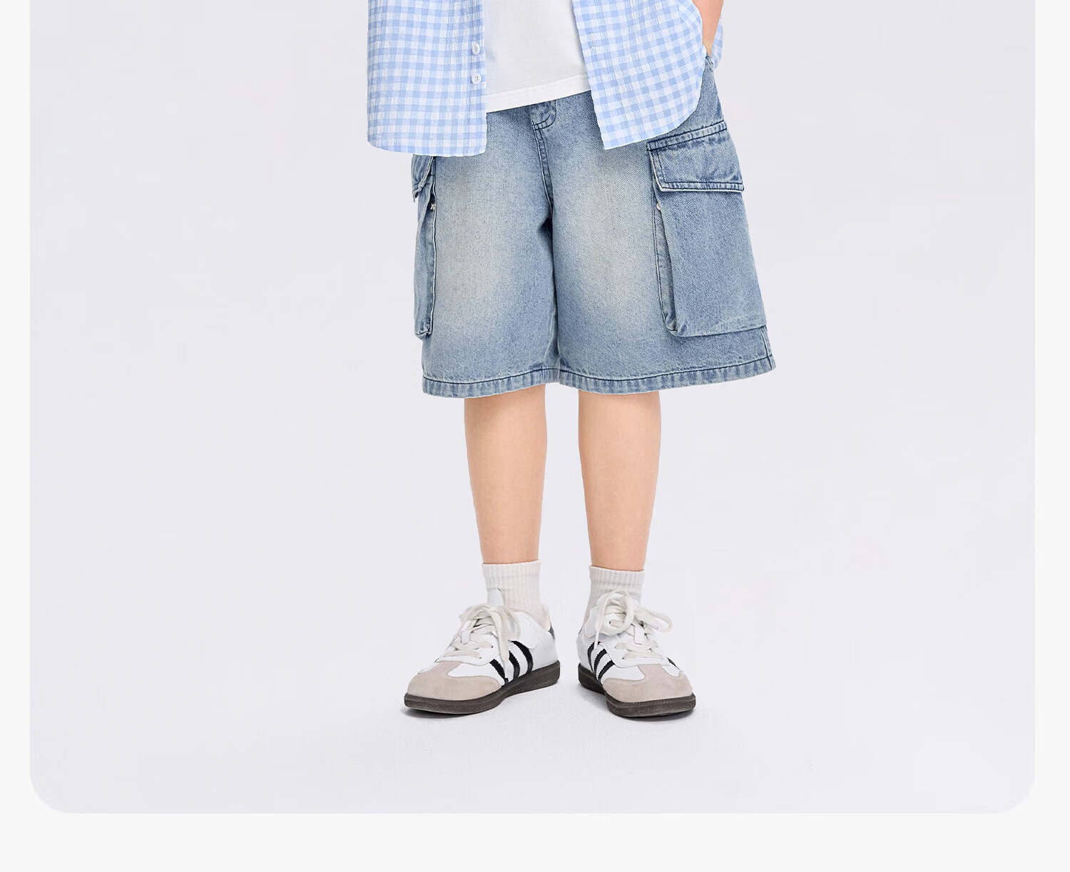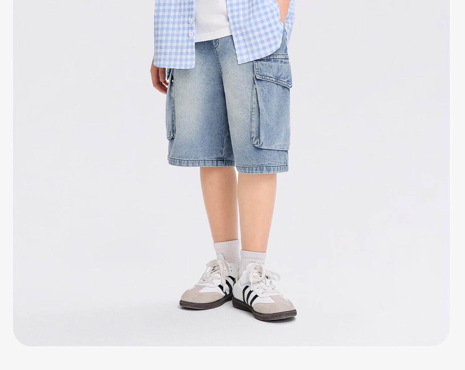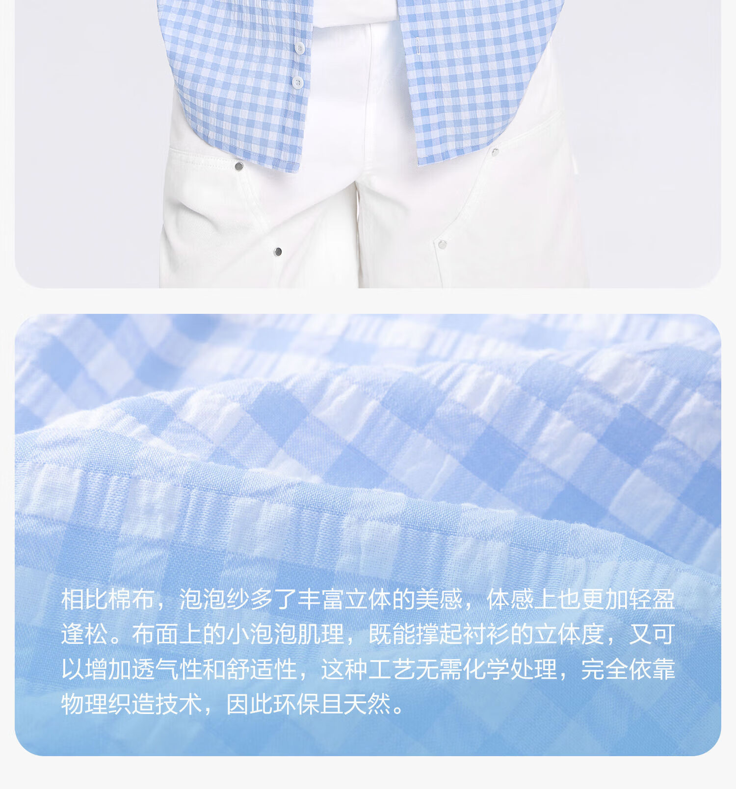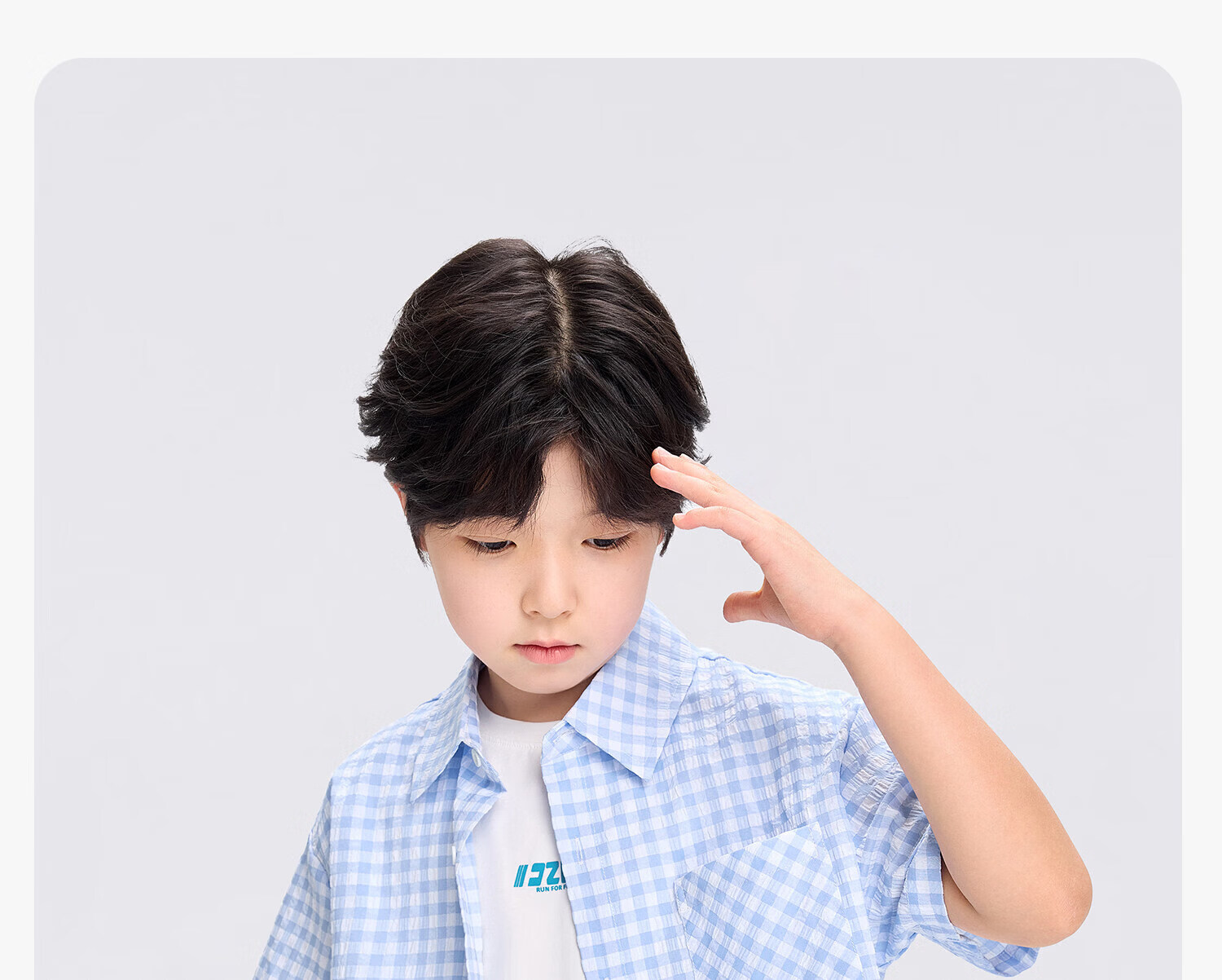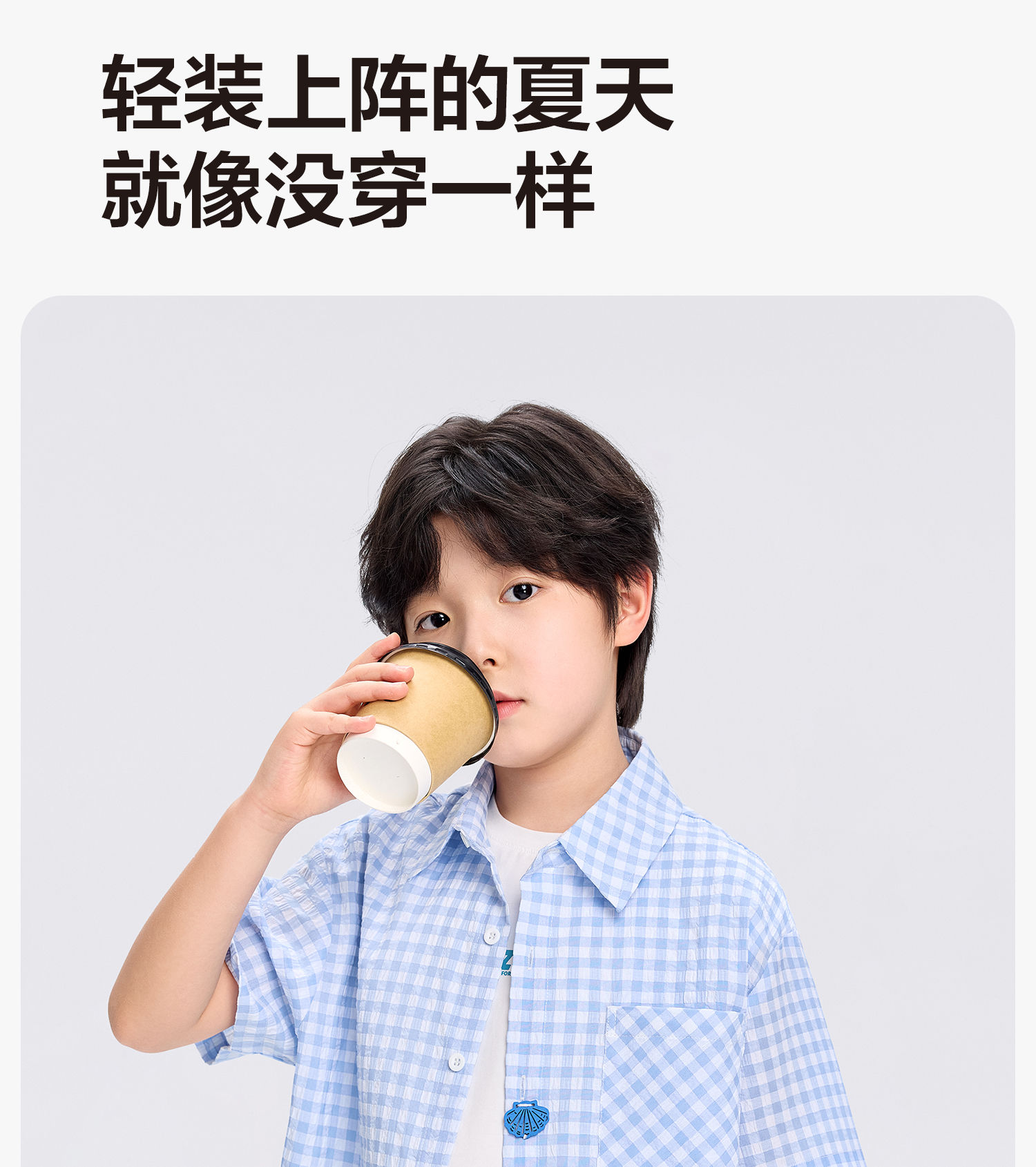 Zuoxi 2026 summer new style boys' interesting button seersucker shirt plaid small shirt blue plaid 165