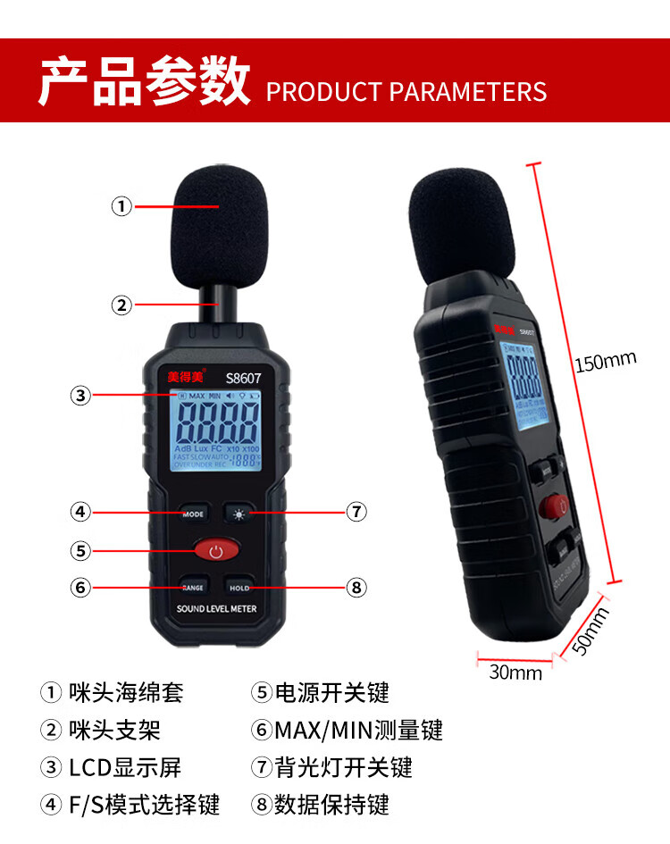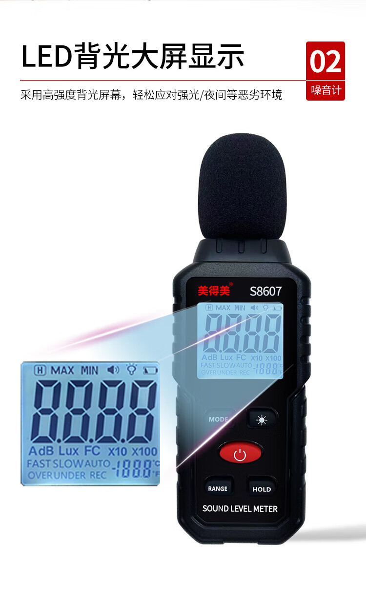 Midea high-precision noise meter handheld decibel detector industrial noise tester environmental volume meter S8607