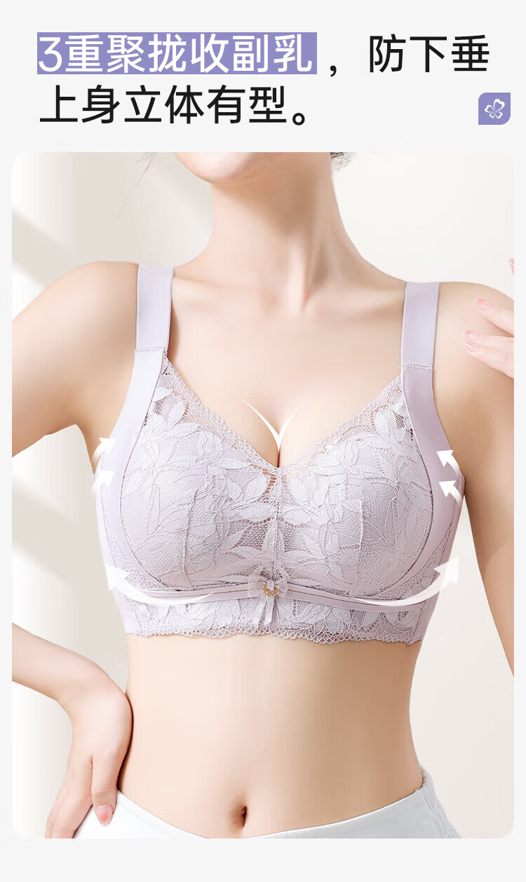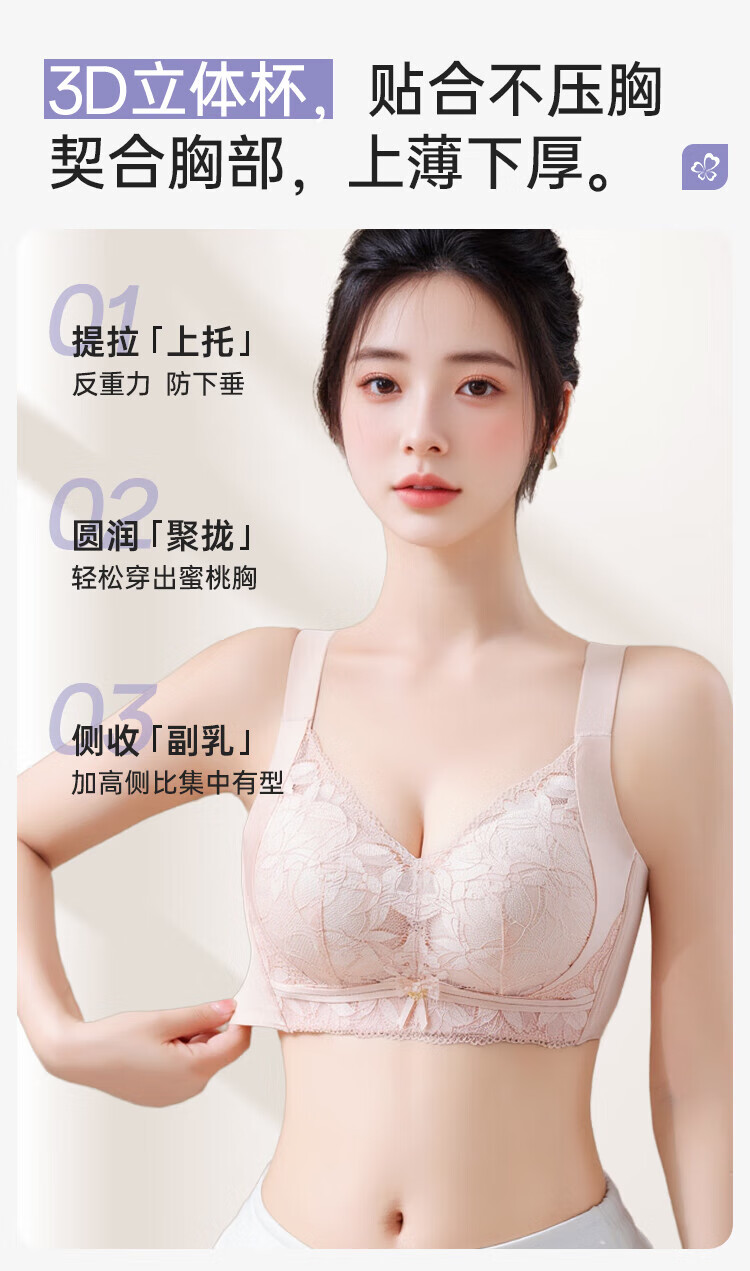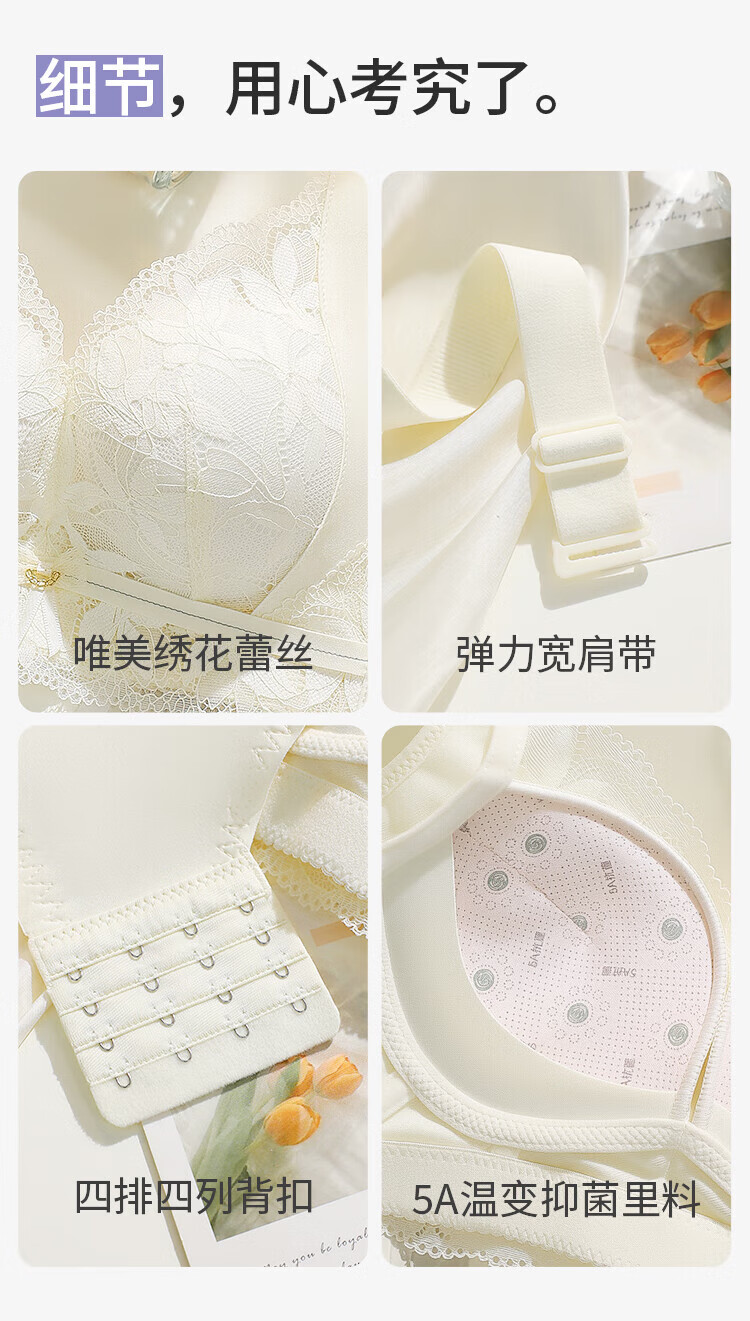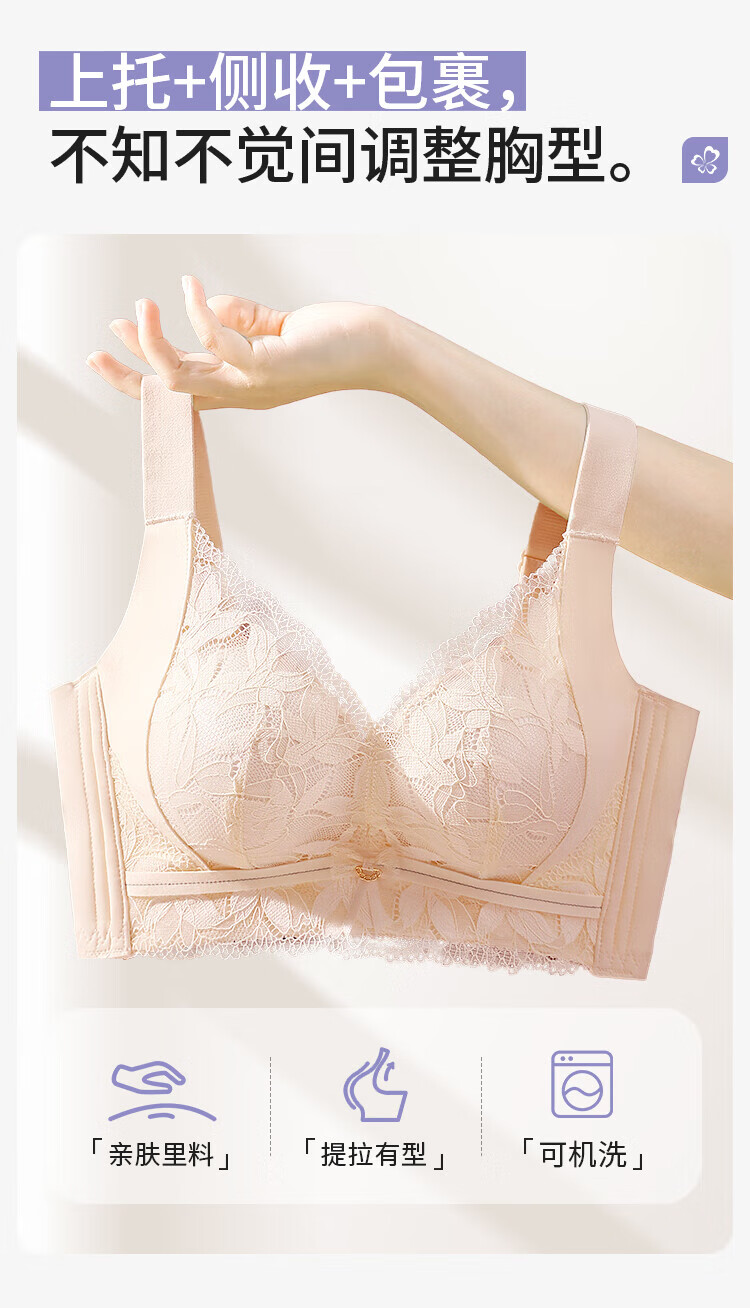 Urban Beauty Modal Underwear Women's Push Up Small Breasts Show Big Top Support Anti Sagging Breast Reduction Wireless Lace Bra Champagne