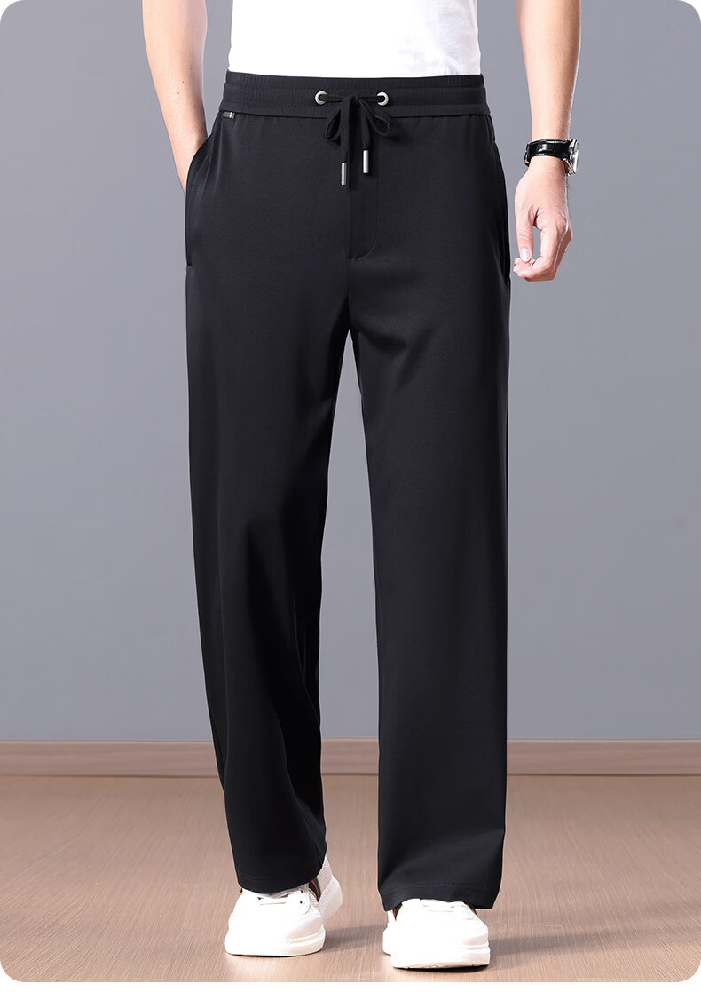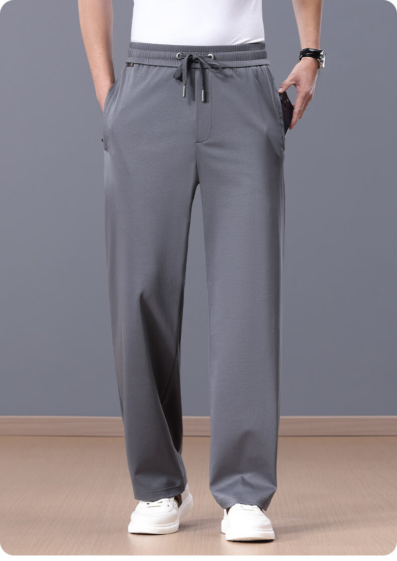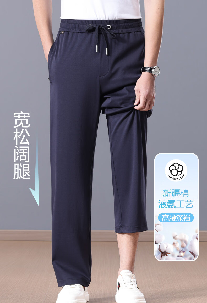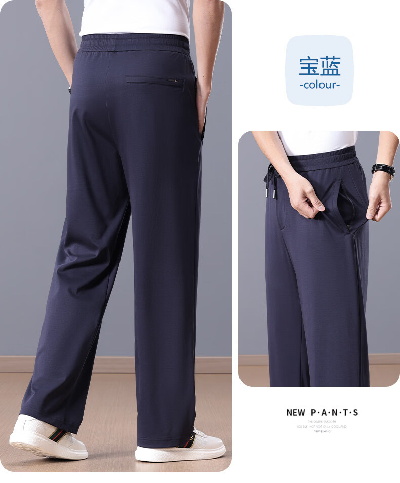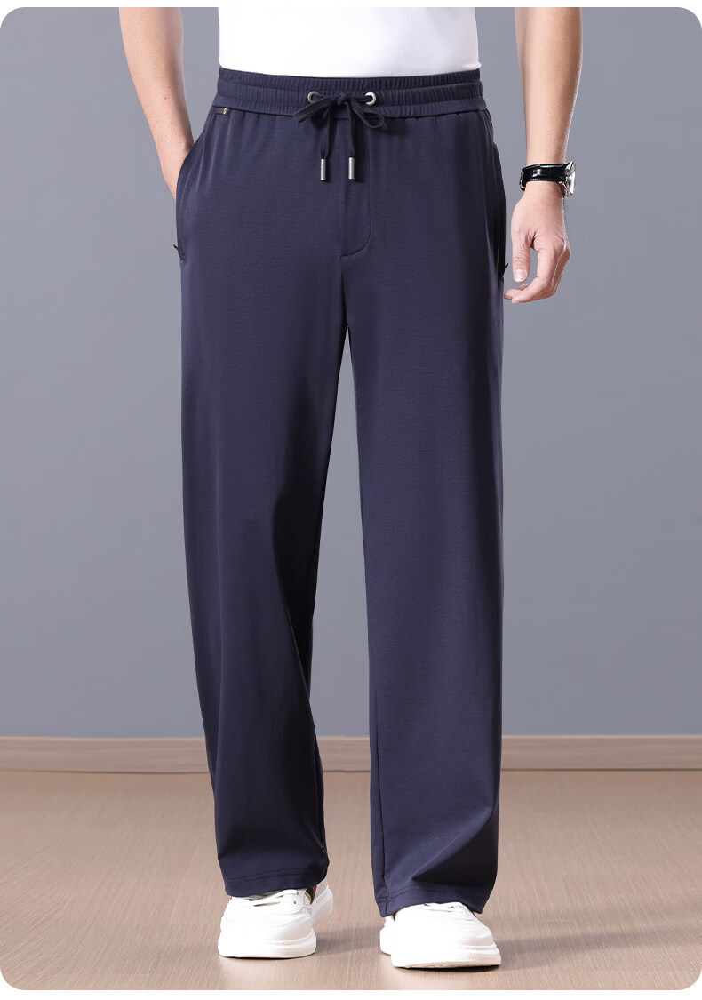 Lozi high-end 100% cotton liquid ammonia summer thin men's casual pants straight loose sports pants blue M
