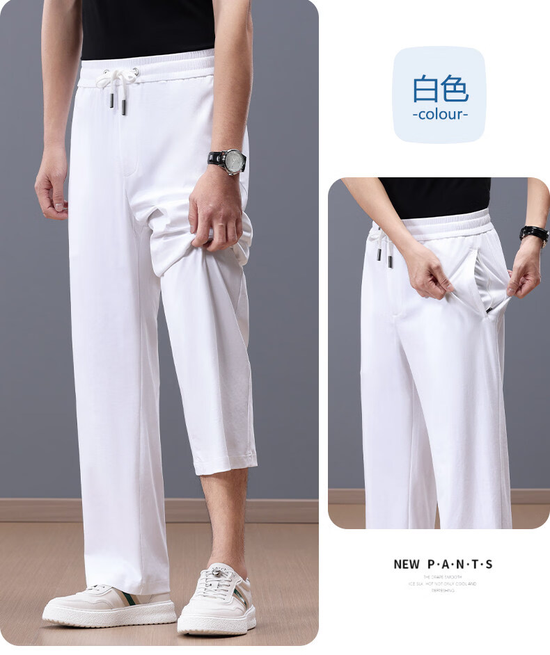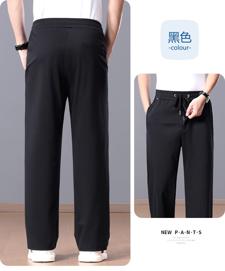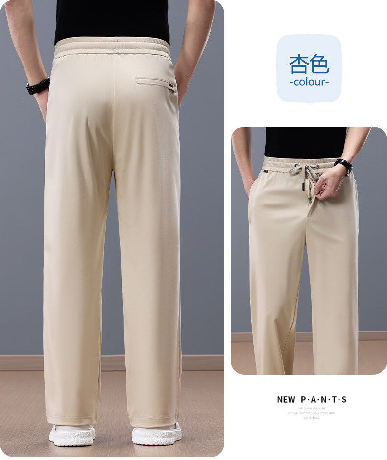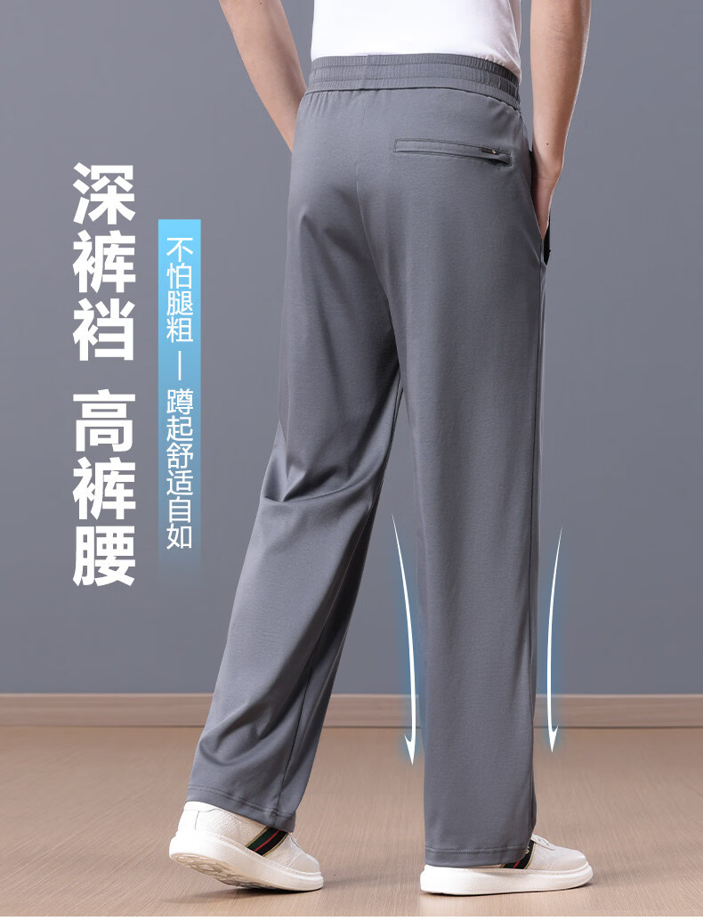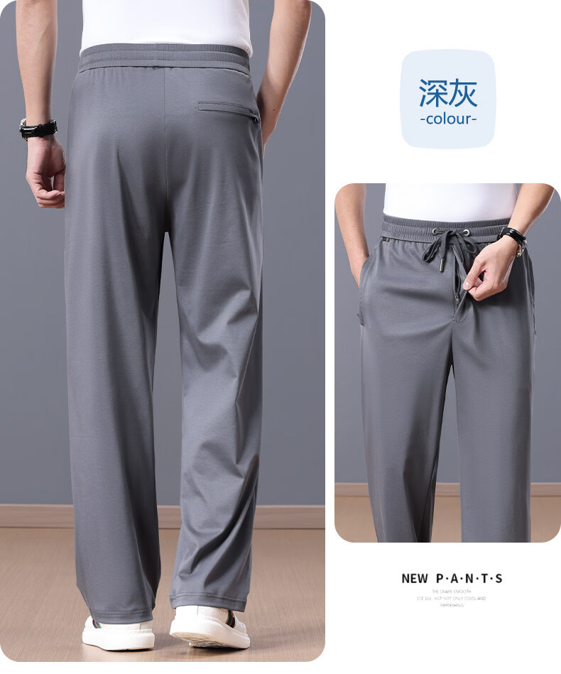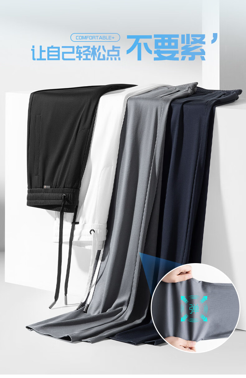 Lozi high-end 100% cotton liquid ammonia summer thin men's casual pants straight loose sports pants blue M