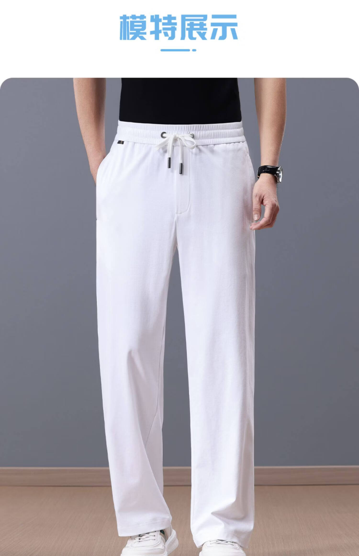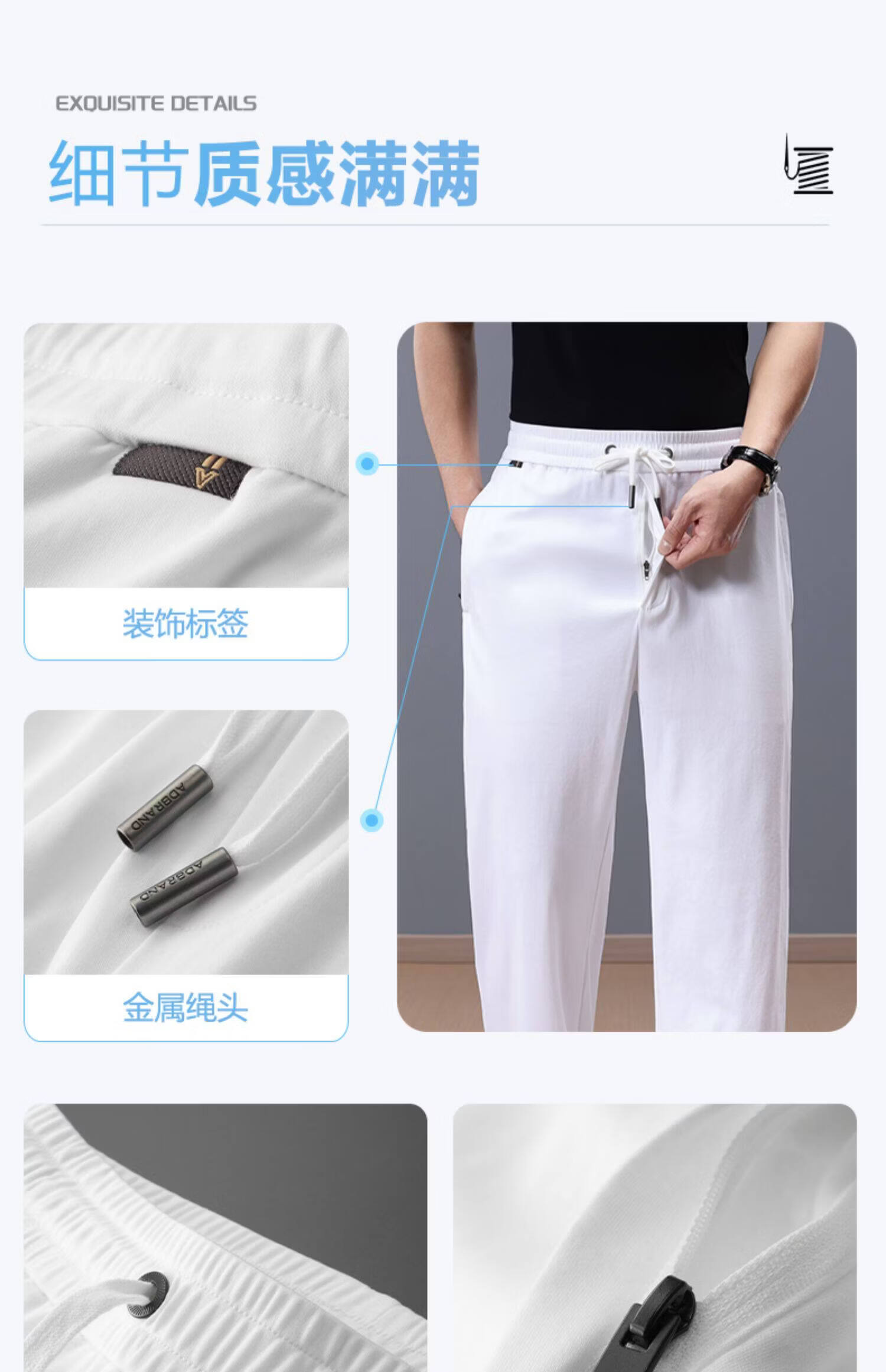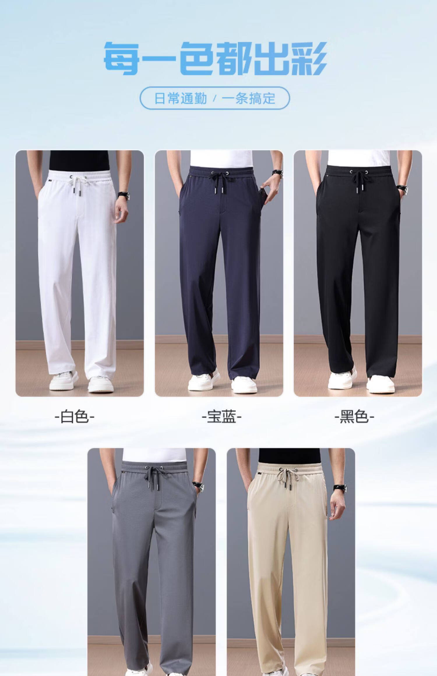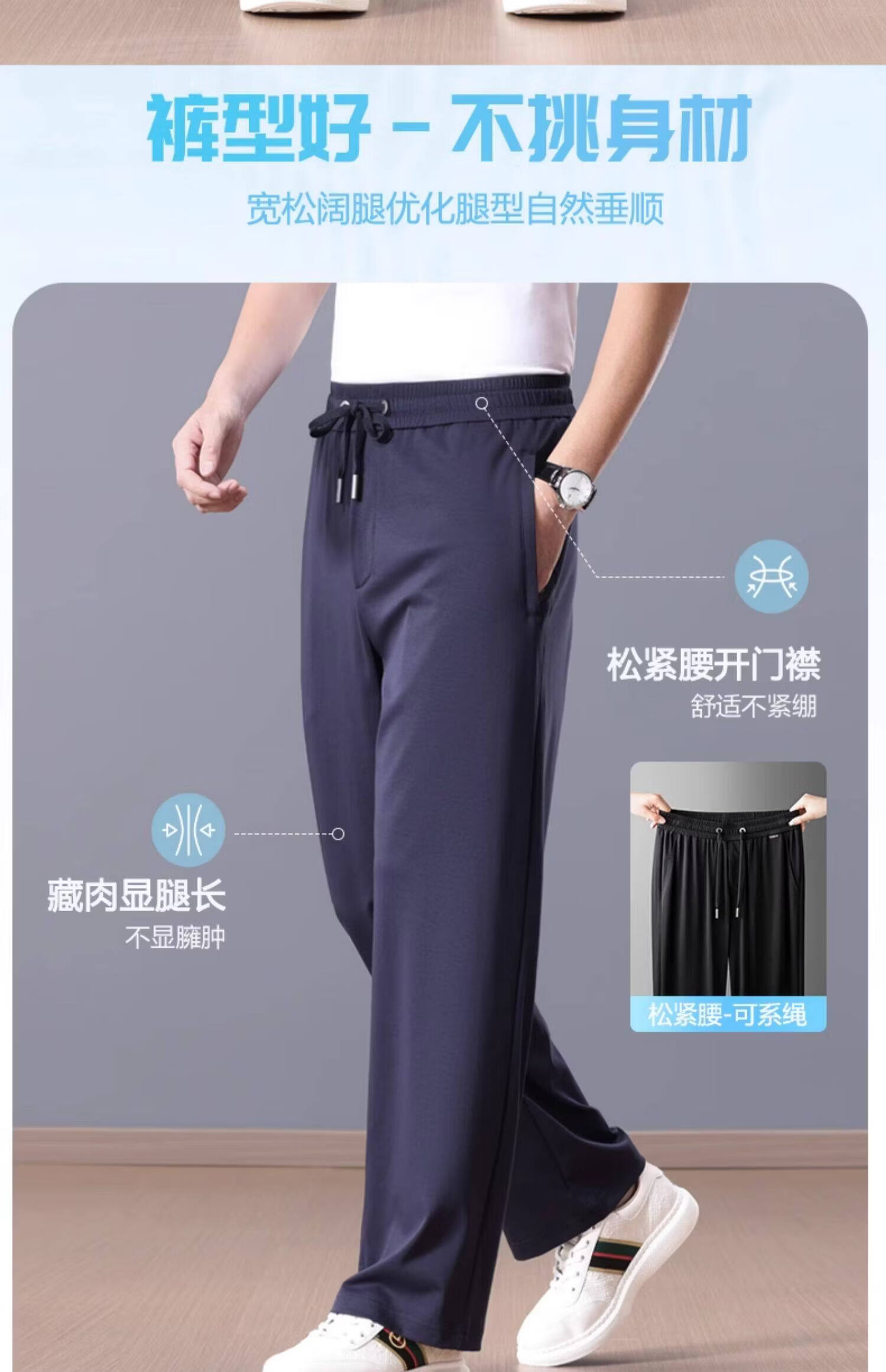 Lozi high-end 100% cotton liquid ammonia summer thin men's casual pants straight loose sports pants blue M