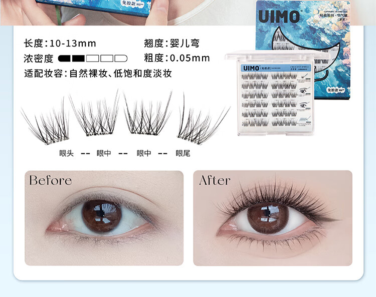 UIMO glue-free false eyelashes stemless sunflower self-adhesive air eyelashes natural Crescent Moon Spring
