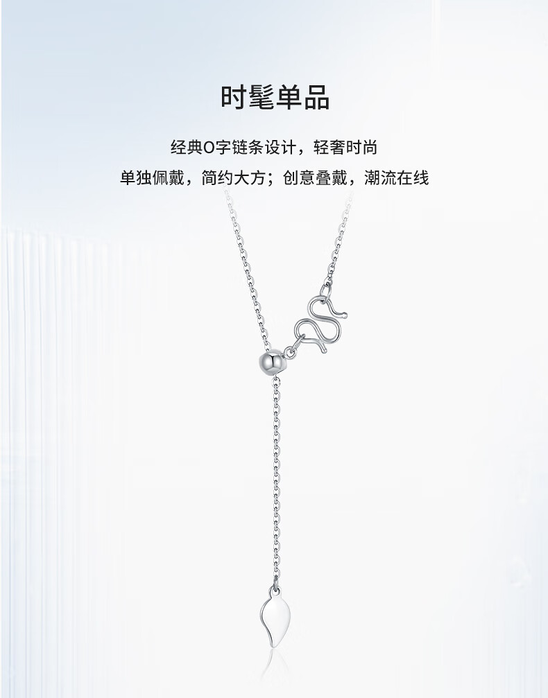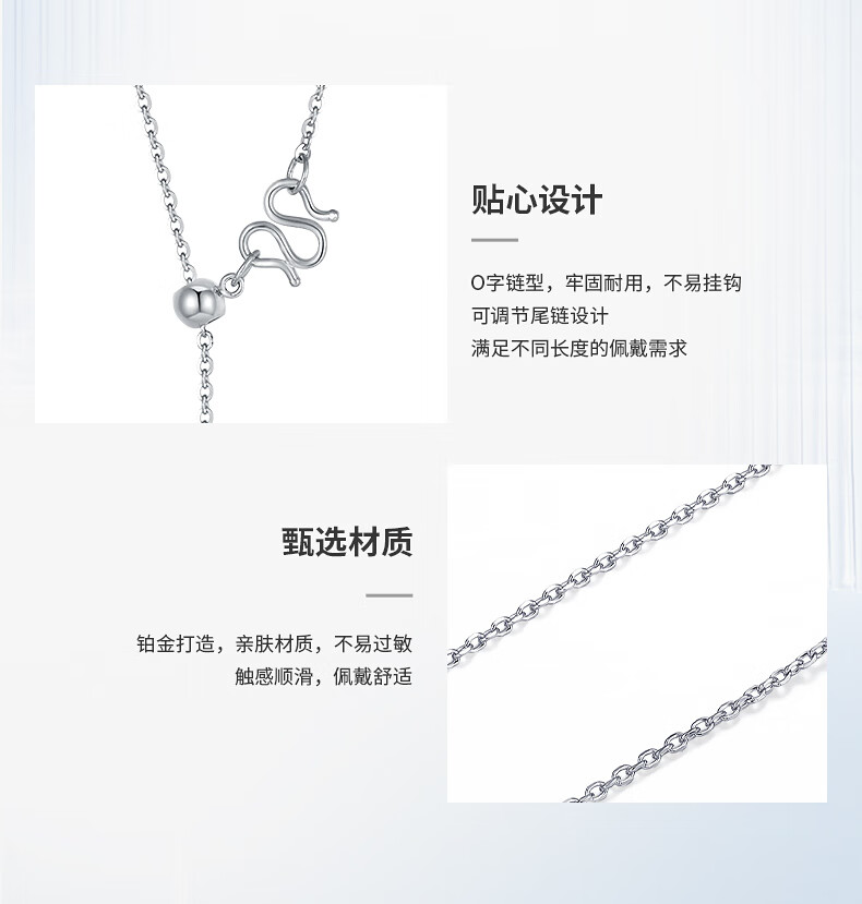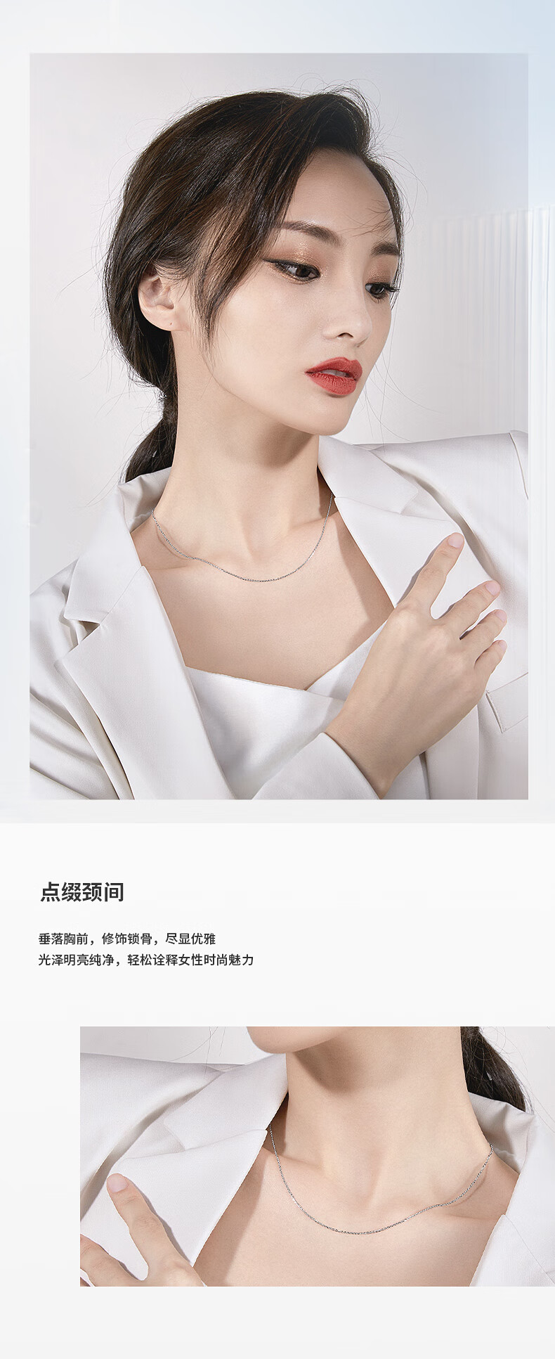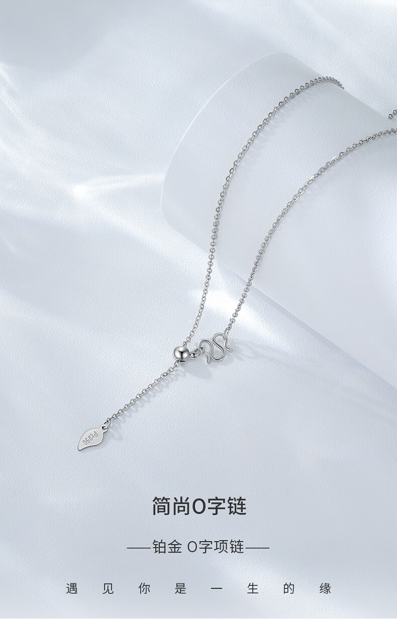 Chow Tai Sang platinum necklace for women Pt950 simple plain chain O-shaped chain platinum clavicle chain birthday gift for girlfriend 2.48g platinum O-shaped chain