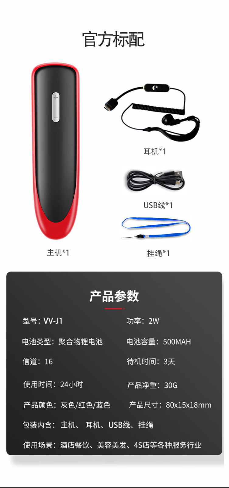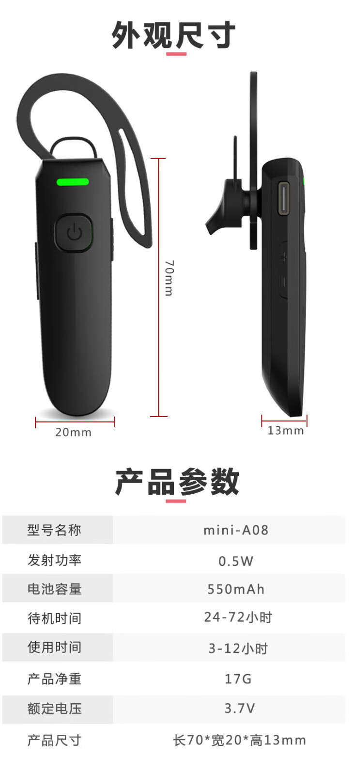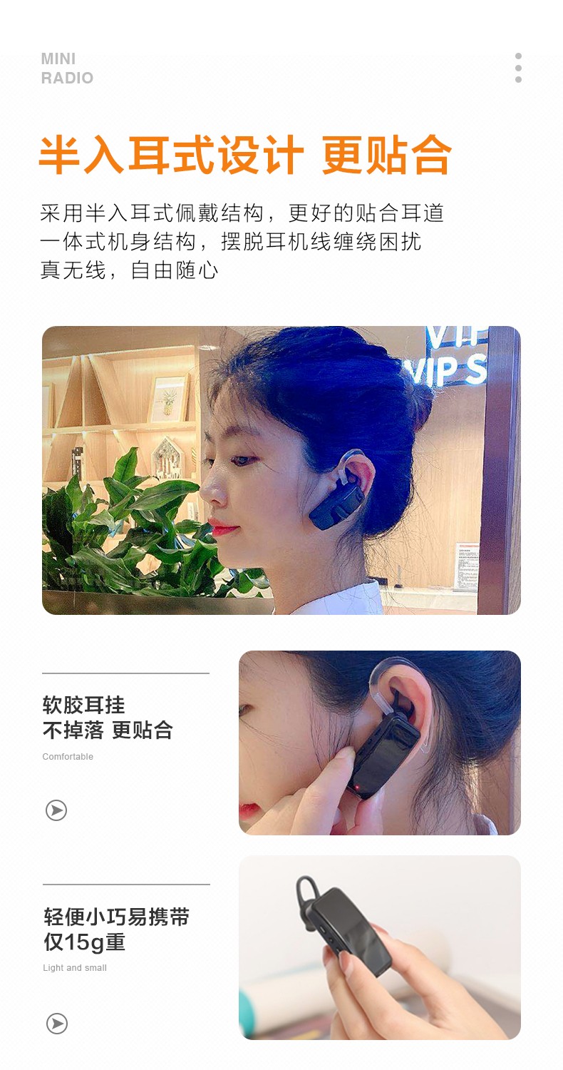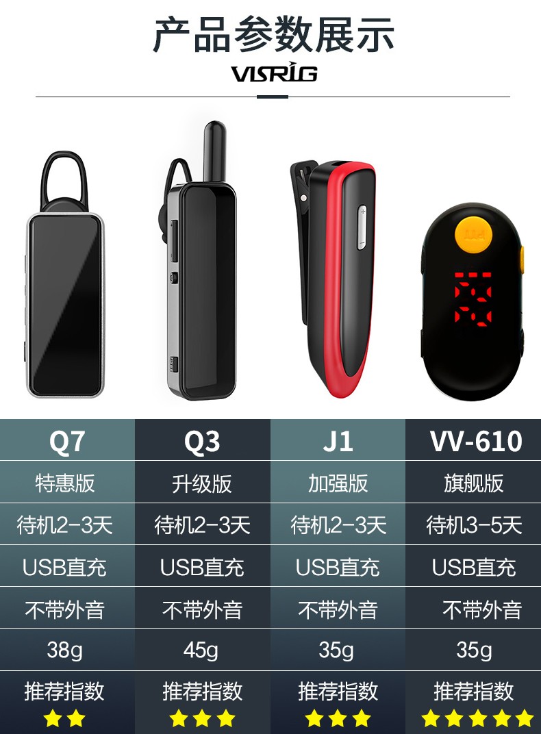 VISRIG walkie-talkie mini thin and light micro walkie-talkie wireless mobile phone restaurant hair salon Bluetooth walkie-talkie headset ear-hook intercom small machine mini exclusive version ear-hook J1
