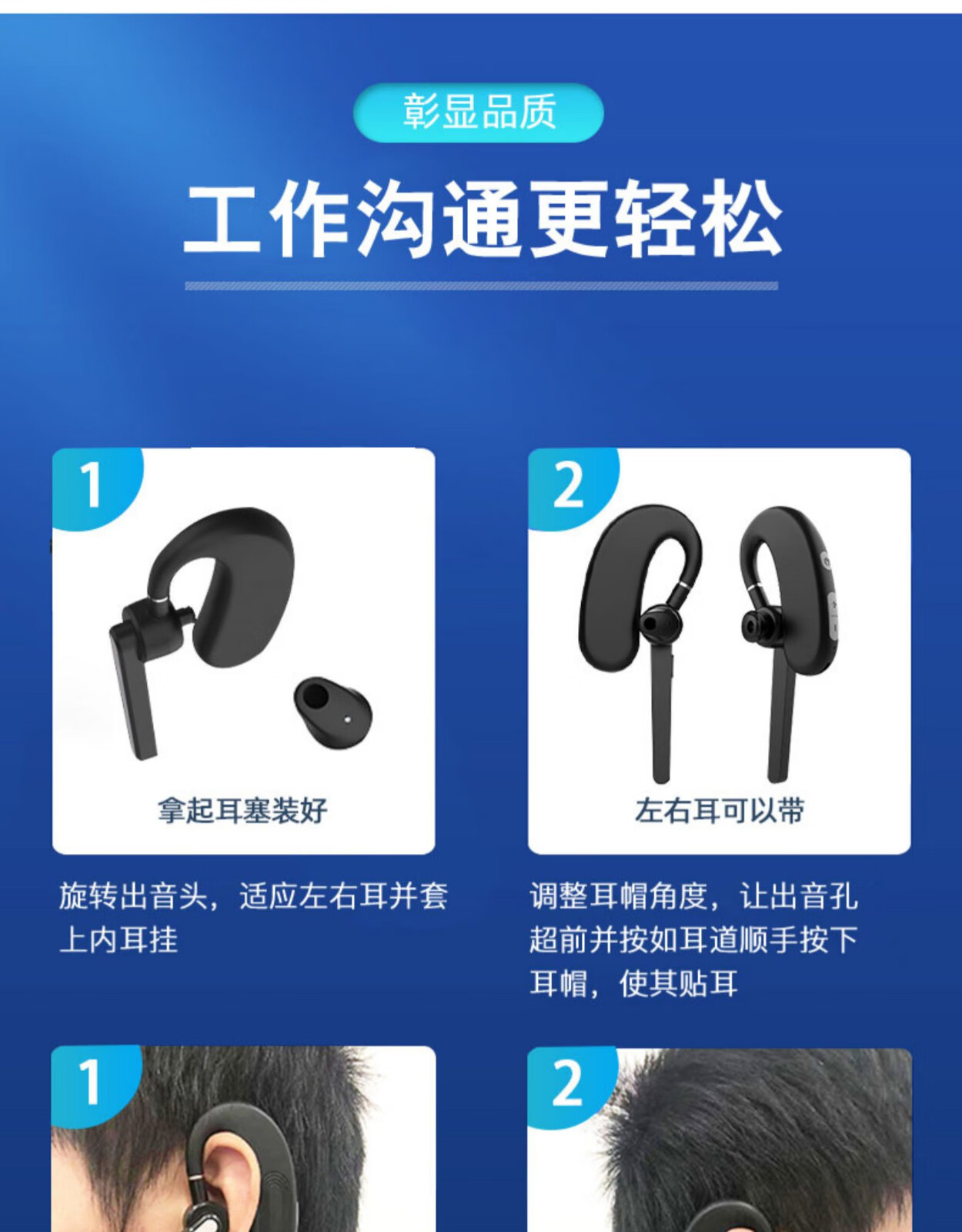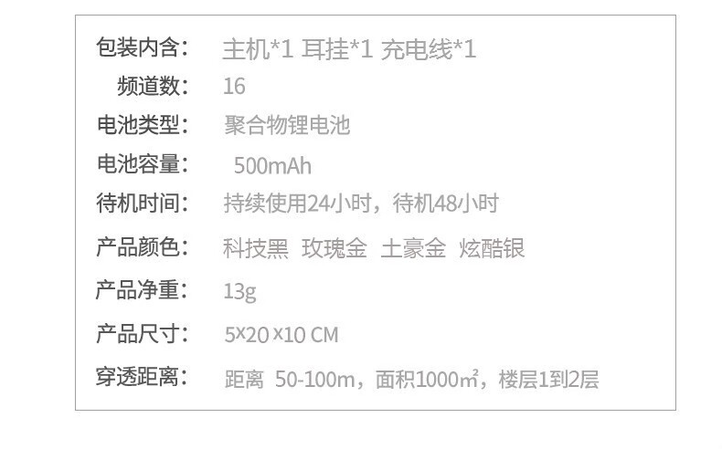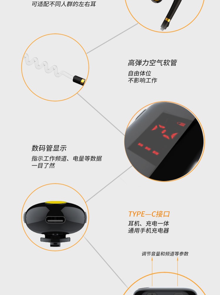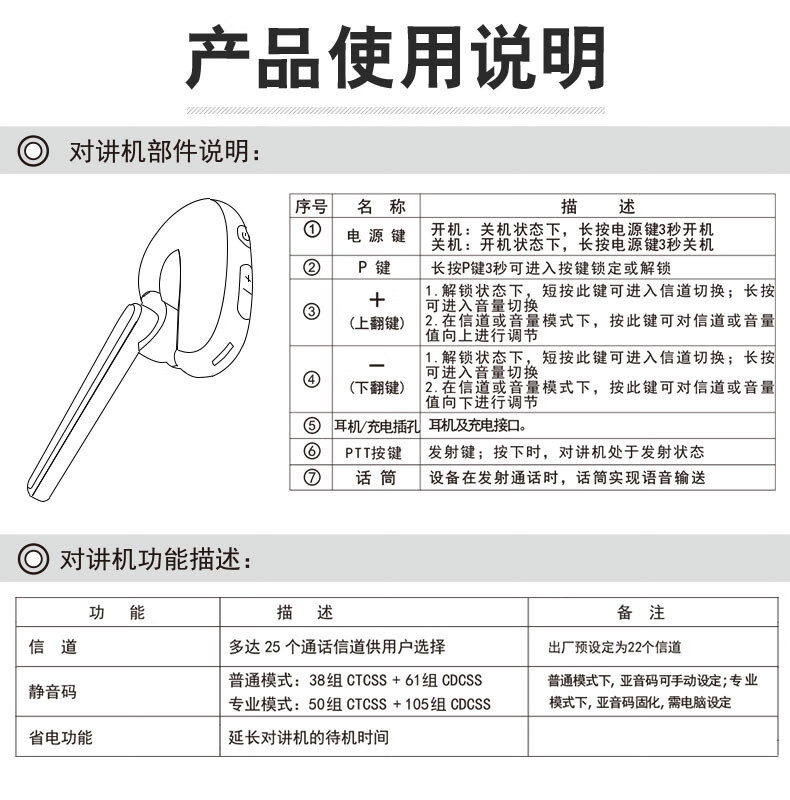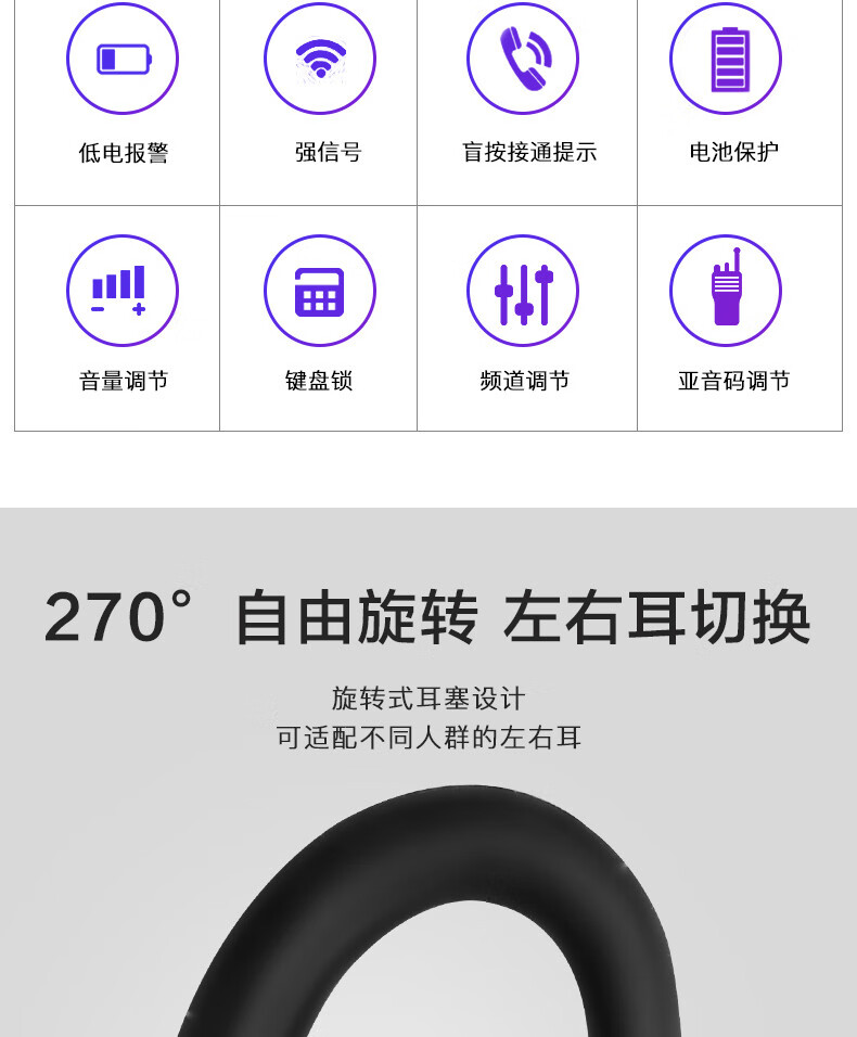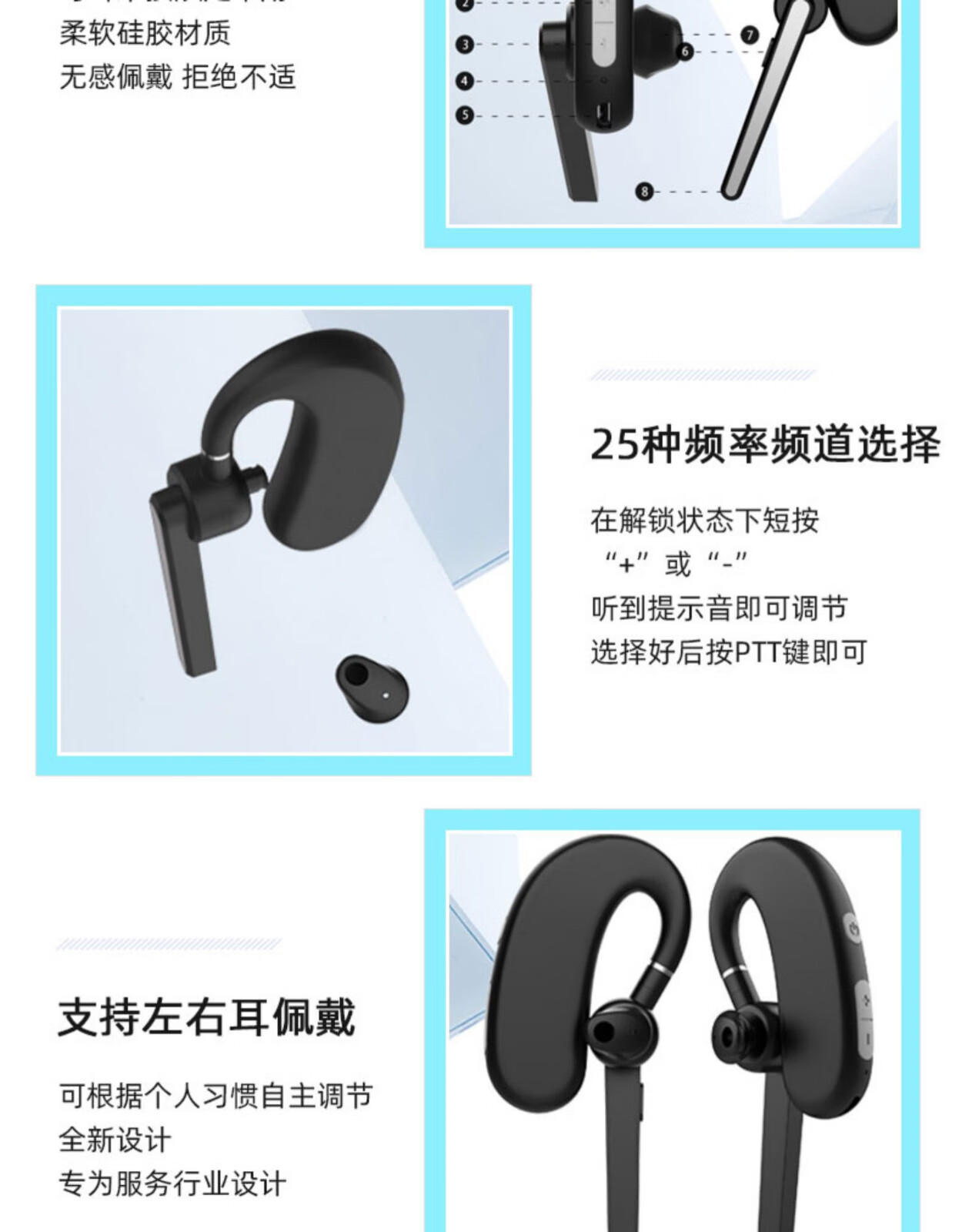 VISRIG walkie-talkie mini thin and light micro walkie-talkie wireless mobile phone restaurant hair salon Bluetooth walkie-talkie headset ear-hook intercom small machine mini exclusive version ear-hook J1