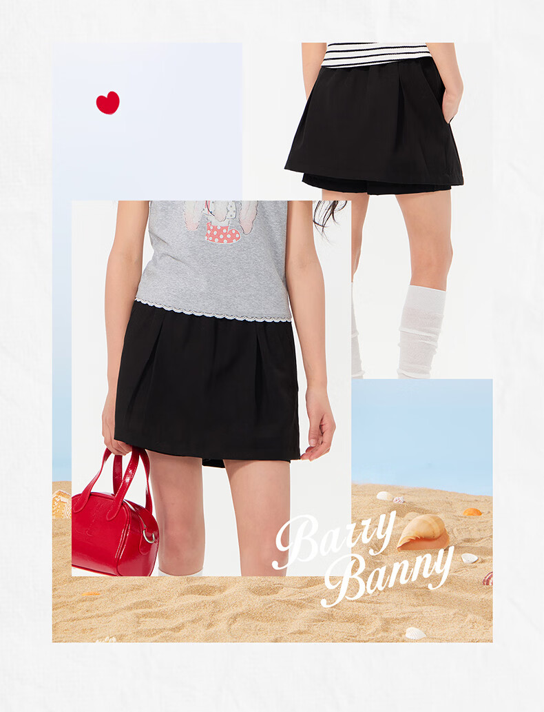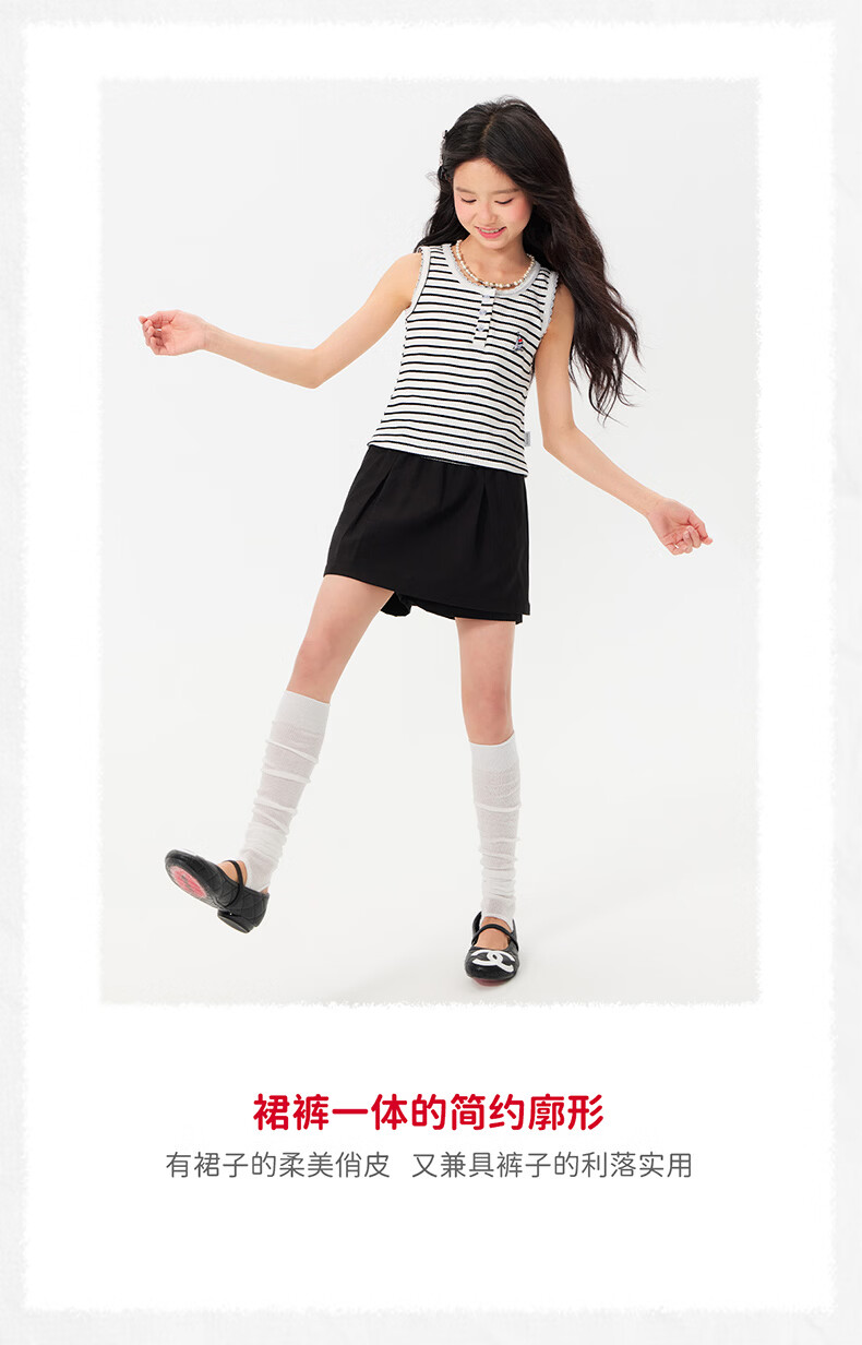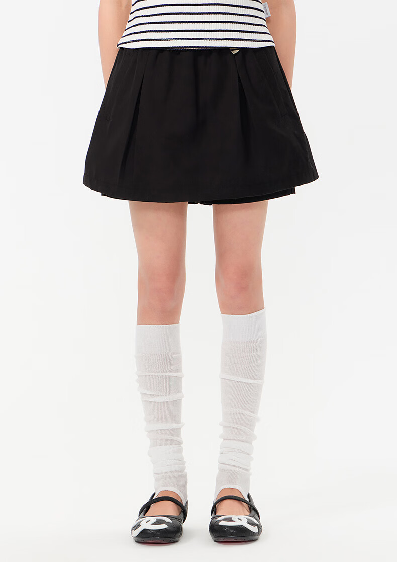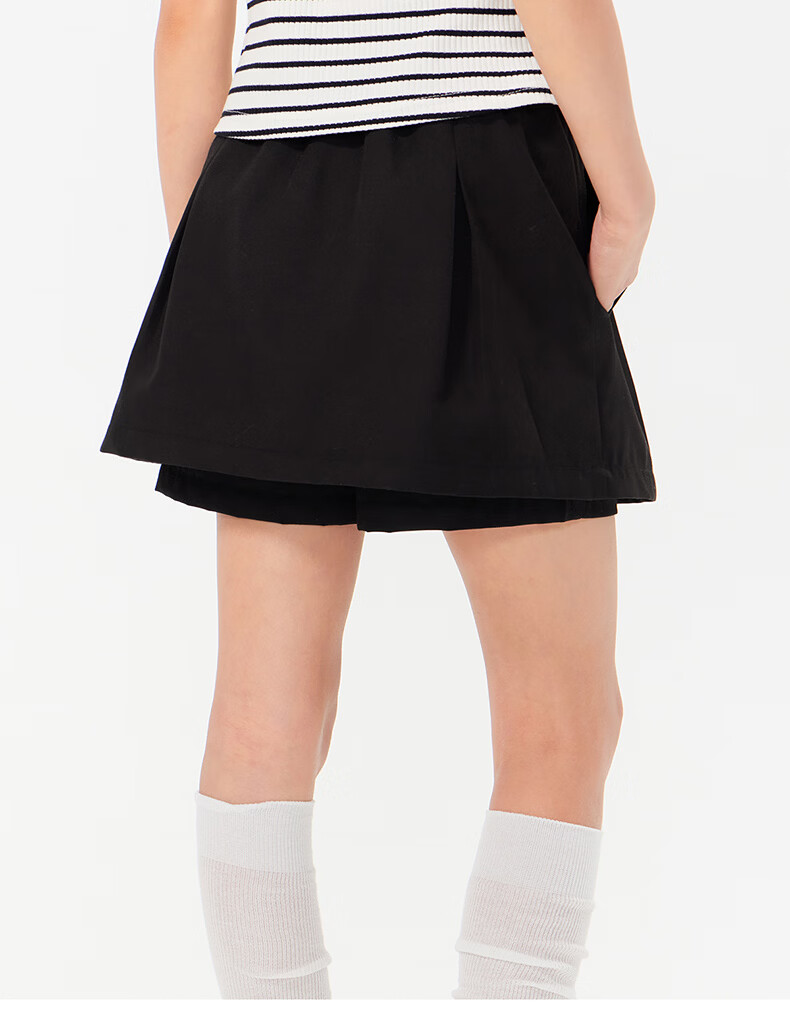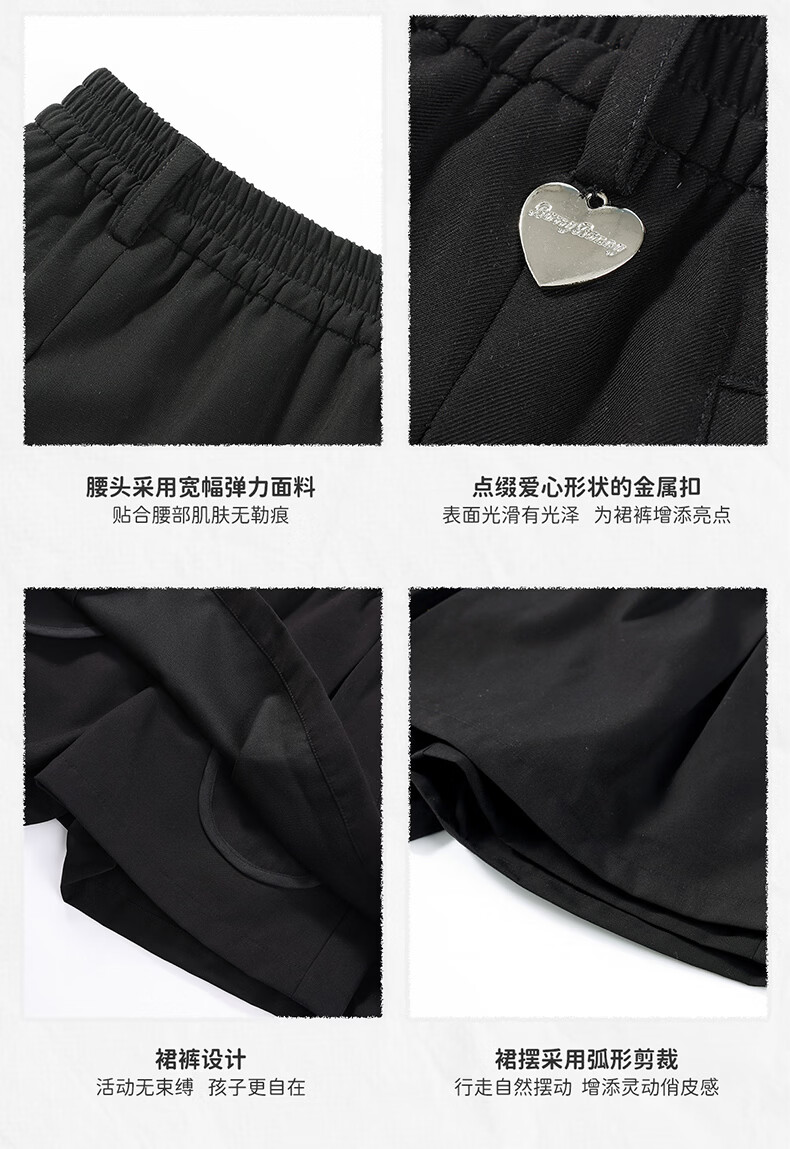BARRY BANNY Girls' A-Line Pants Skirt 2026 Spring and Summer New Children's Casual Pleated High Waist Skirt 8025 Classic Black 150