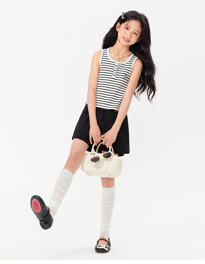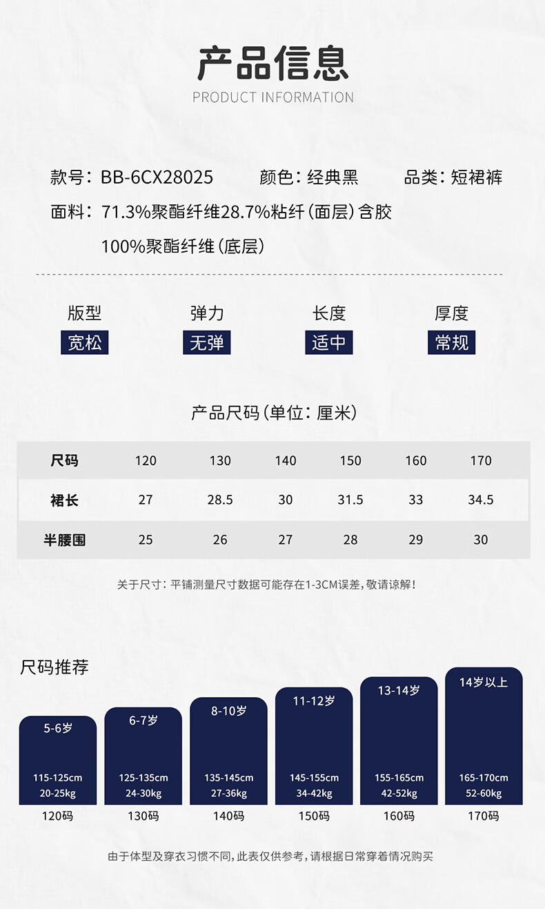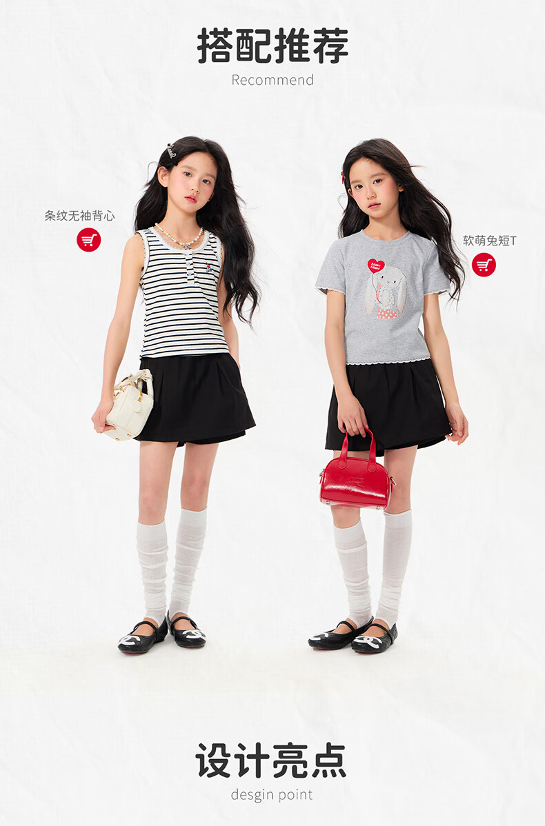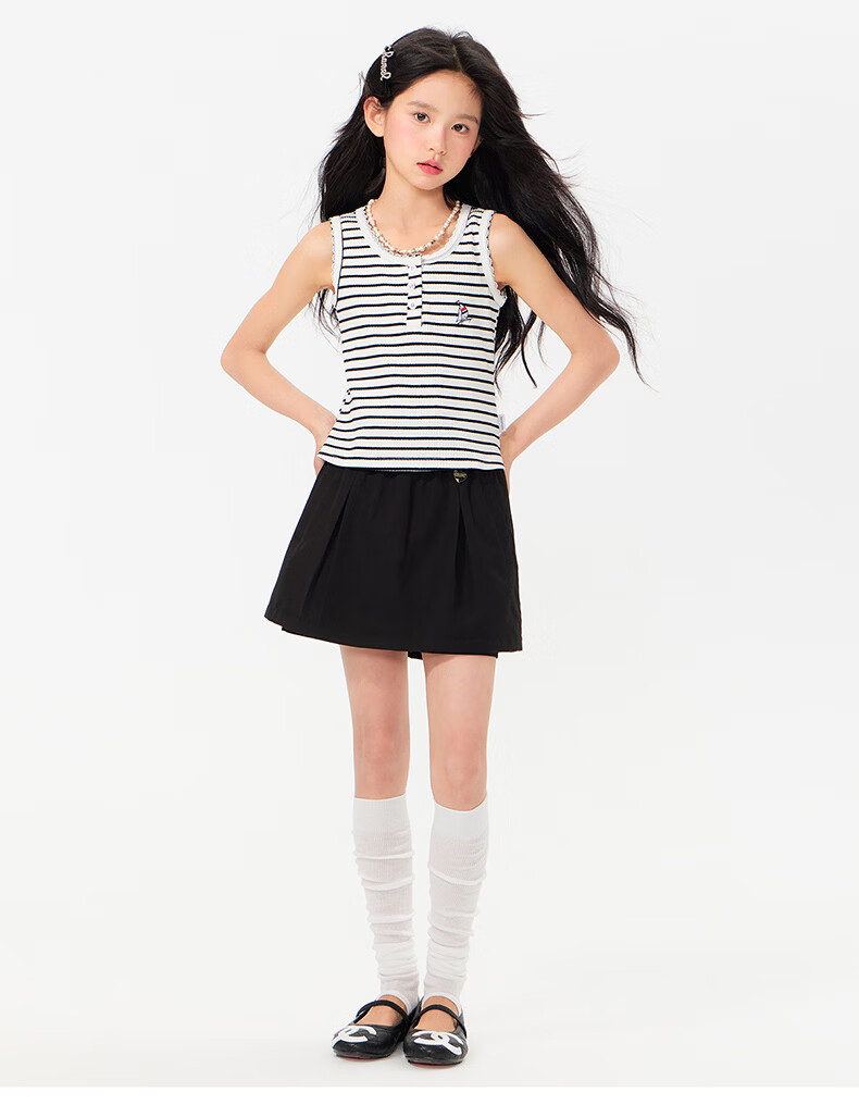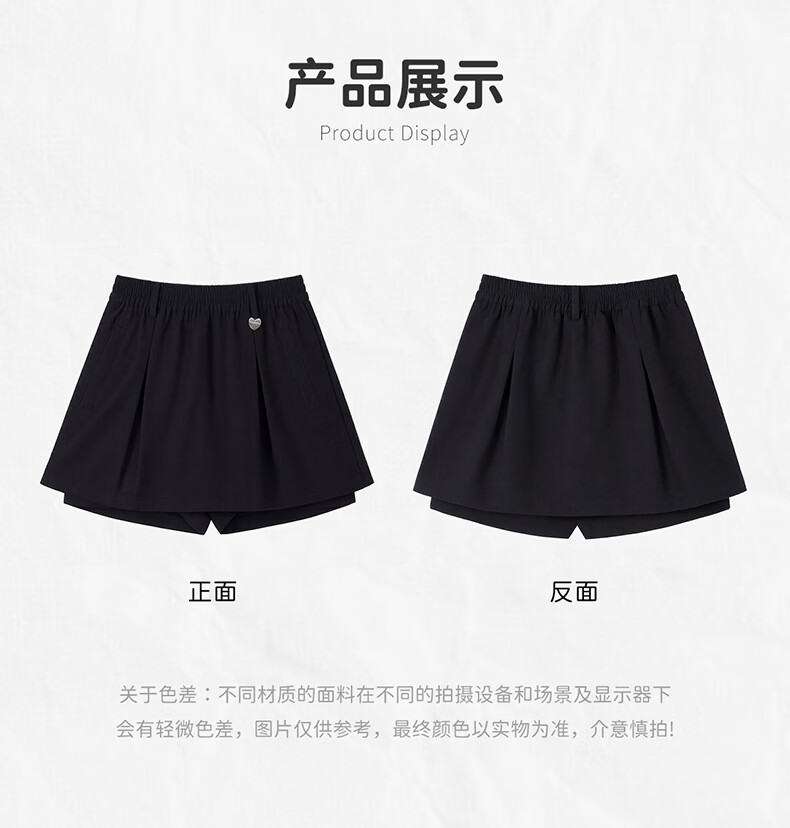 BARRY BANNY Girls' A-Line Pants Skirt 2026 Spring and Summer New Children's Casual Pleated High Waist Skirt 8025 Classic Black 150