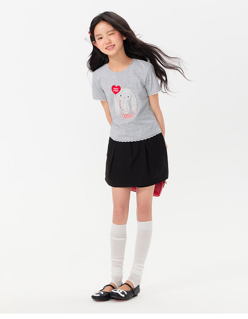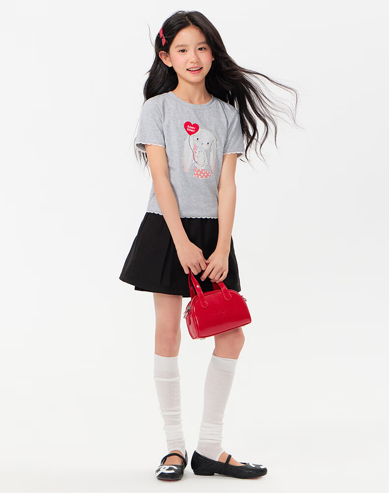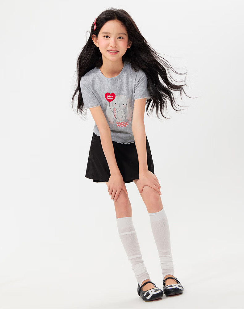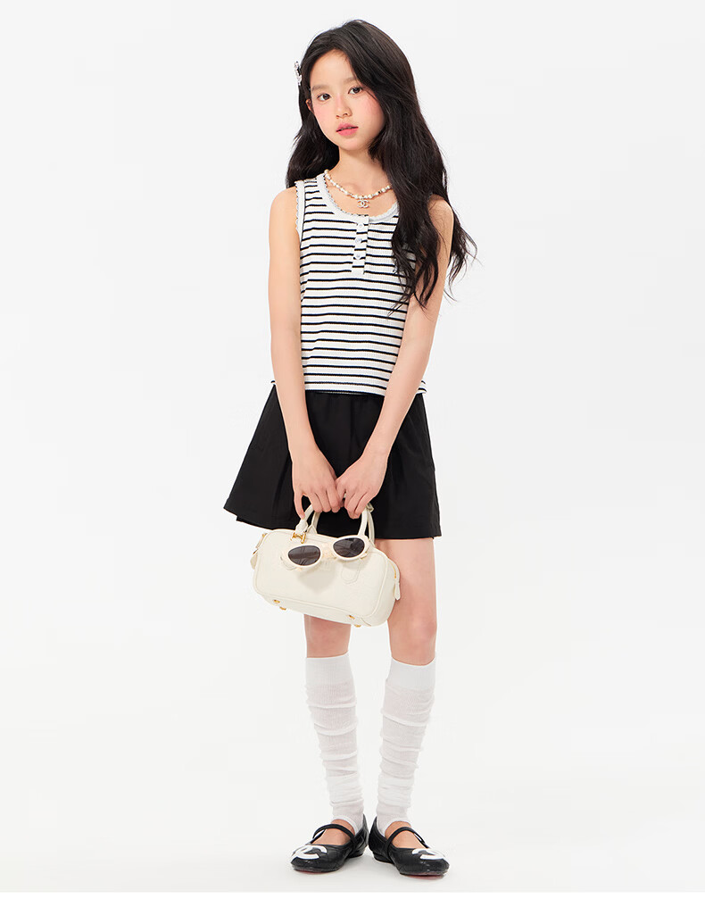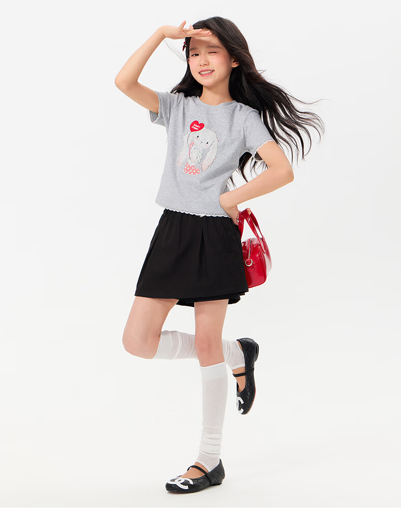 BARRY BANNY Girls' A-Line Pants Skirt 2026 Spring and Summer New Children's Casual Pleated High Waist Skirt 8025 Classic Black 150