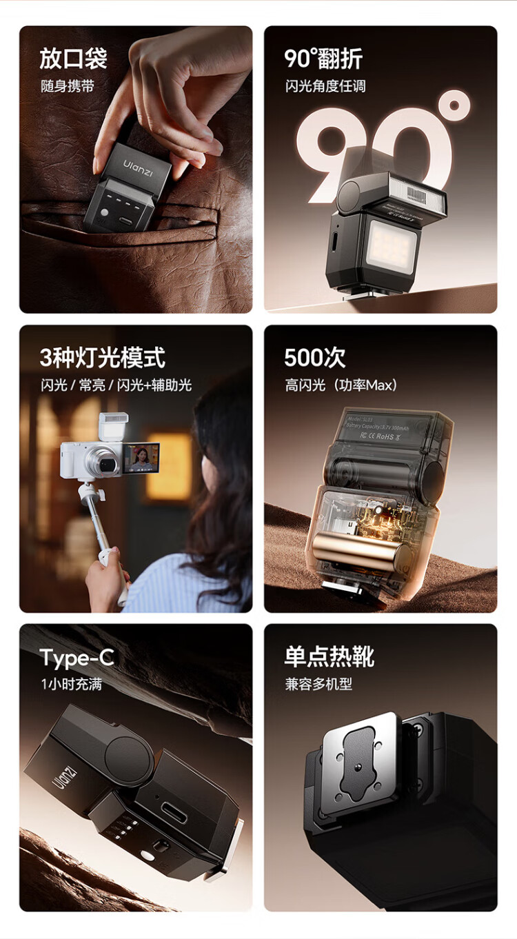 Ulanzi Youbasket SL03 (black) Firefly camera top flash pitch mini universal Sony outdoor shooting light pocket photo fill light built-in lithium battery Canon hot shoe light
