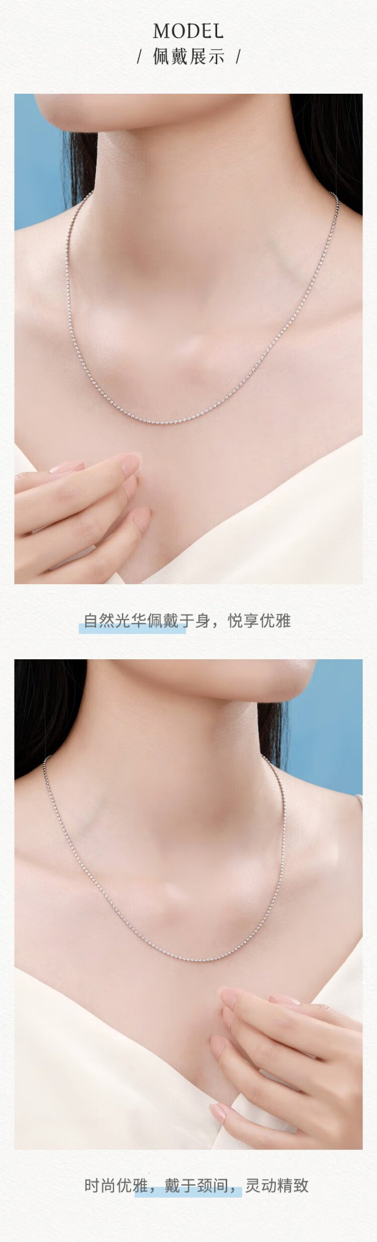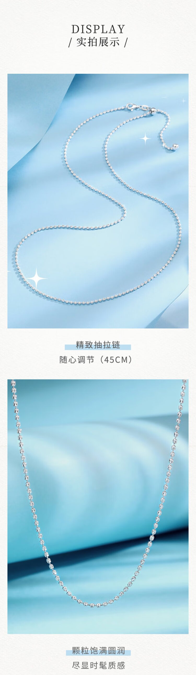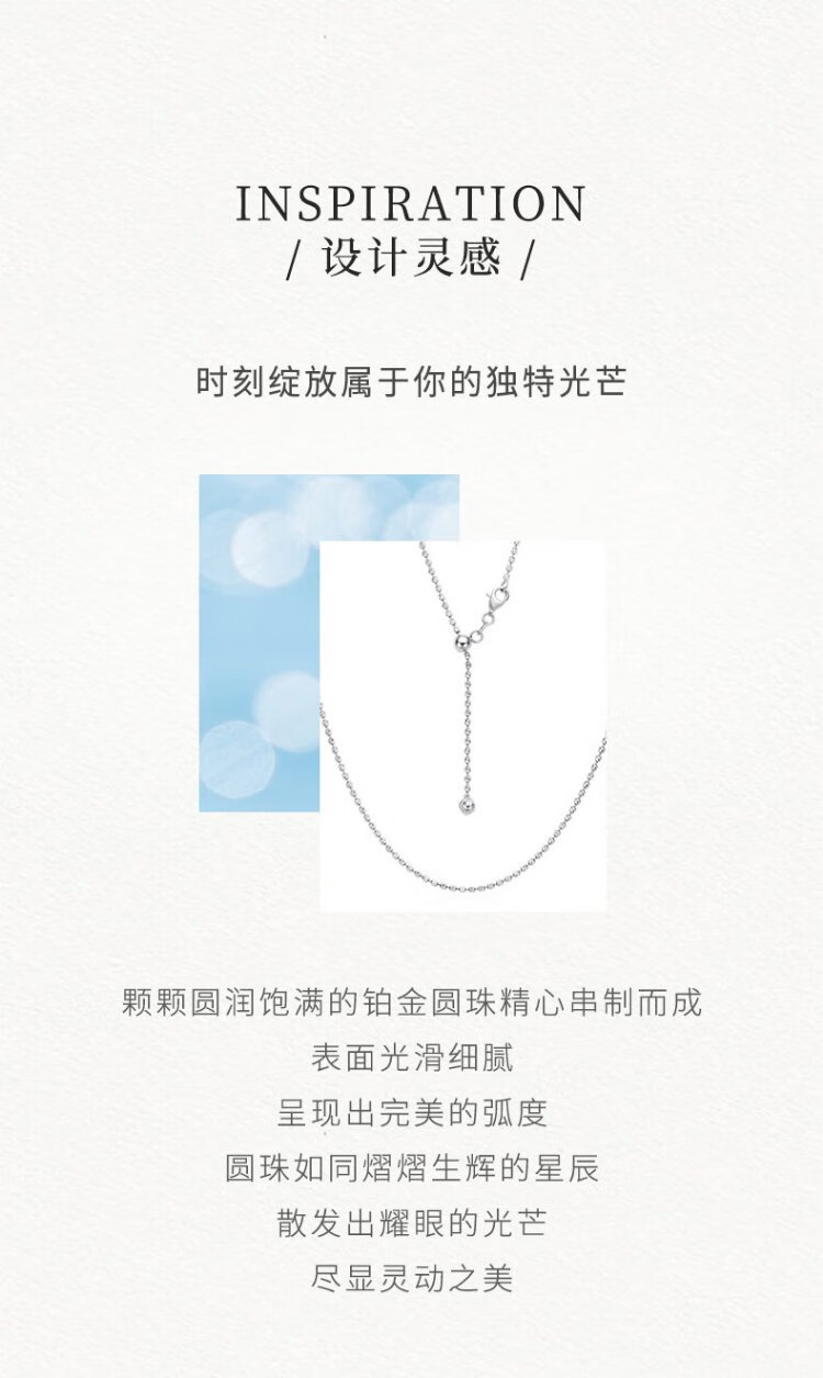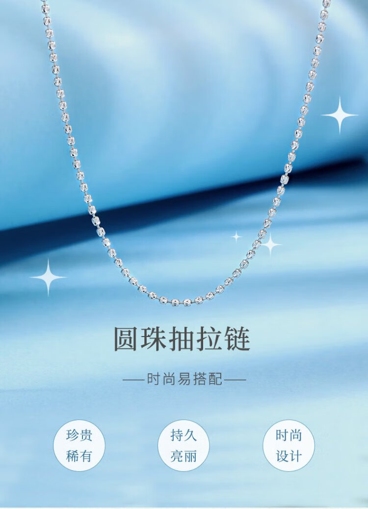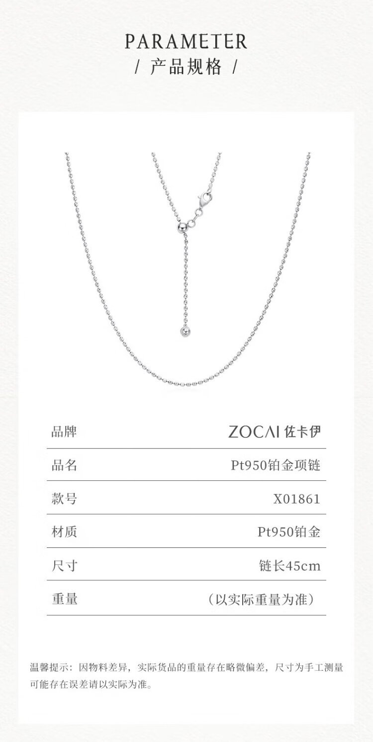 Zokai platinum necklace PT950 round bead zipper simple chain versatile birthday gift X01861 about 8.12g
