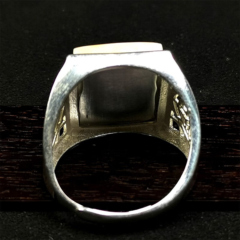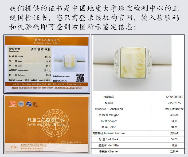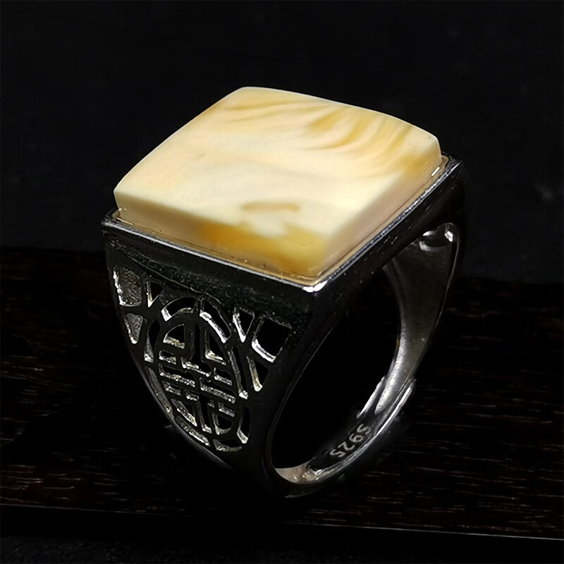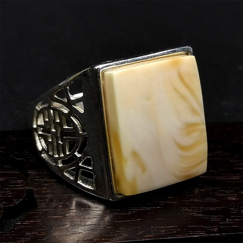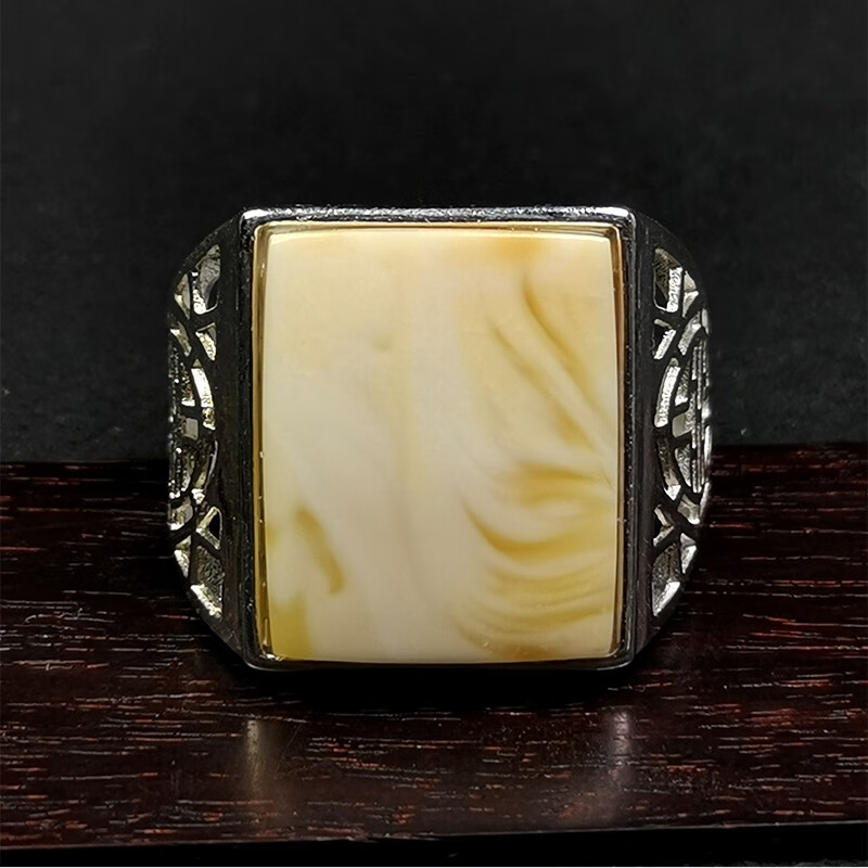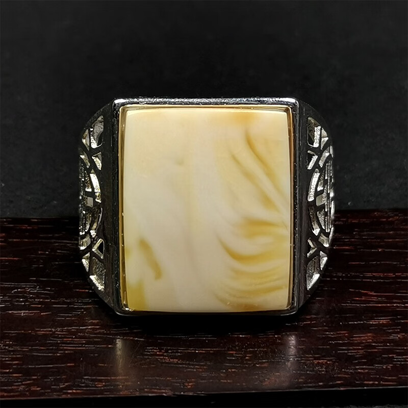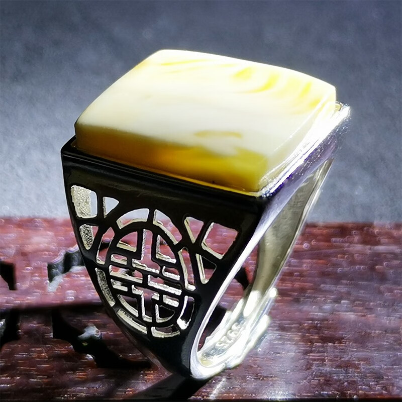Amber School, one object, one picture, one certificate, white beeswax ring for men and women, natural amber, Russian pewter, silver inlaid ring, ring, 4.04g, 16*13mm