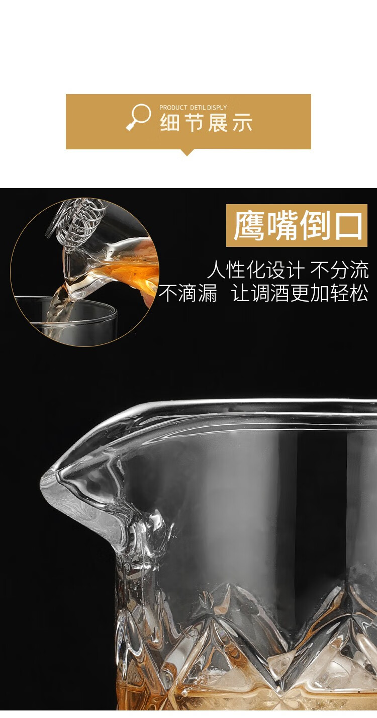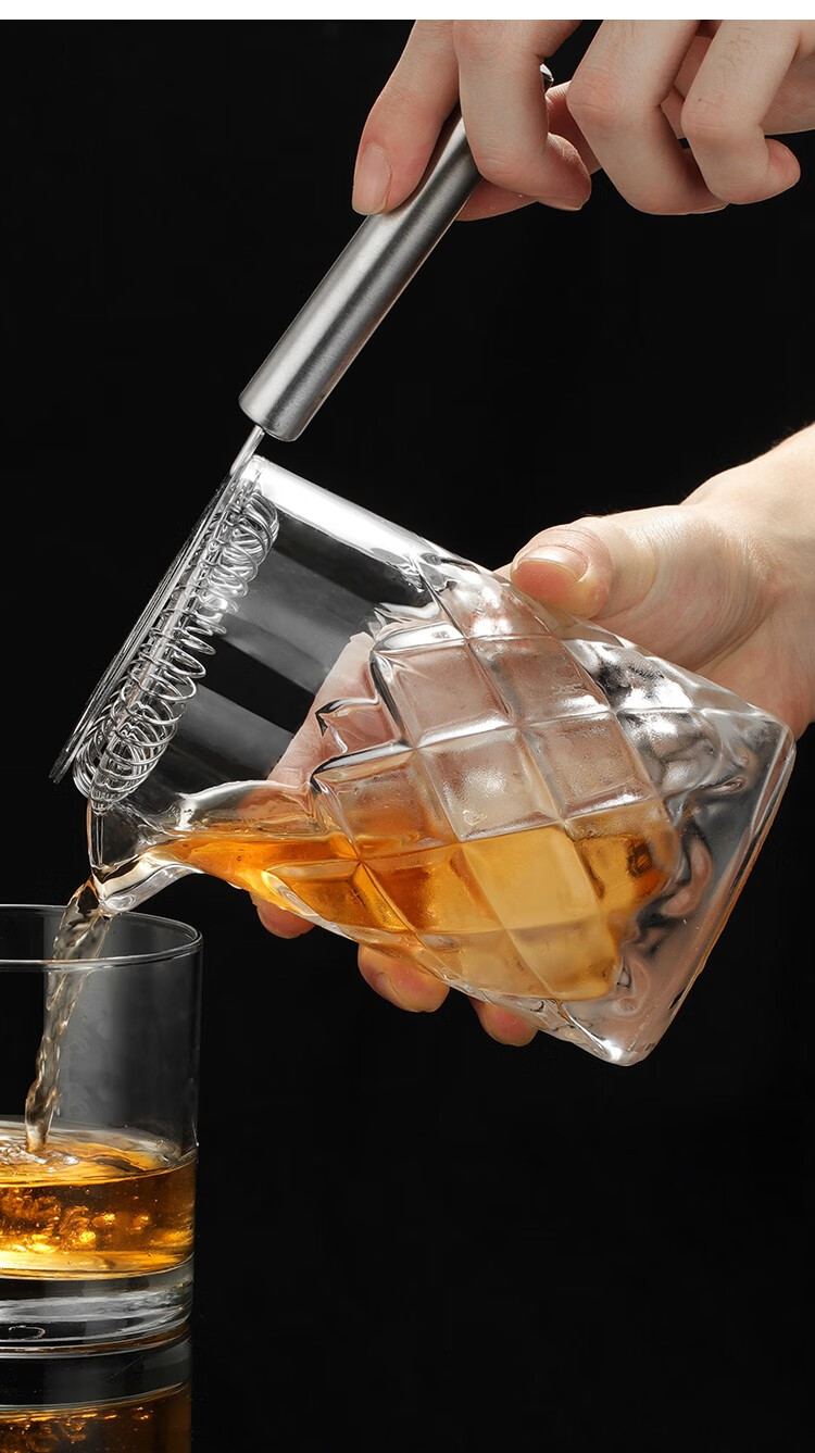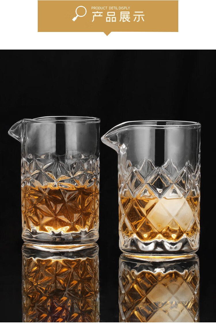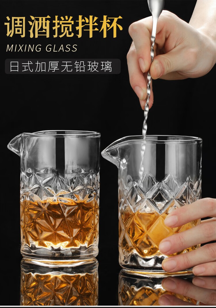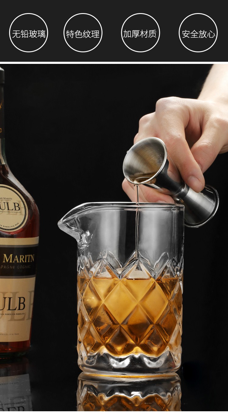 FEiNASi Japanese-style thickened glass mixing cup creative bar cocktail cup household mixing cup mixer ice pattern cup - with stirring spoon