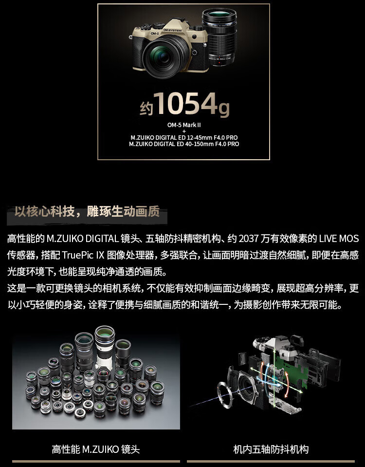 Aozhixin OM-5 Mark II mirrorless camera om5 second generation outdoor camera handheld high-pixel starry sky autofocus (12-45mm) vlog kit black