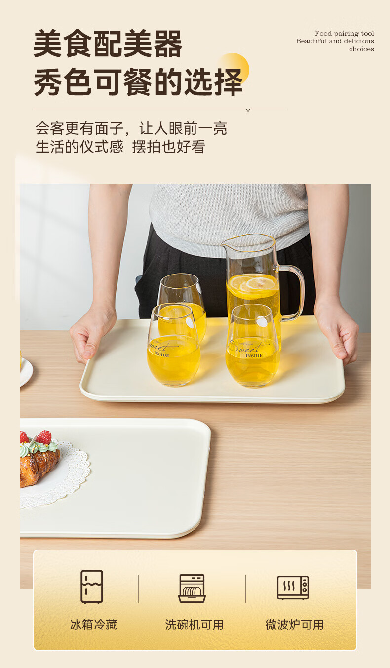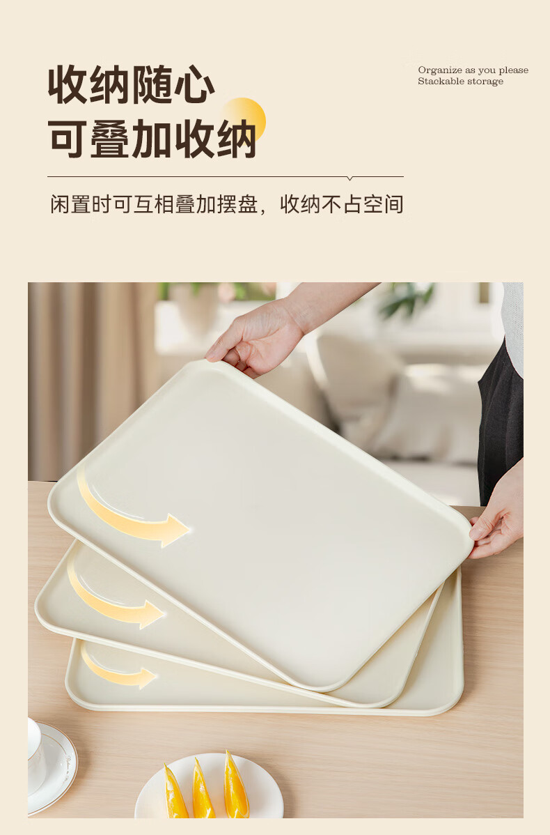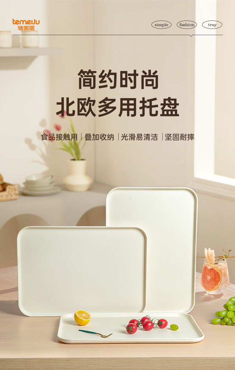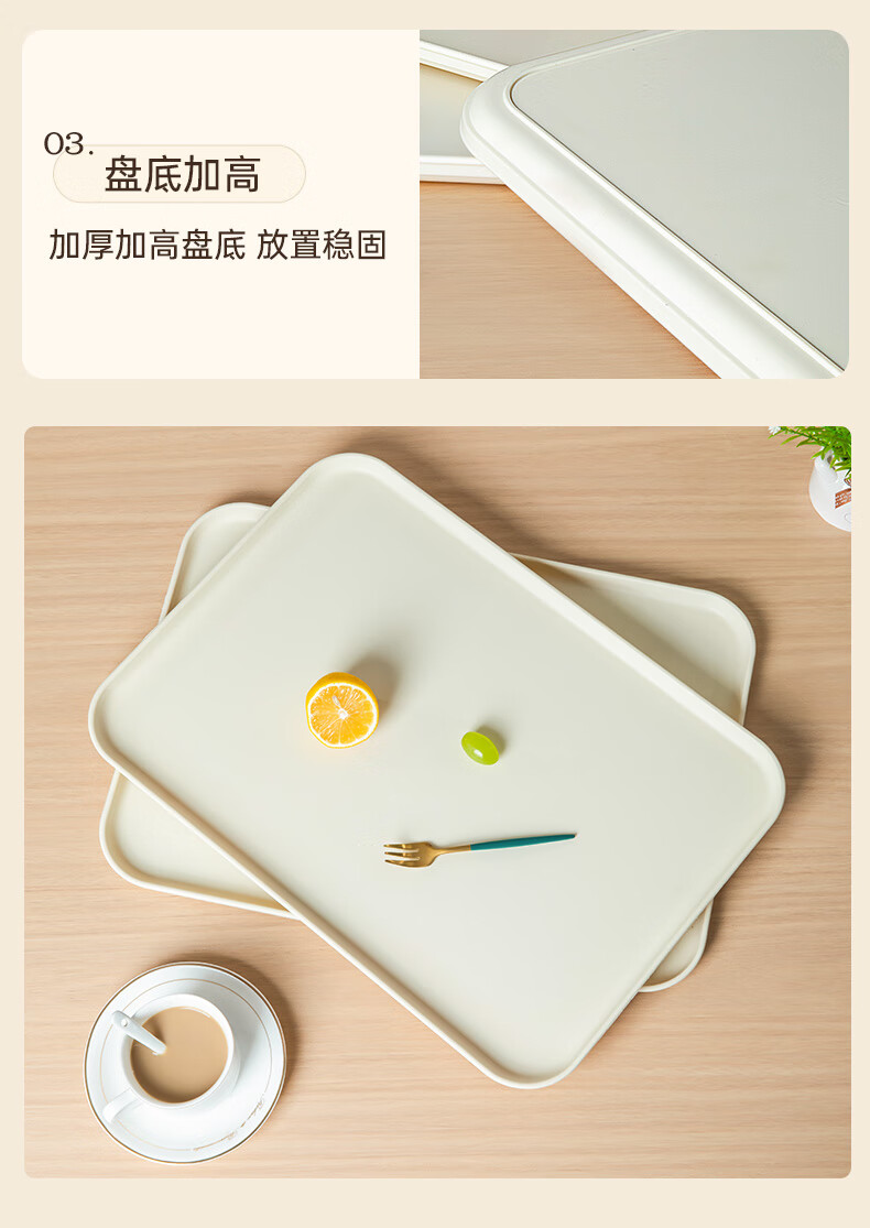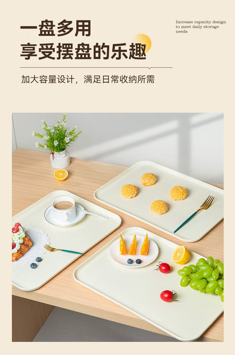 Temeiju rectangular tray fruit tray tea tray fruit tray cake storage tray side dish dinner plate thickened extra large off-white