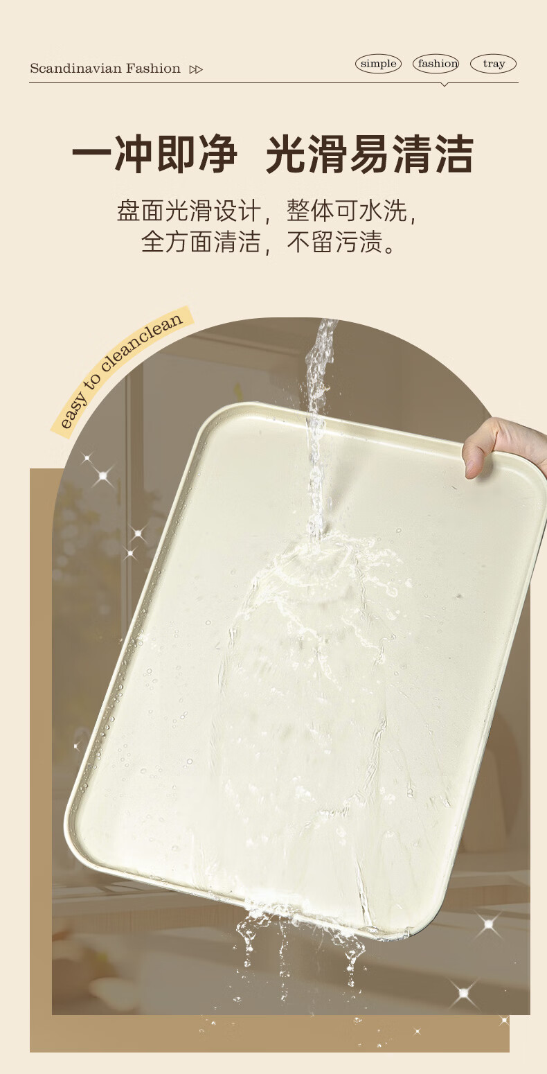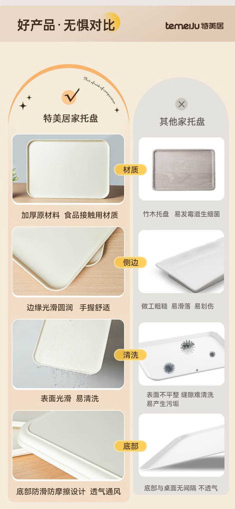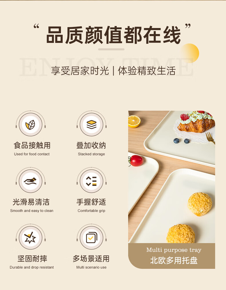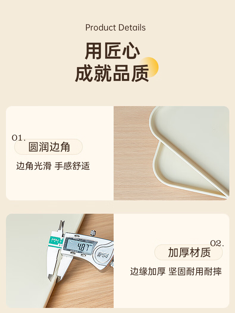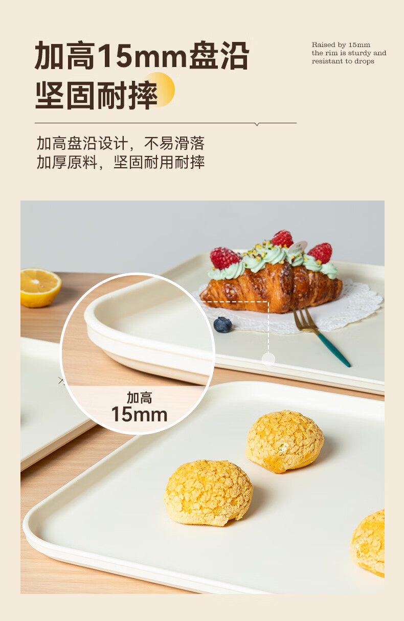 Temeiju rectangular tray fruit tray tea tray fruit tray cake storage tray side dish dinner plate thickened extra large off-white