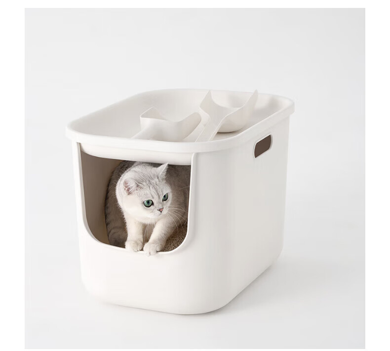 MUJI polypropylene cat litter box with lid pet supplies cat toilet balcony semi-enclosed white