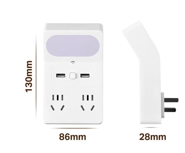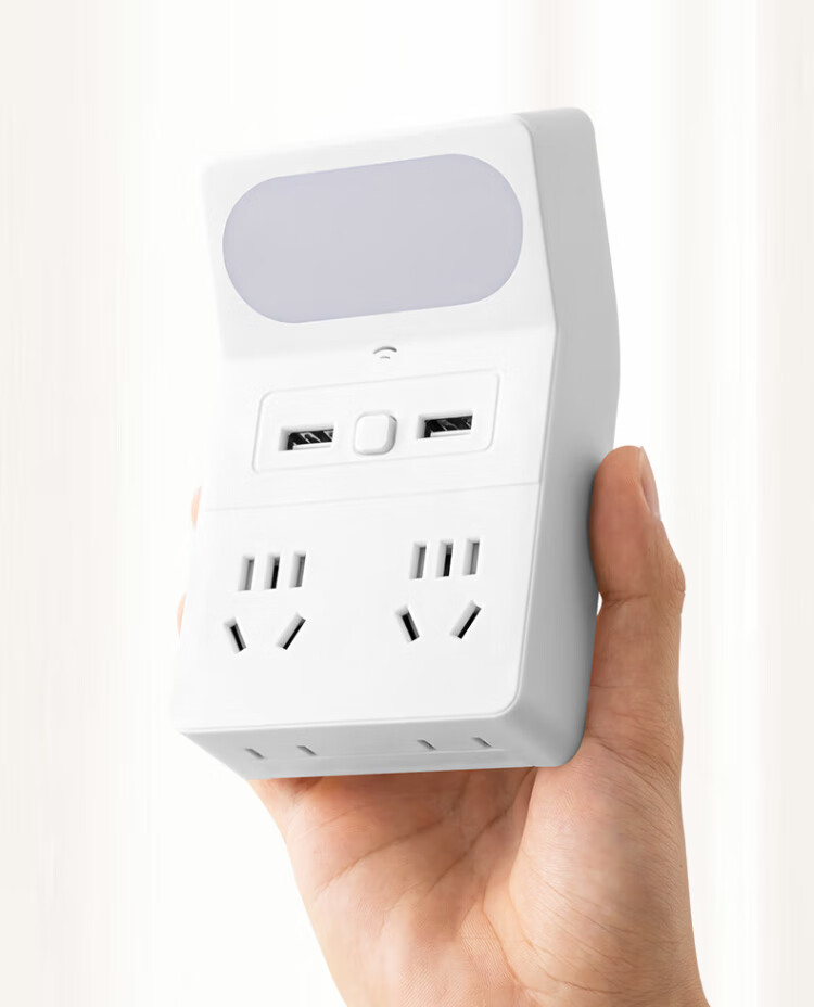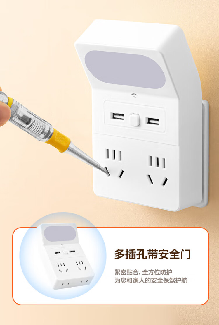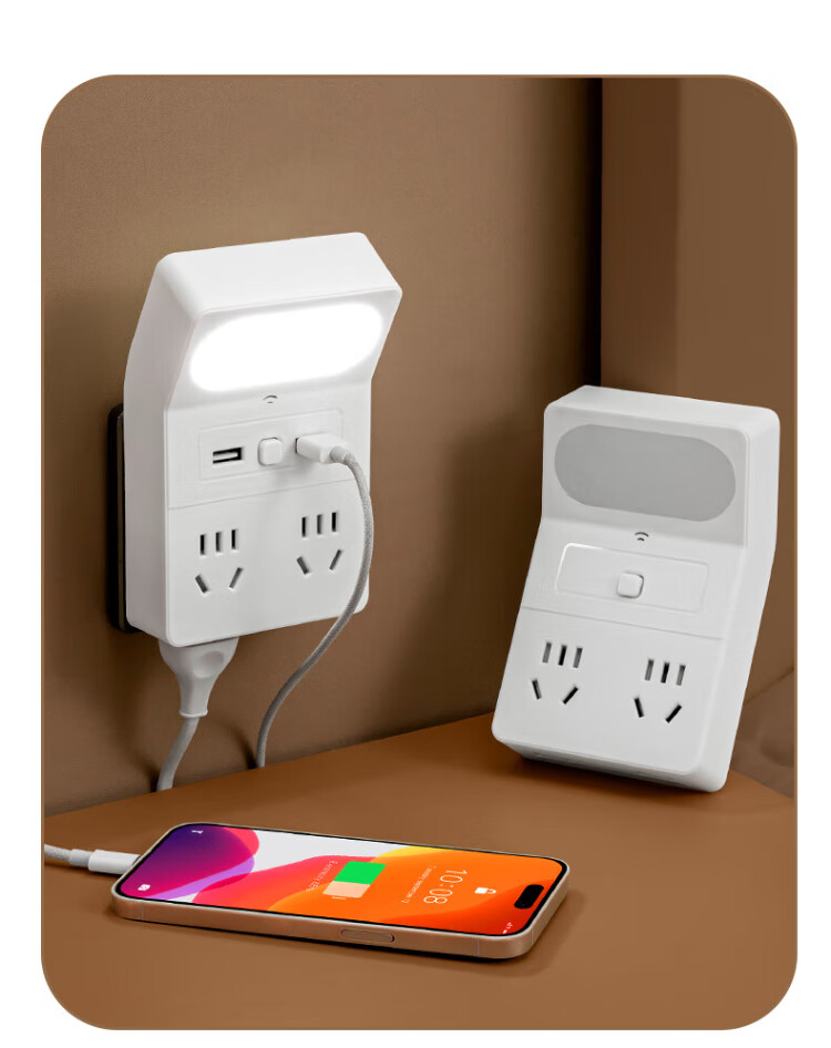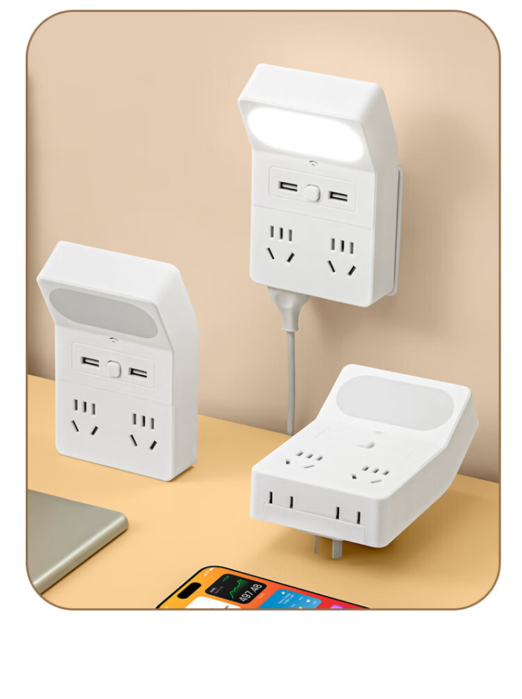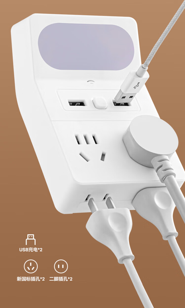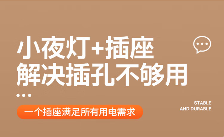 苏士赫尔摩【AI语音】45° 柔光防晃眼夜灯插座+USB 一转四扩展,三色可调+定时关灯,卧室床头电源转换