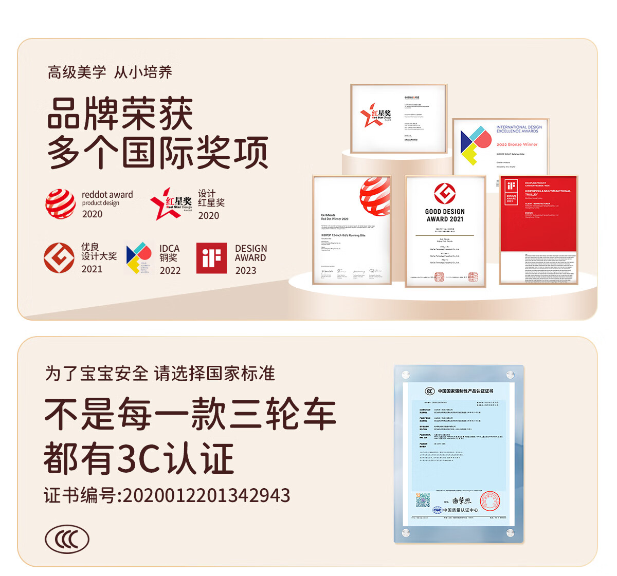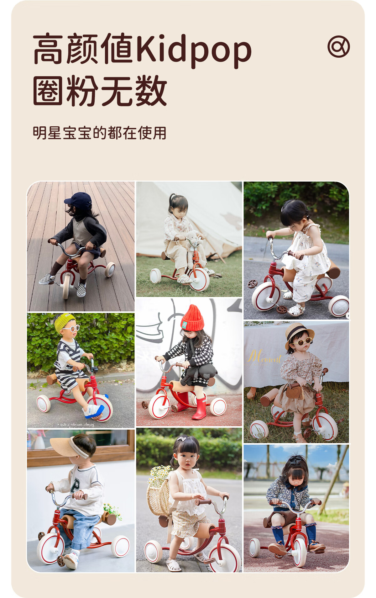 Kidpop children's tricycle bicycle 2-6 years old baby balance car light bicycle toy first-year gift vitality red