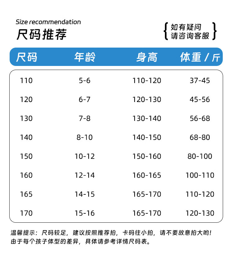 China (cm) 165 / 88-90 170 / 96-98 175 / 108-110 180 / 118-122 185 / 126-130