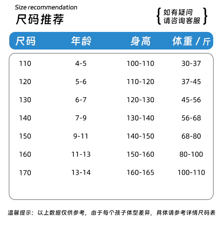 China (cm) 160-165/84-86 165-170 / 88-90 167-172 / 92-96 168-173 / 98-102 170-176 / 106-110