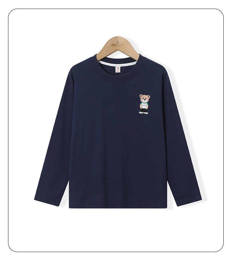 Montagut girls 2026 new ins Korean bear embroidered long-sleeved T-shirt spring and autumn versatile loose cotton bottoming shirt top